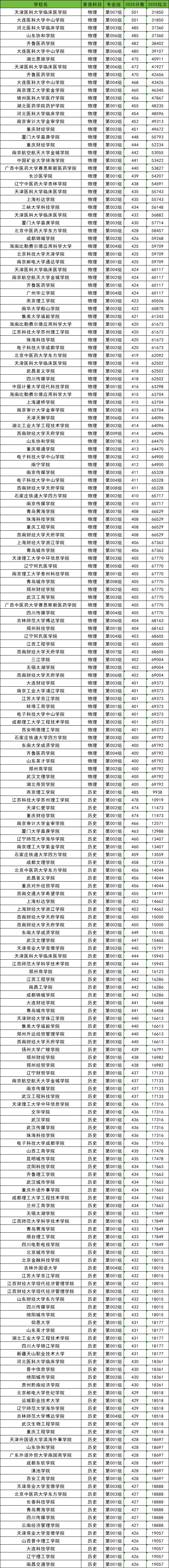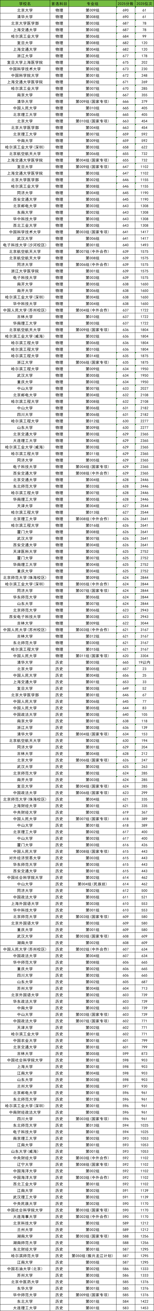 下面是2025全国公办本科大学最低录取分数线部分示例(各科类分数线排名TOP100,需滑动查阅):