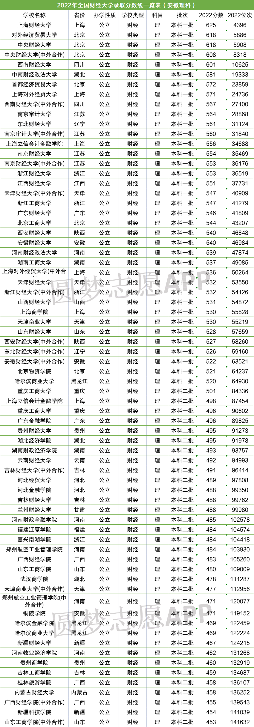 在安徽理科中,分数最高、最难考的三所财经大学是上海财经大学625分、对外经济贸易大学618分、中央财经大学618分