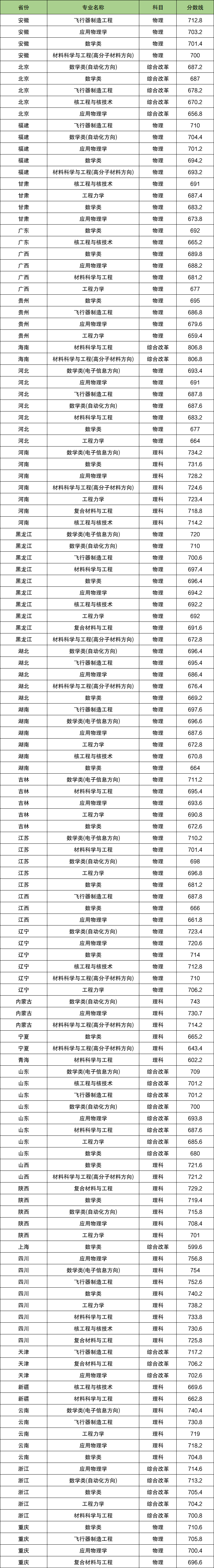 2、哈尔滨工业大学强基计划在江苏省的最高分为710.2分,最低为681.2分,共计有5个专业。