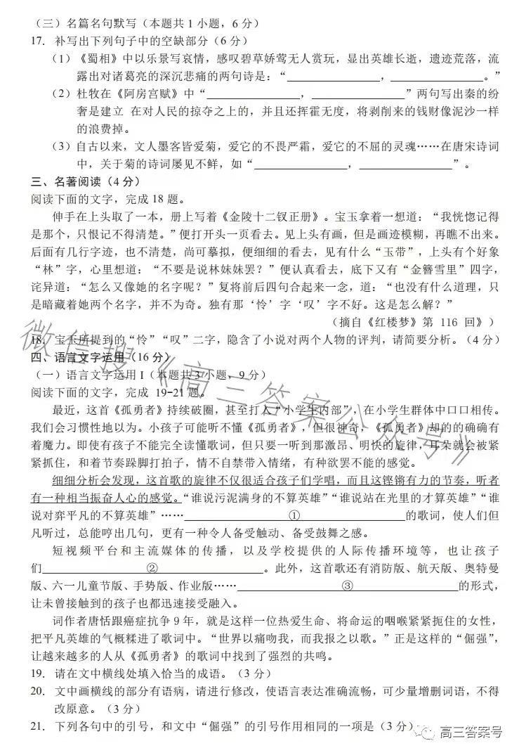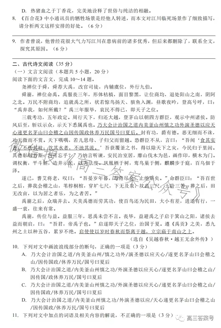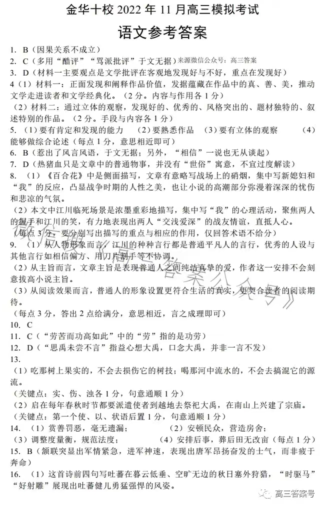 本文将公布2023浙江金华十校联考语文科目试卷及答案,以便于同学们估分,查漏补缺,请大家持续关注高考100网站。
