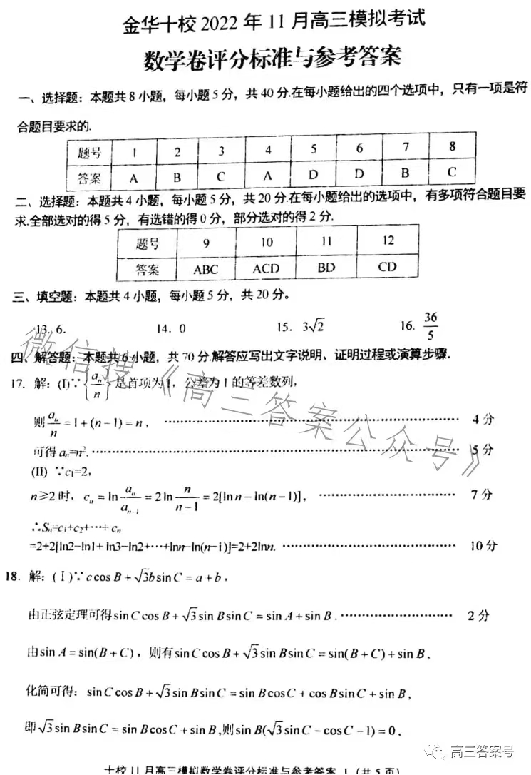 本文将公布2023浙江金华十校联考数学科目试卷及答案,以便于同学们估分,查漏补缺,请大家持续关注高考100网站。