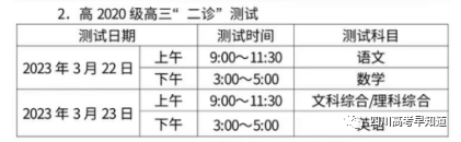 九市二诊考试时间(广元、遂宁、眉山、广安、雅安、内江、乐山、自贡、资阳):2023年3月25日-31日期间进行,具体时间另行通知。