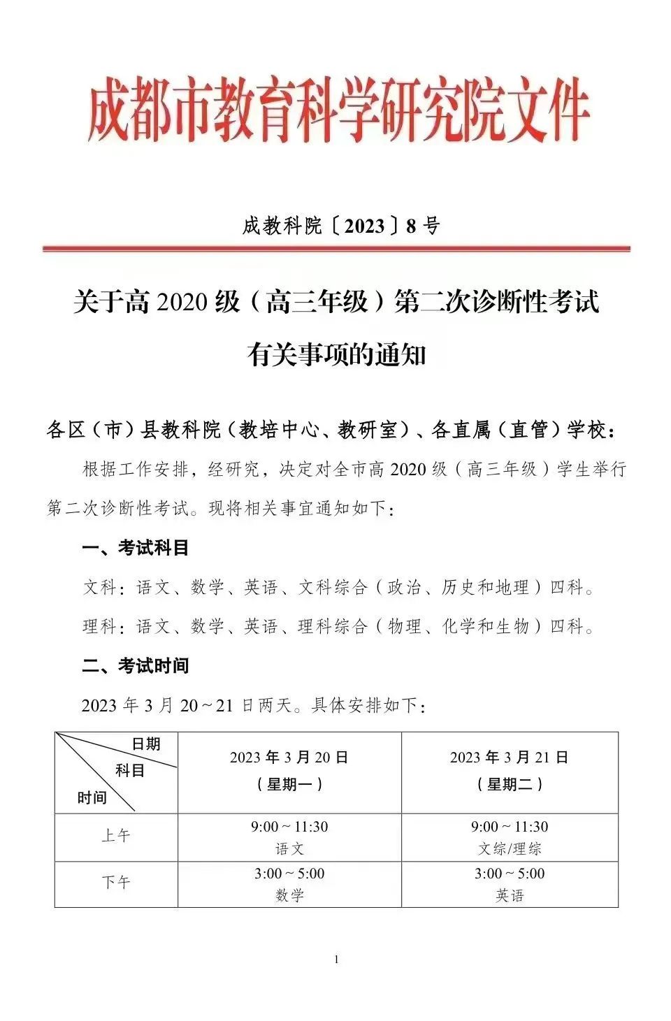 3月份开始,四川各市将陆续进行高三大型模拟考试,而各地的诊断性考试作为全市联考,大家一定要重视起来!下文将为大家附上2023四川各地高三二诊考试时间,包括成都二诊、绵阳二诊、宜宾二诊、泸州二诊、南充二诊考试时间。