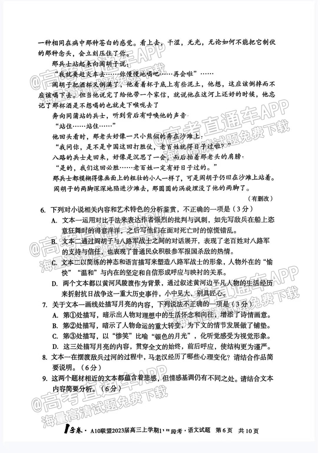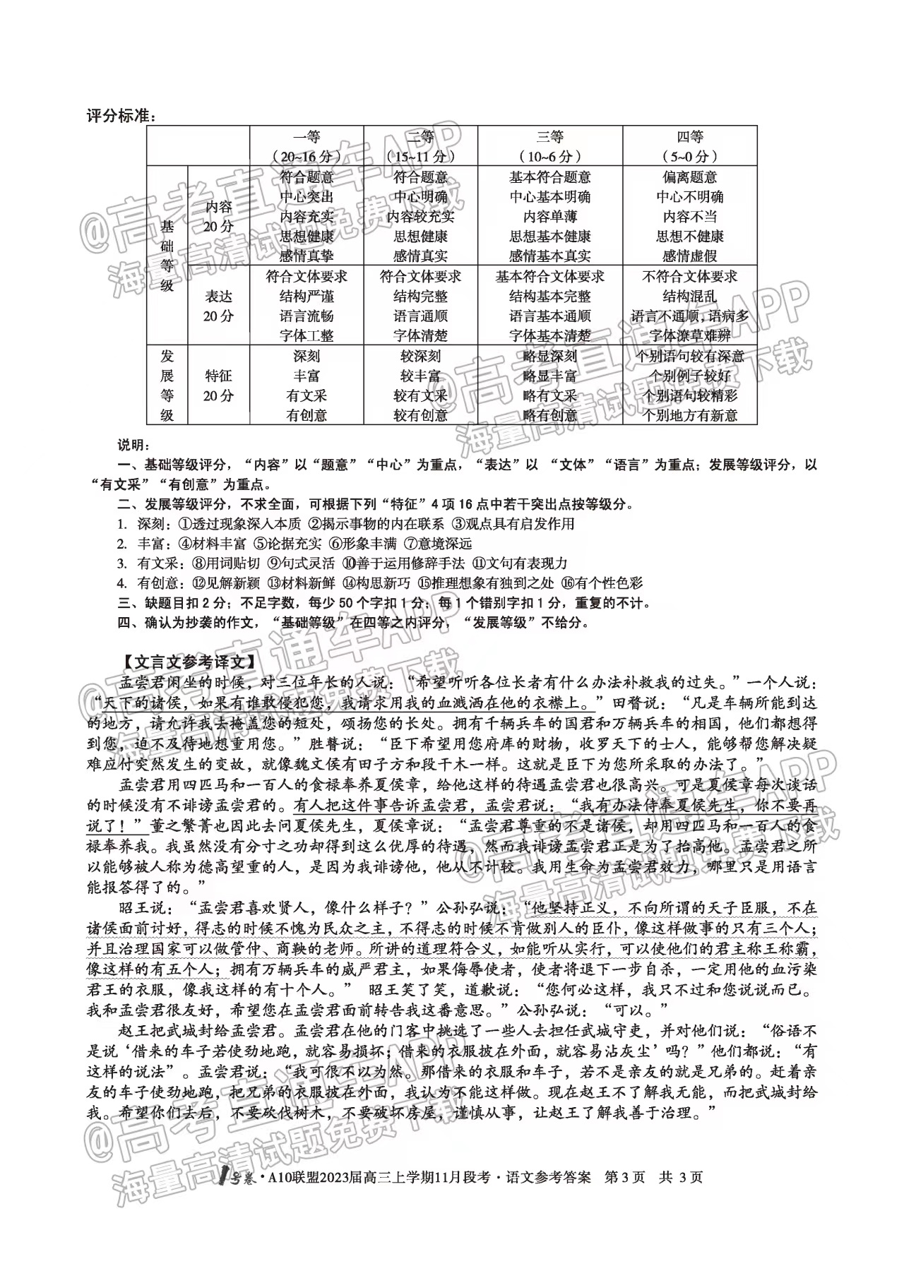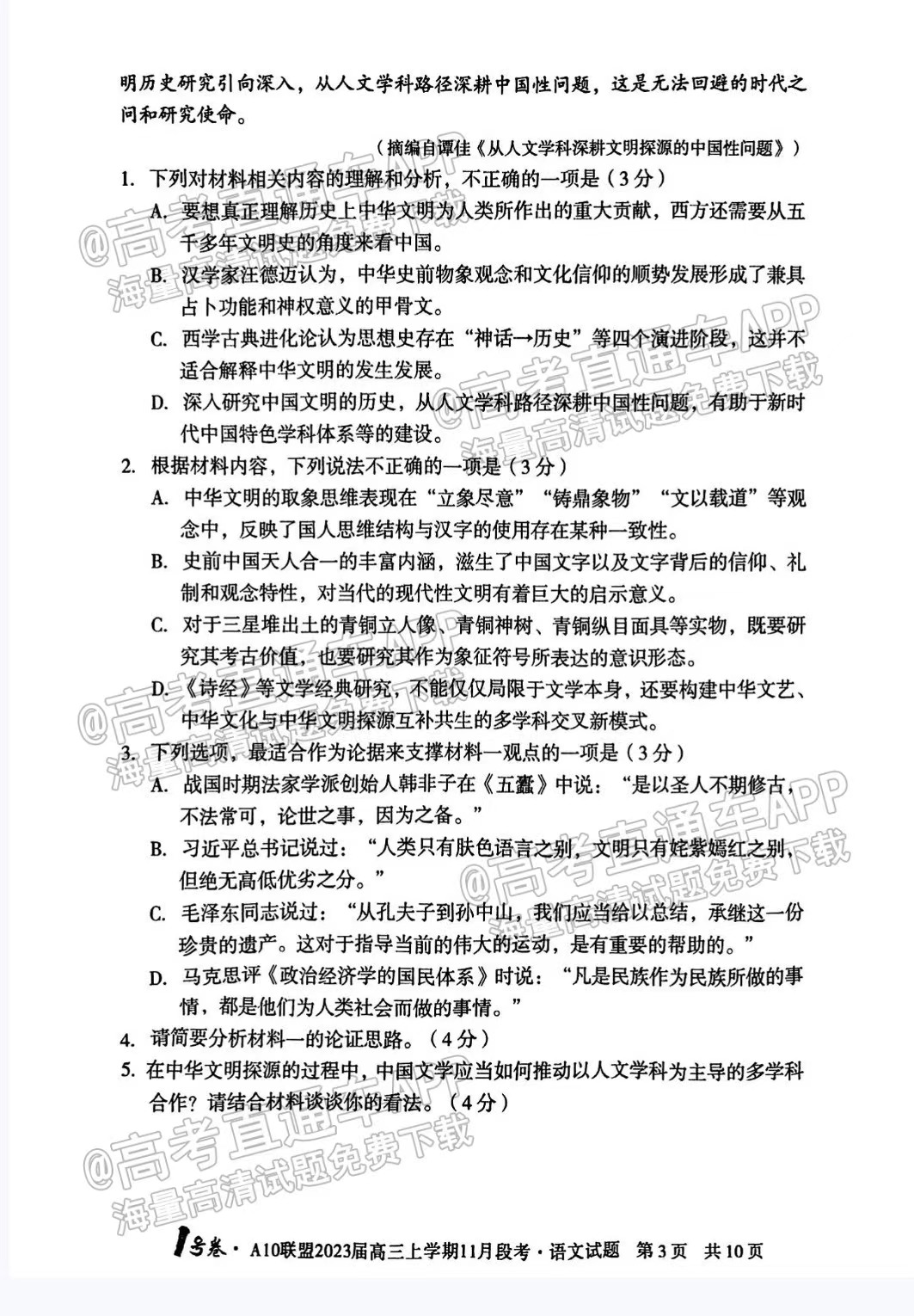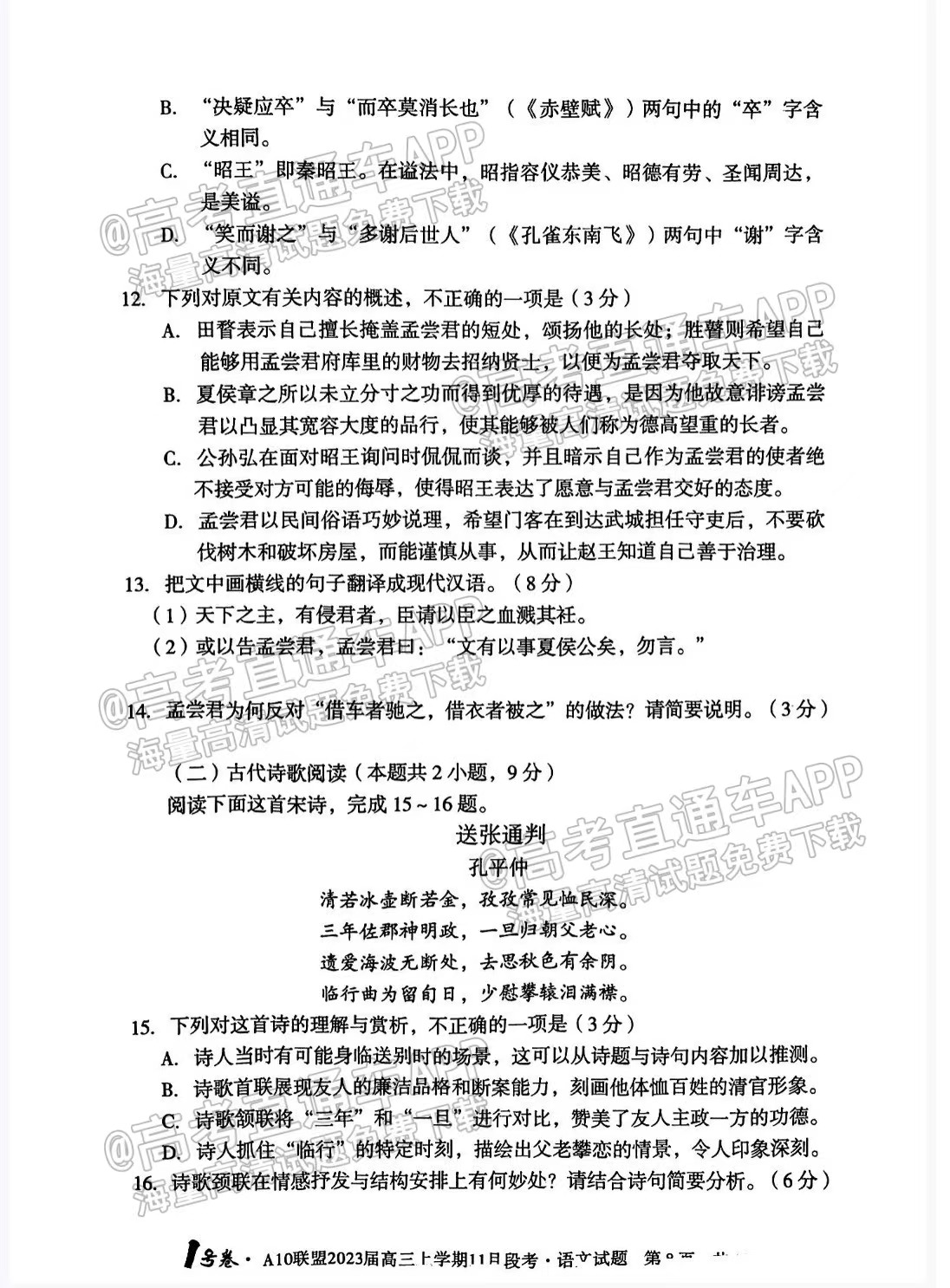 一、2023安徽A10联盟高三11月段考语文试卷