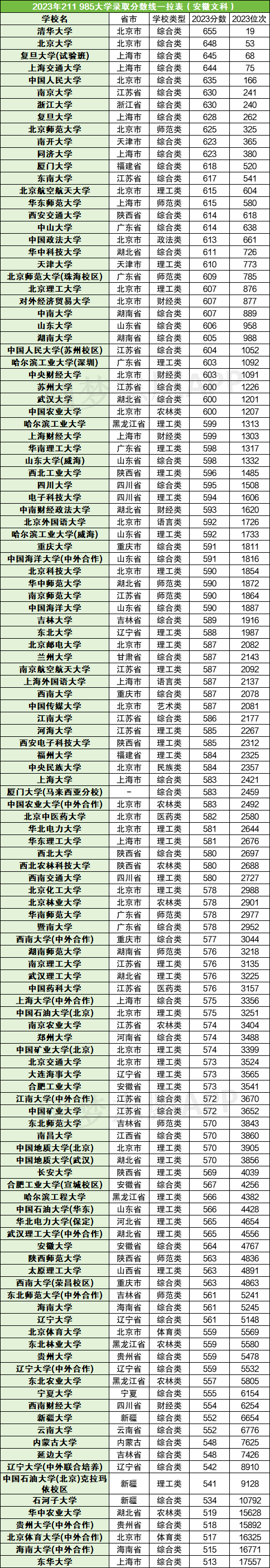 以安徽2023年的招生数据为例,在理科方面,985 211院校的录取线在496-690分之间,位次在59-88064之间;在文科方面,985 211院校的录取线在513-695分之间,位次在19-17557之间。