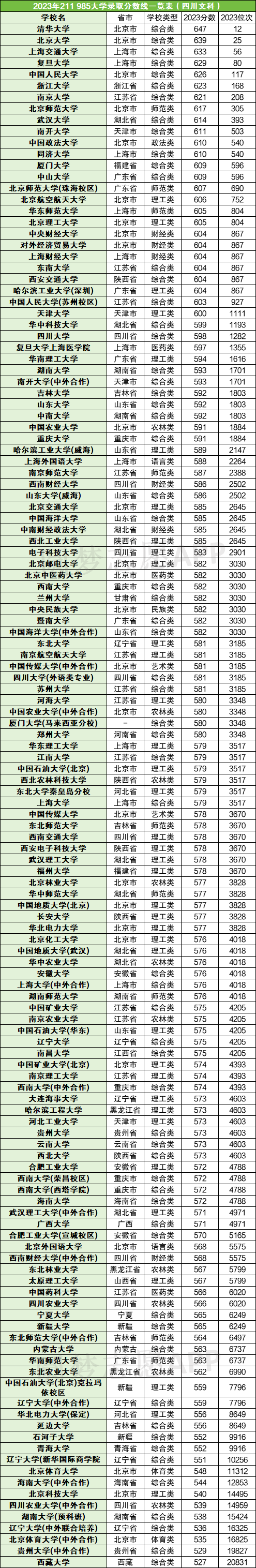 由于985 211在各省的录取分数线都是有所不同的,小编在此以安徽、四川为例,整理了2023年985 211大学在这两个省市的录取分数线,如下: