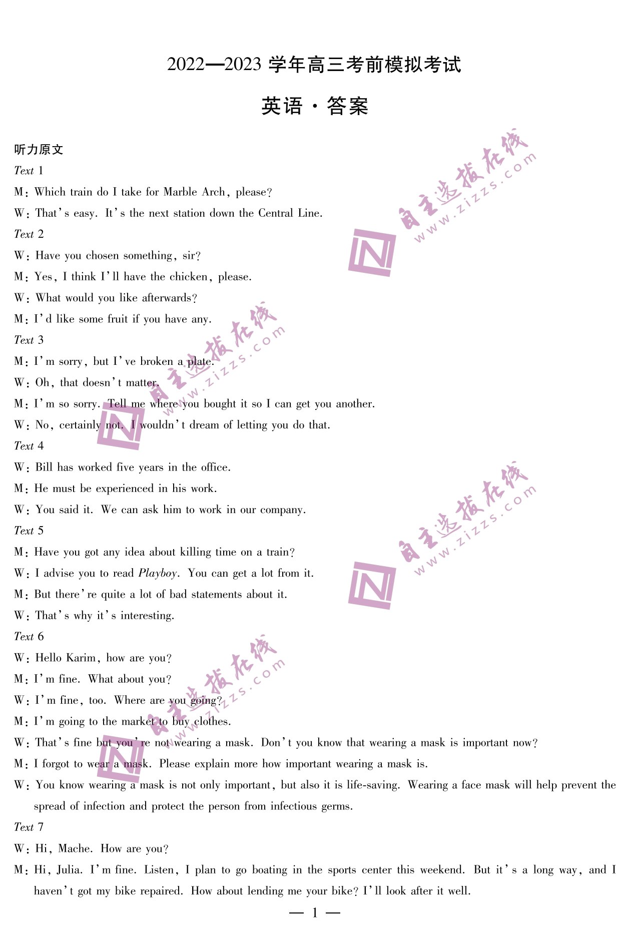 以下为2023天一大联考高三考前模拟考试各科试卷及答案汇总: