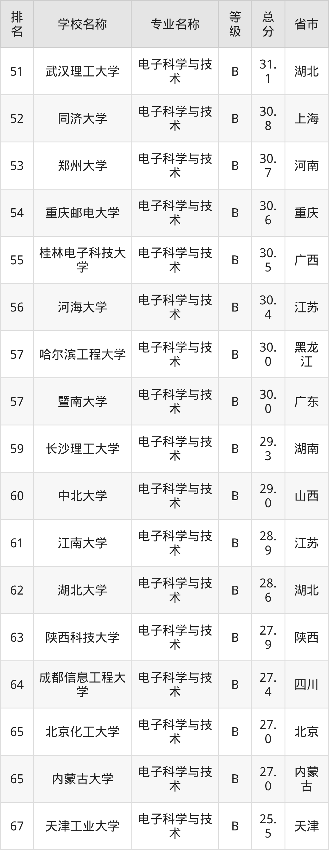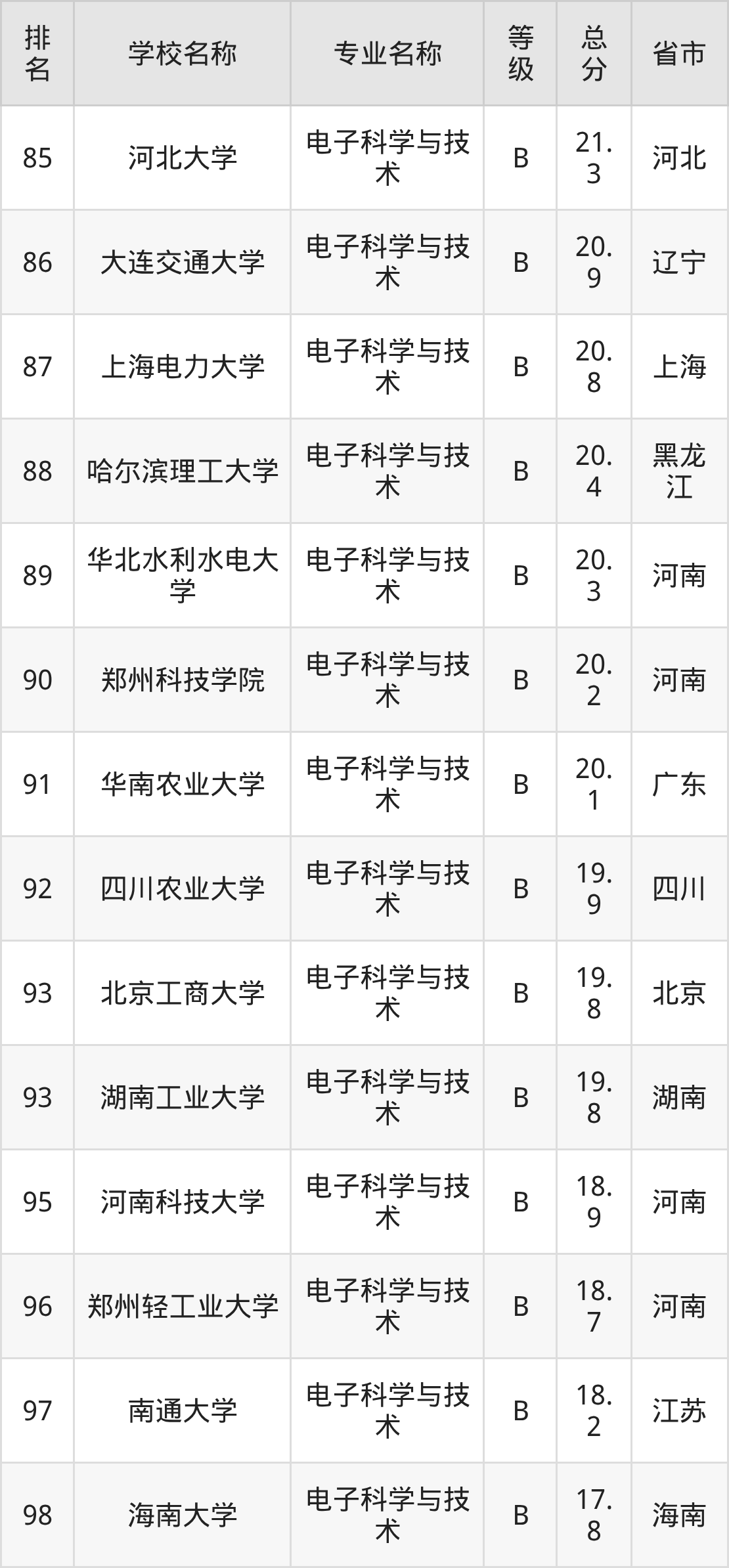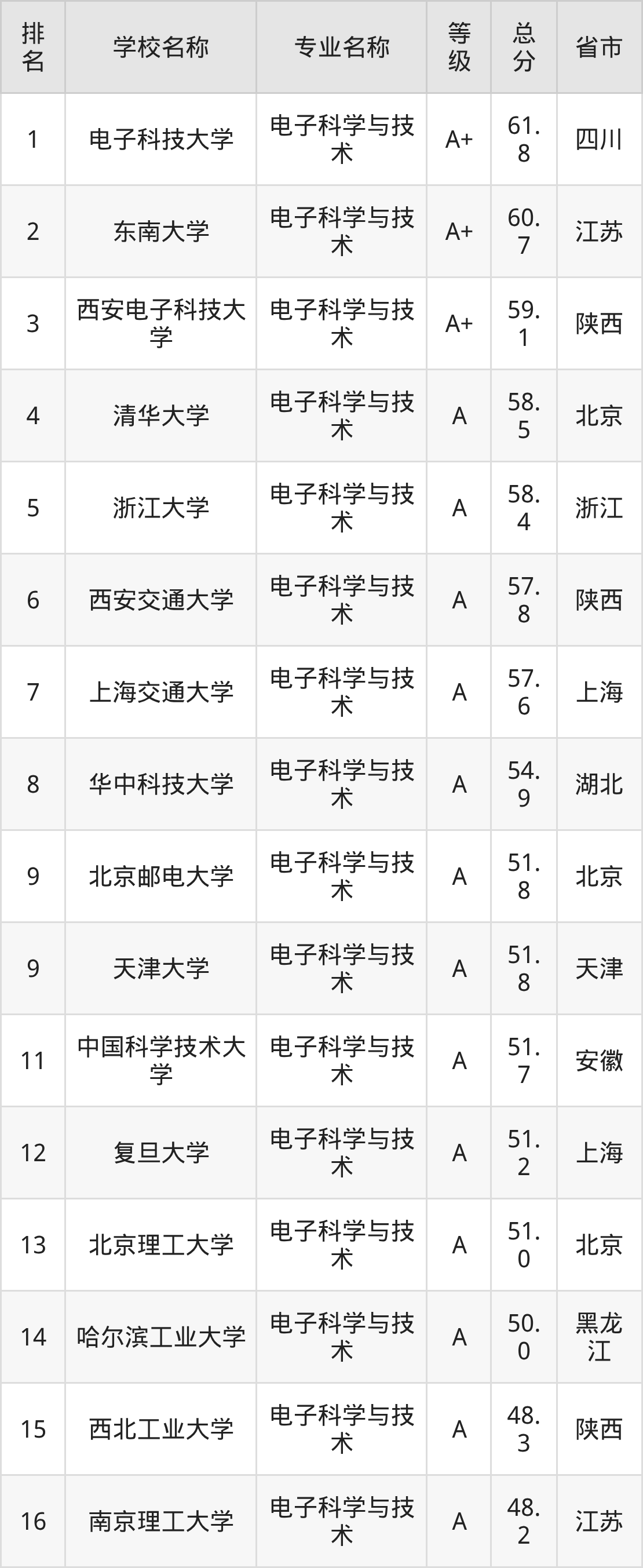 附电子科学与技术专业全国98所院校排名榜单一览表!