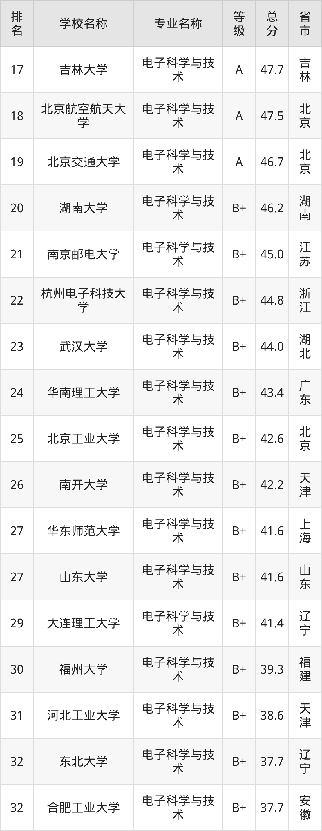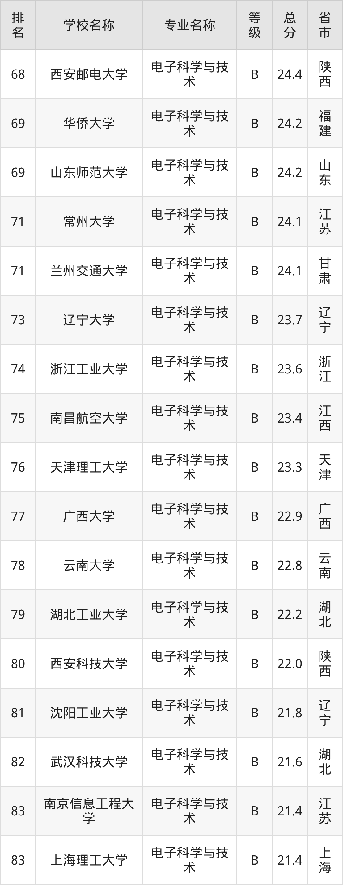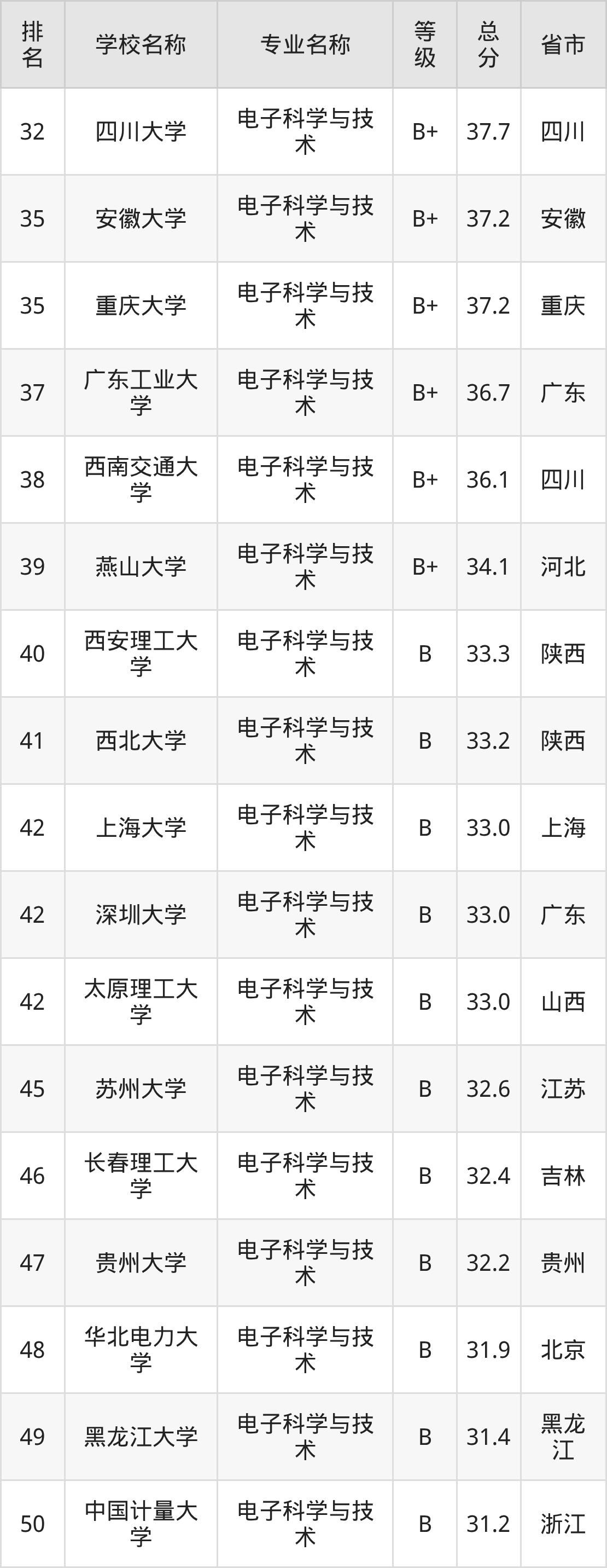 附电子科学与技术专业全国98所院校排名榜单一览表!