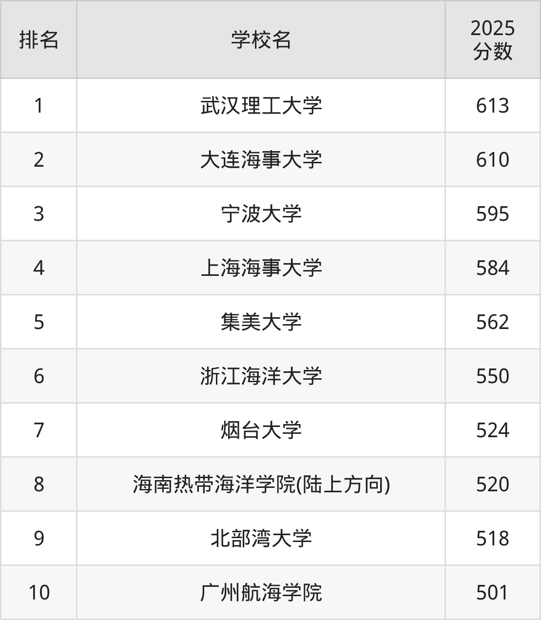 根据软科2025最新排名可知,轮机工程专业最好的十所名校名单如下: