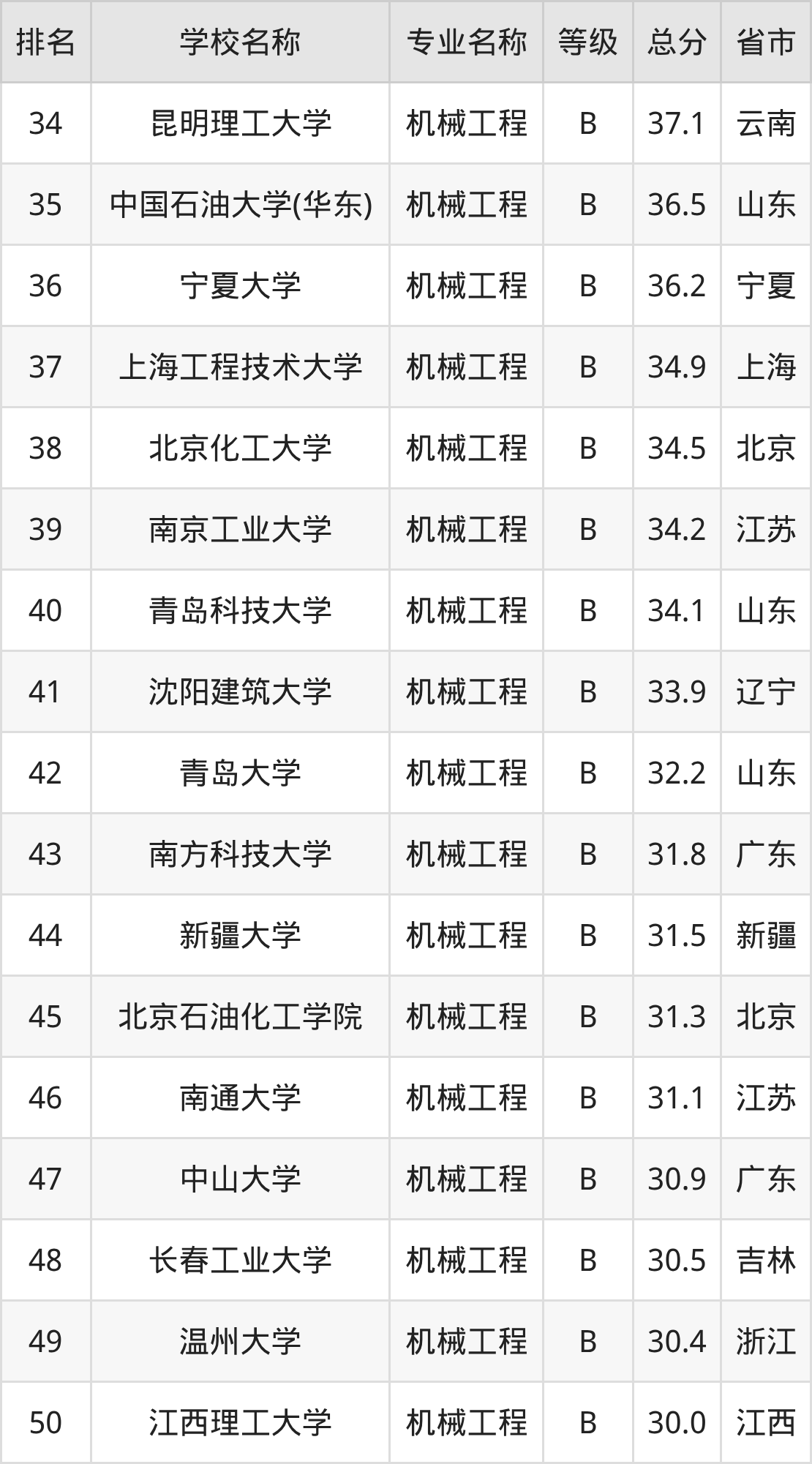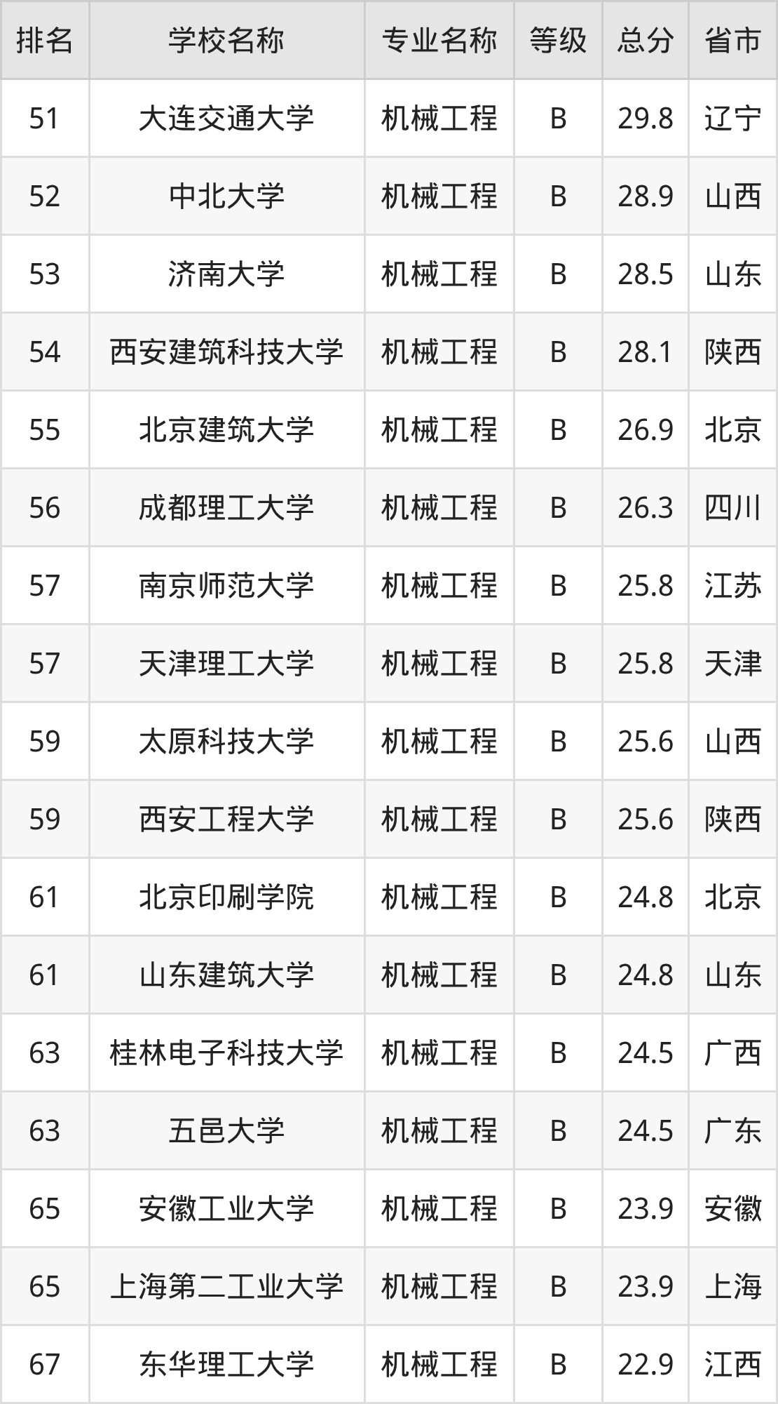 - 机械工程学科为A-级,以轻工机械、智能装备为特色。