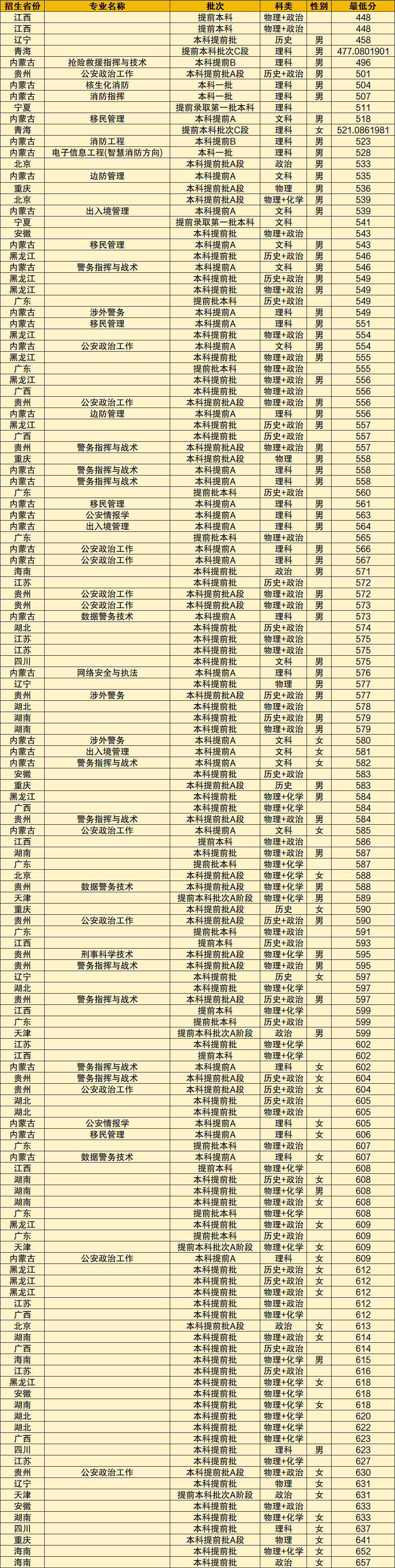 中国人民警察大学2024年录取分数线显示,公安类专业招生本科提前批最低分为448分。本文收集汇总了中国人民警察大学2024年在全国各省市区本科招生分数信息,以供2025届考生参考。