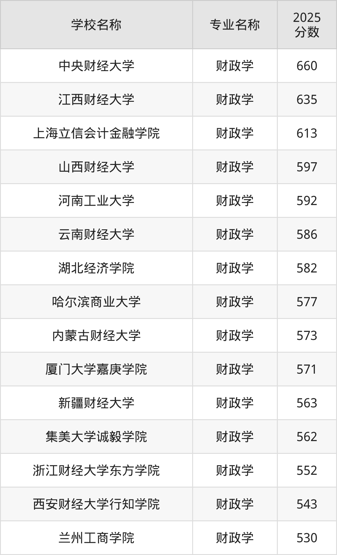 财政学专业最低530分能上本科大学,对应兰州工商学院。本期老师将为大家整理2025年全国本科大学财政学专业录取分数线,2026届高考生可参考。