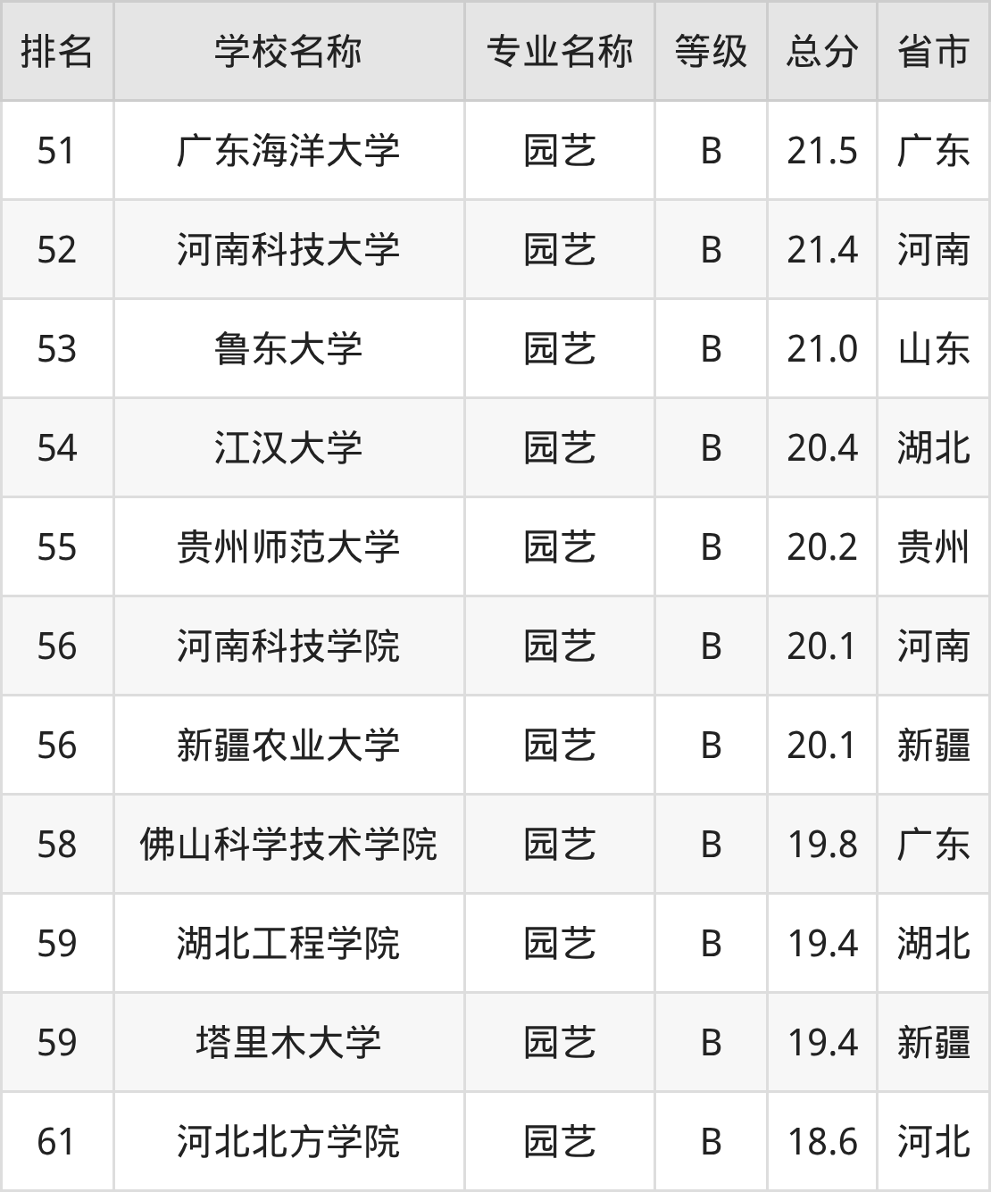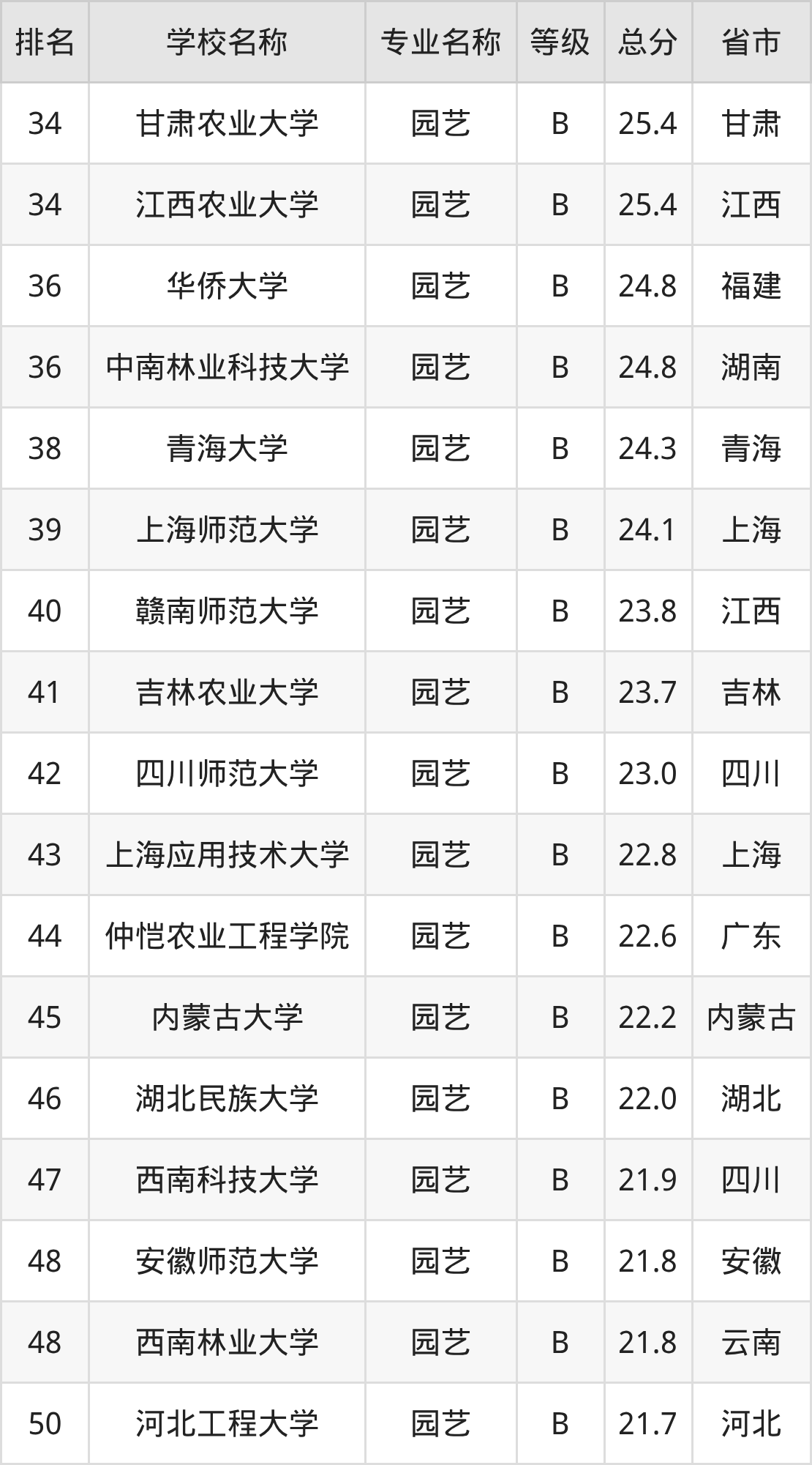 根据软科榜单可知,园艺专业全国排名前十的大学分别是:
