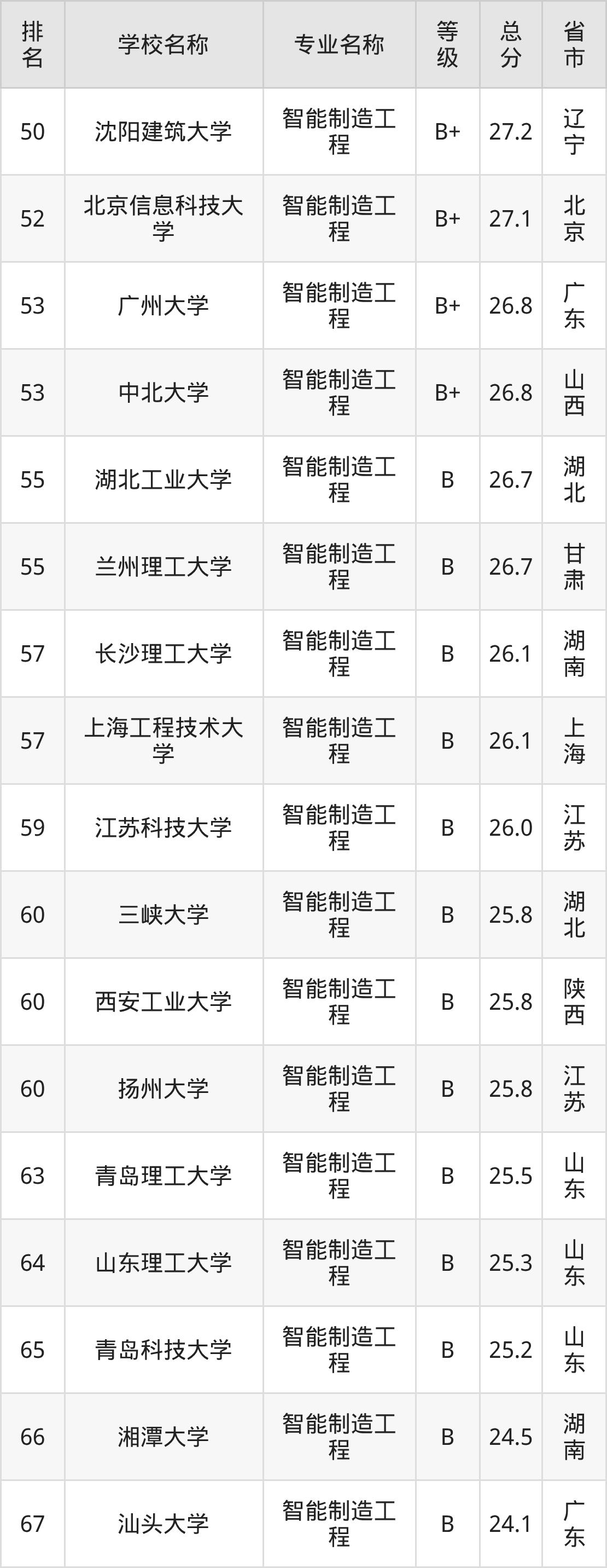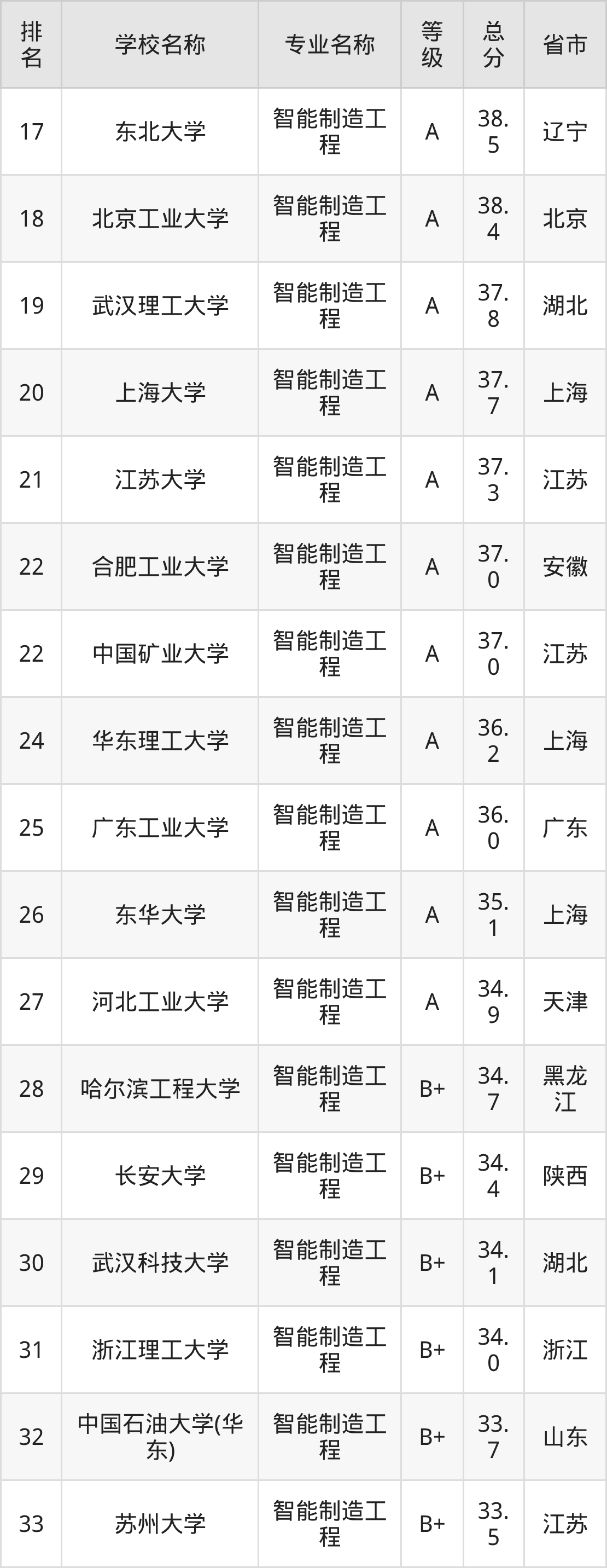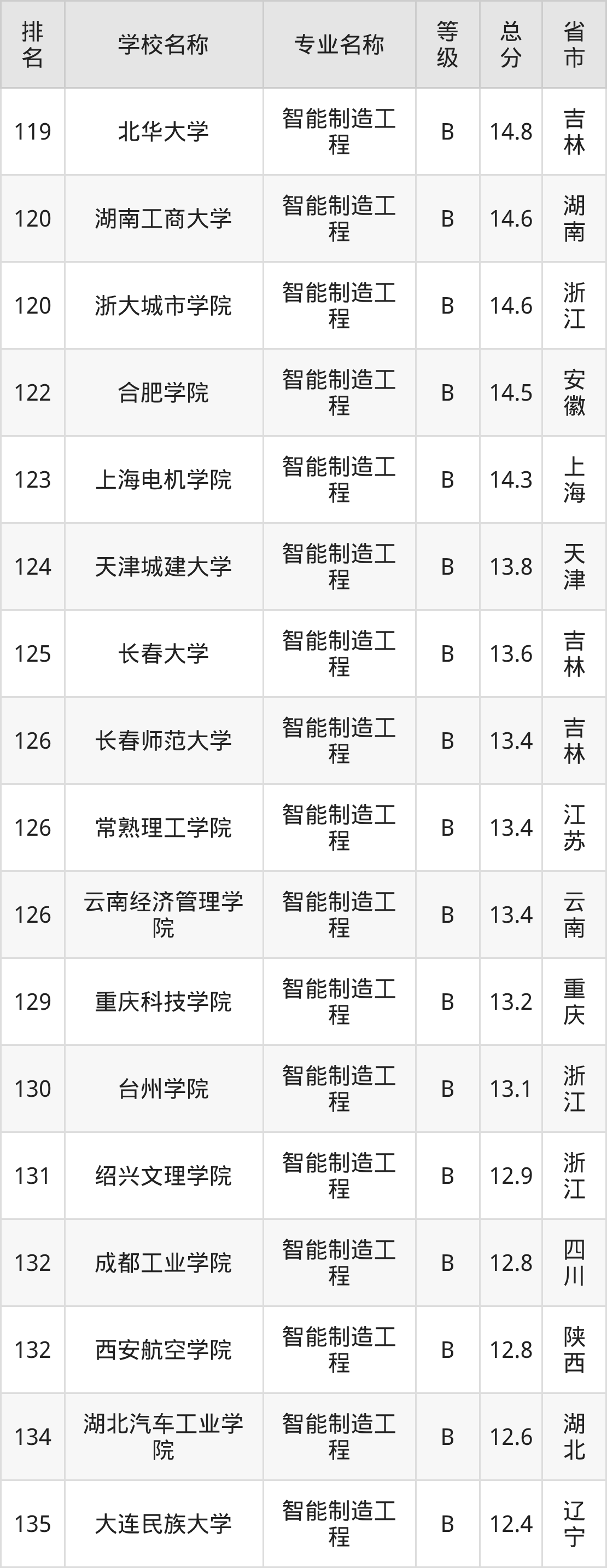 附智能制造工程专业全国137所院校排名榜单一览表!