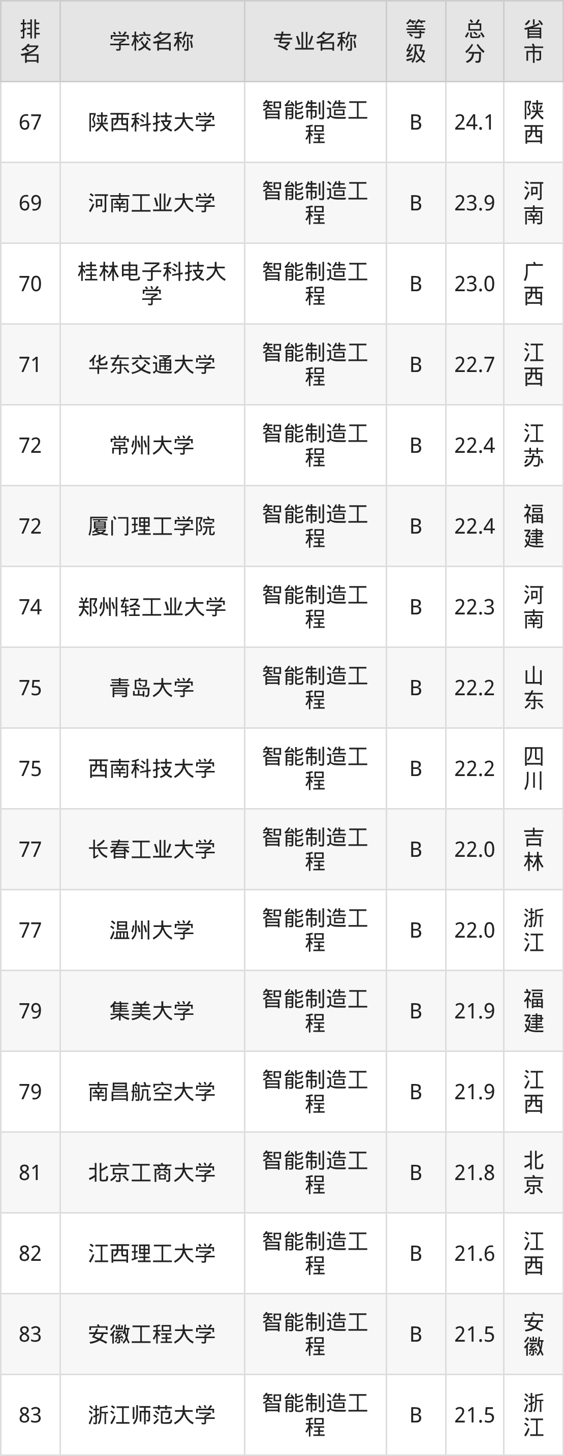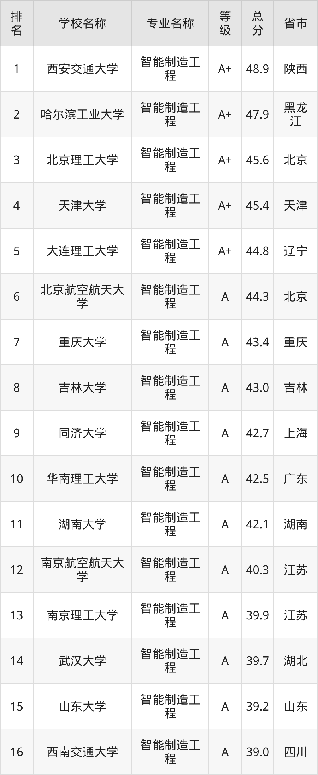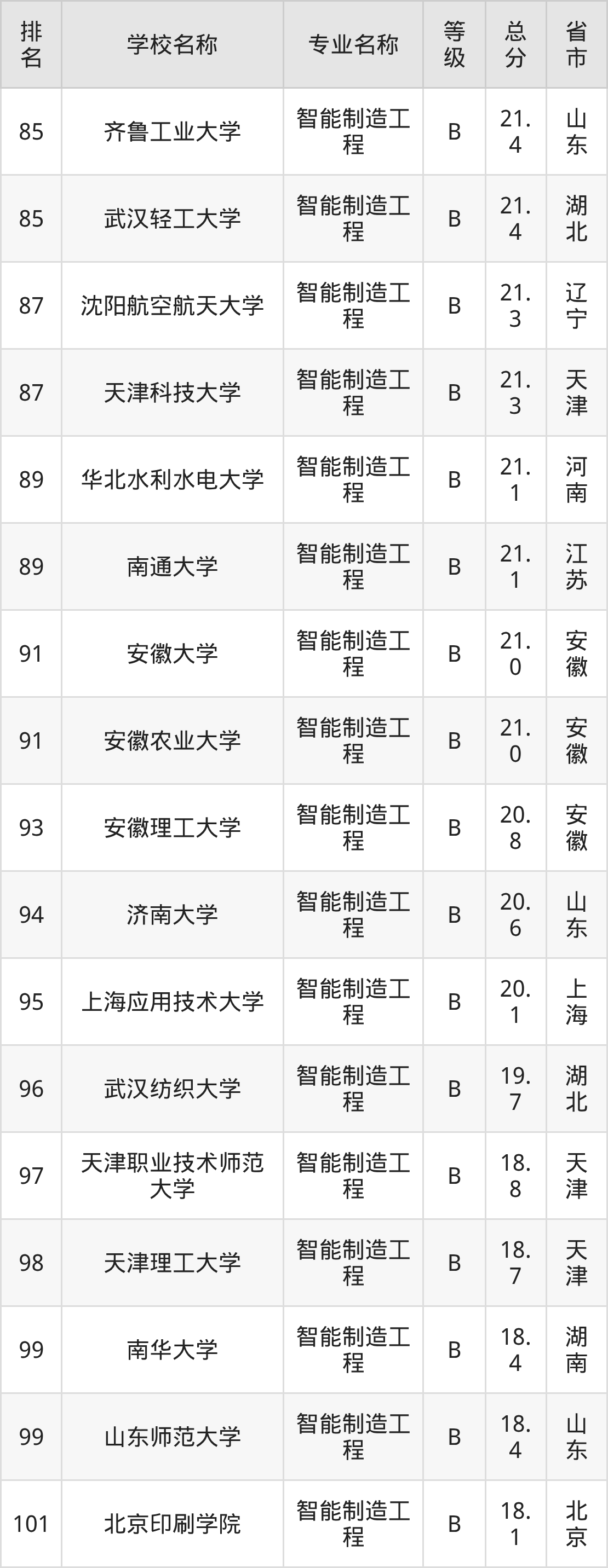 附智能制造工程专业全国137所院校排名榜单一览表!