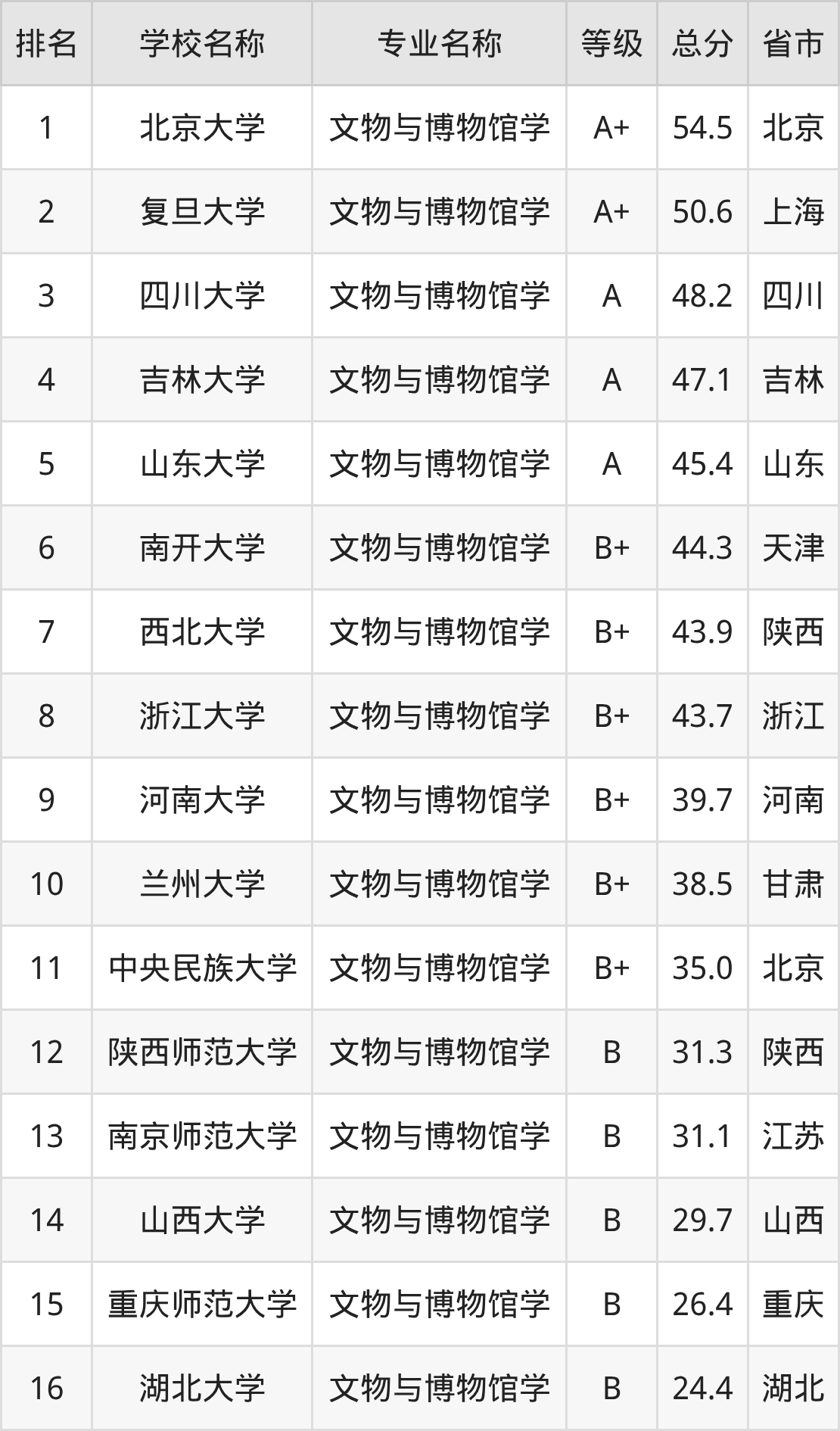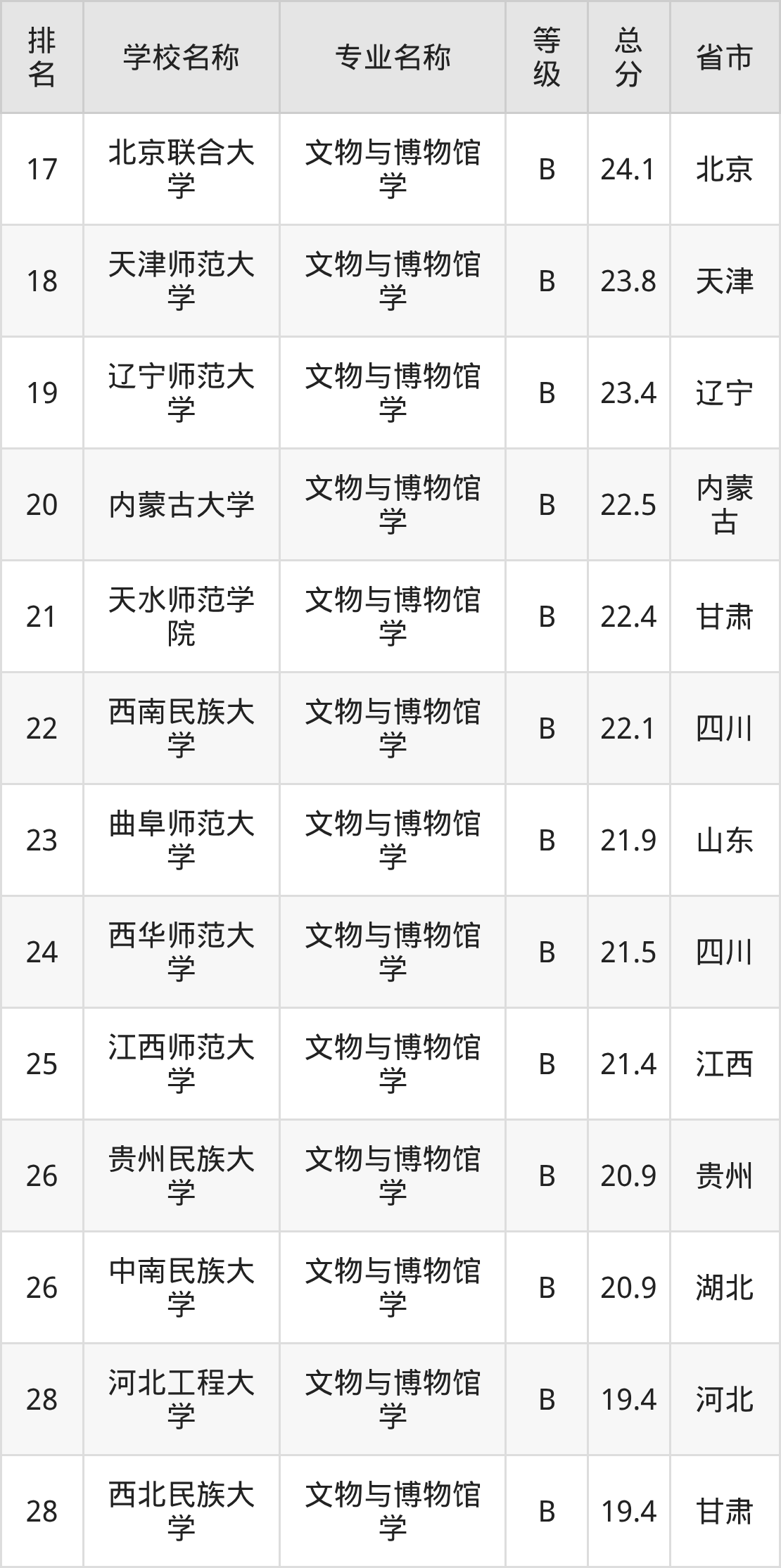 附文物与博物馆学专业全国29所院校排名榜单一览表!