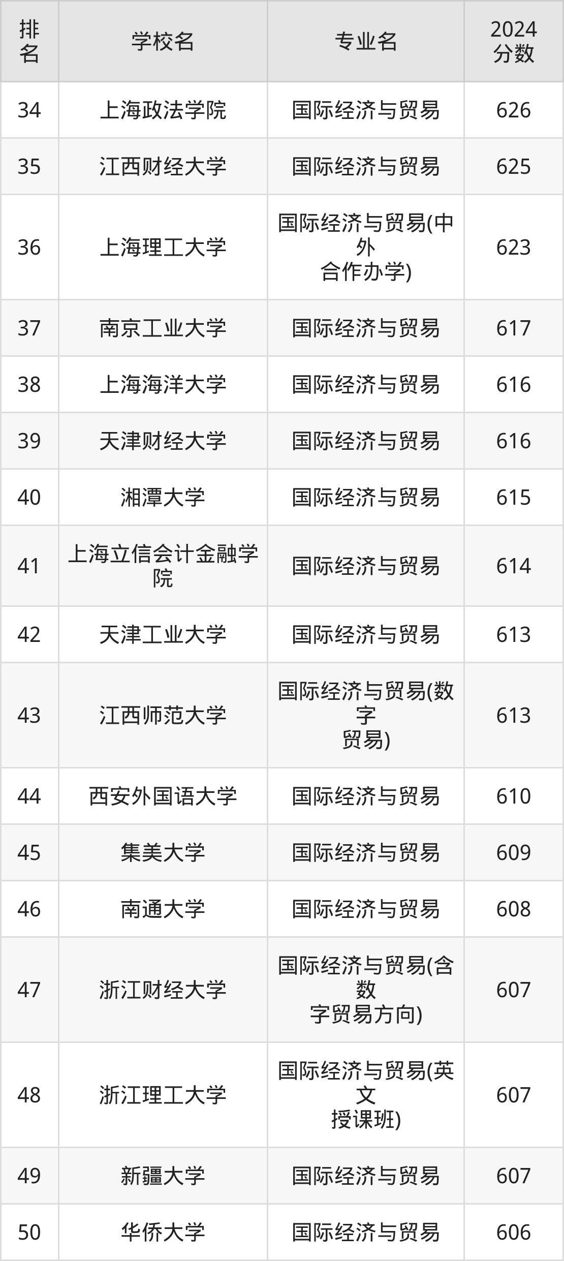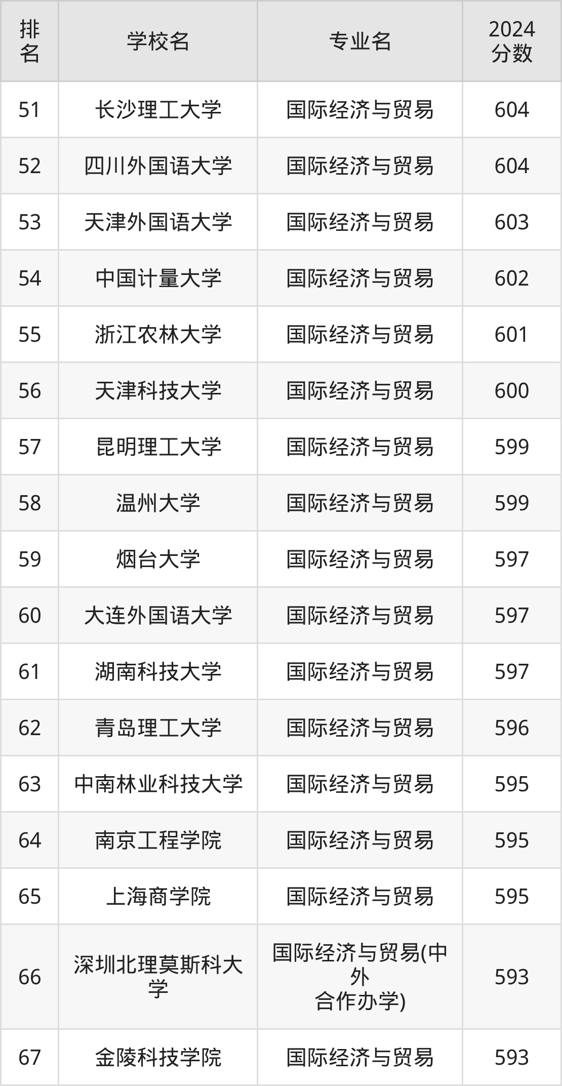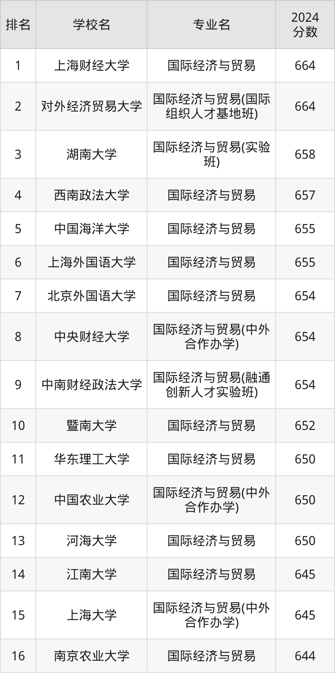 (注:不包含把国际经济与贸易专业列在大类专业中招生的名校)