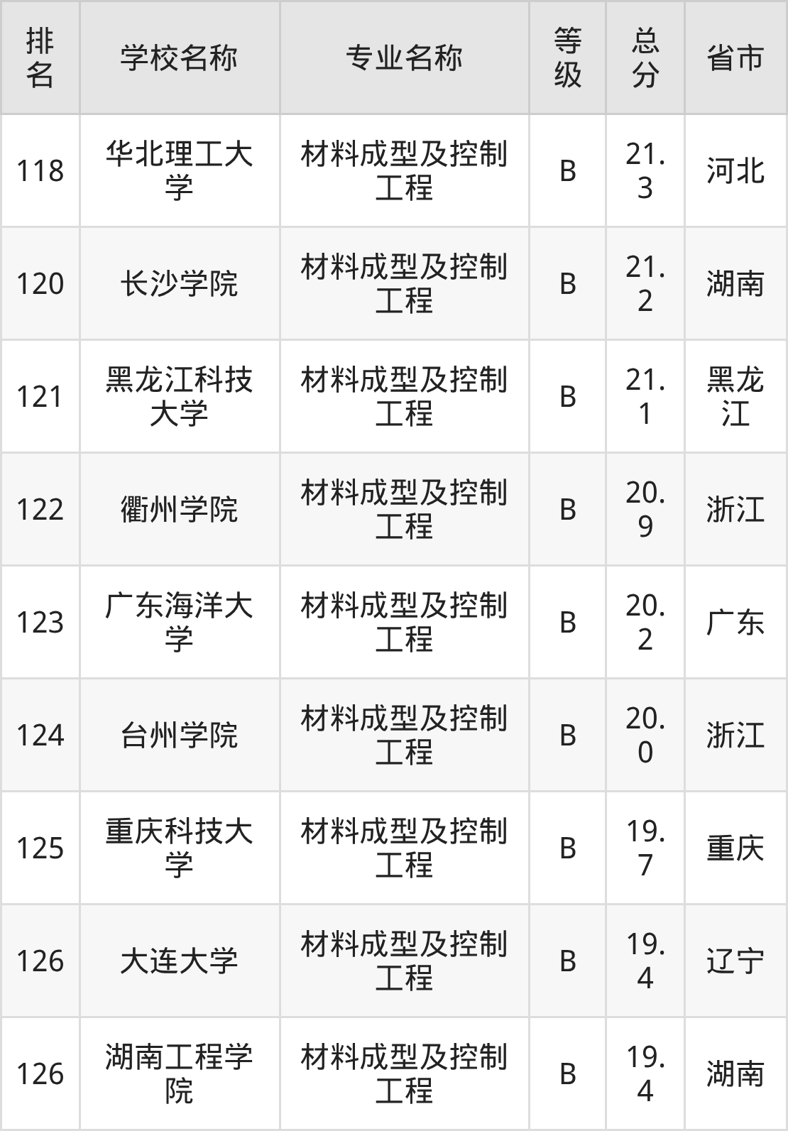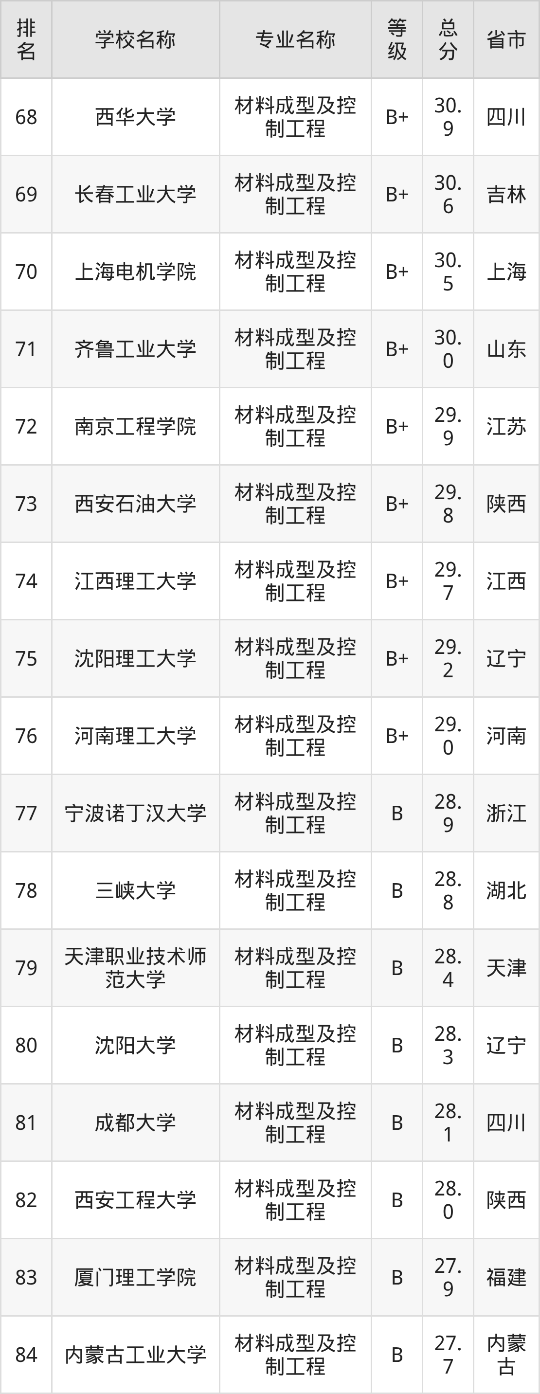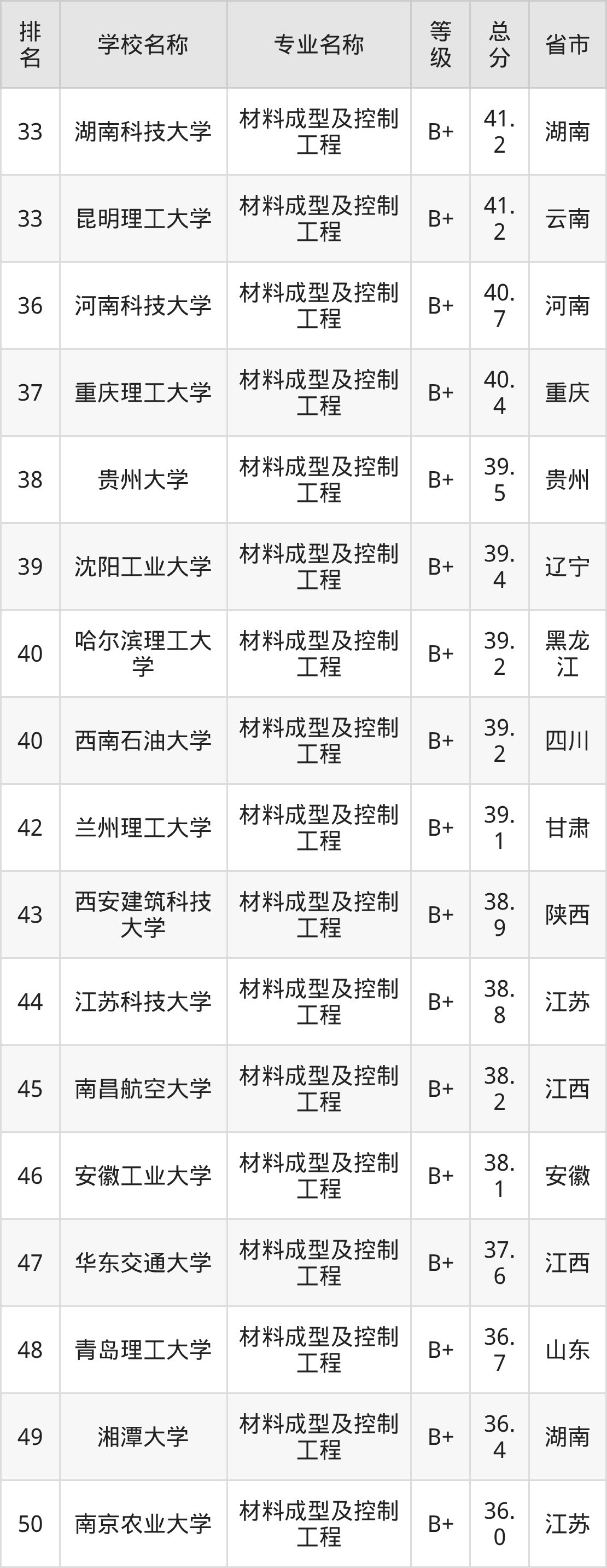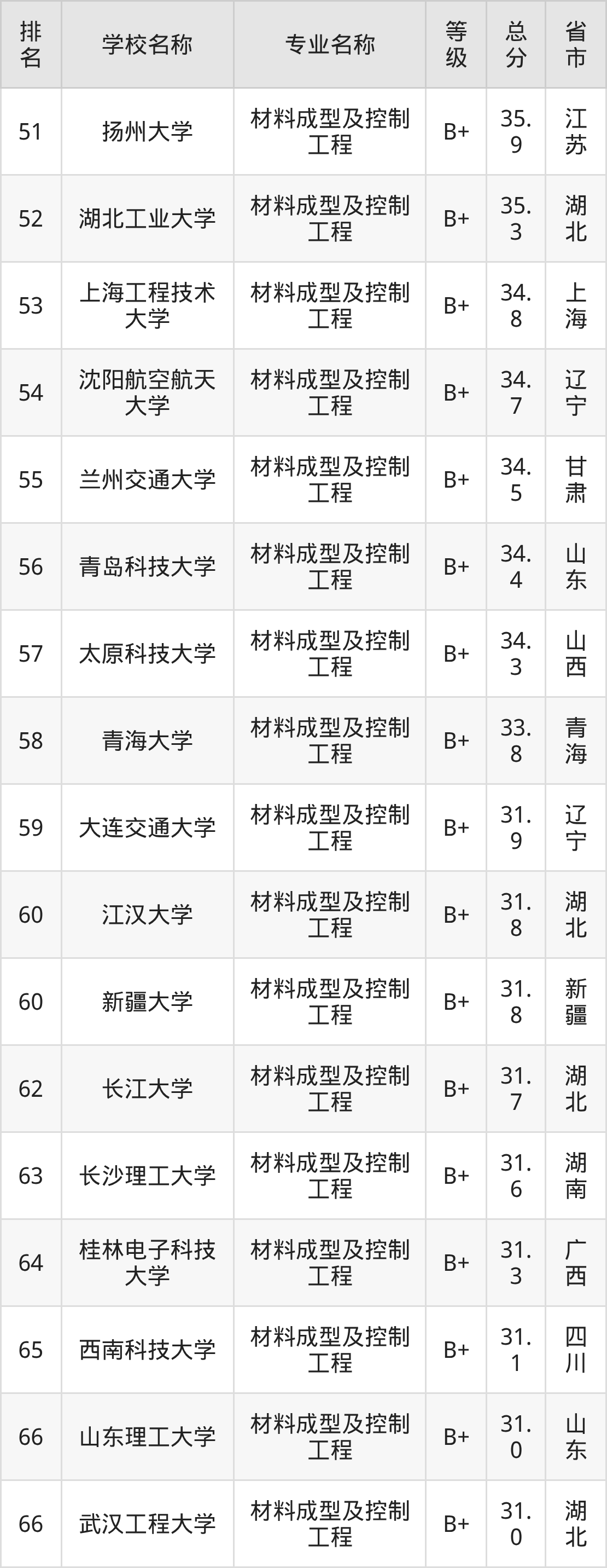 附材料成型及控制工程专业全国127所院校排名榜单一览表!