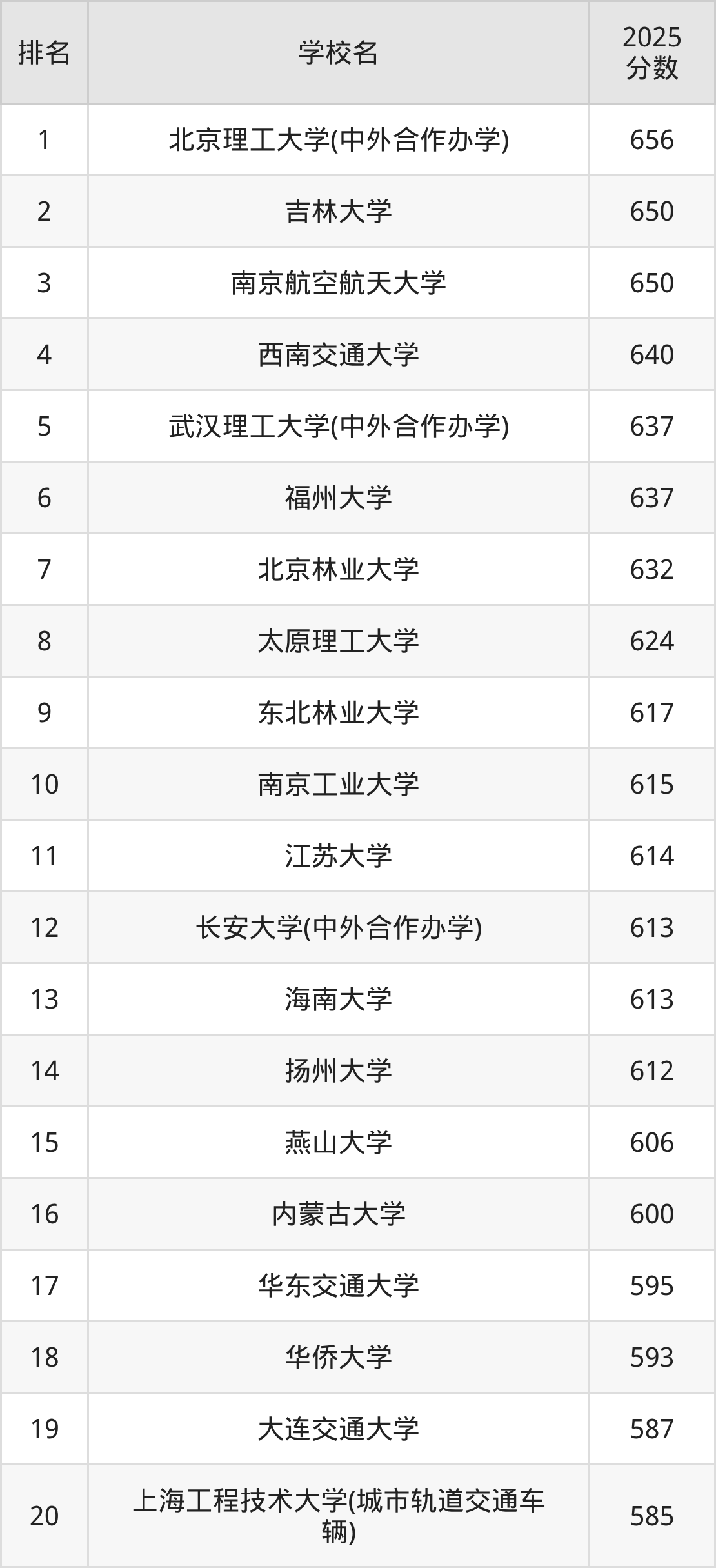 车辆工程专业排名前十的大学有清华大学、北京理工大学、同济大学等。本文整理了全国开设车辆工程专业的大学排名及分数线,供2026年高考生查阅!