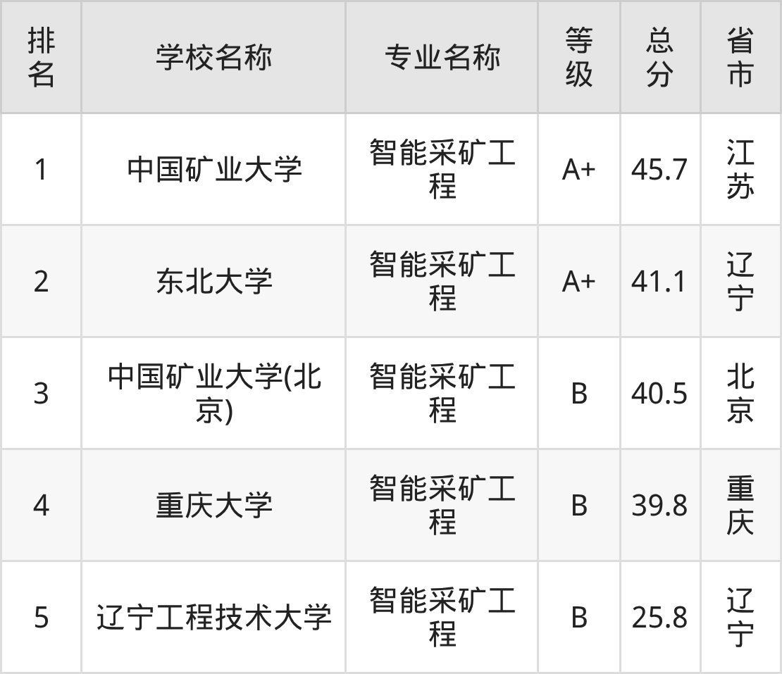 根据软科榜单可知,智能采矿工程专业全国排名前五的大学分别是: