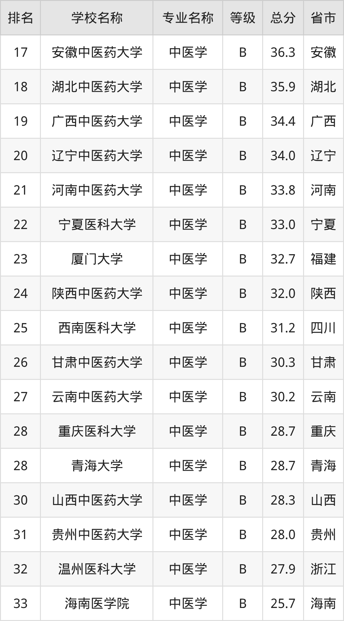 2025年中医学专业全国大学排名中,排名第一的是北京中医药大学,被软科榜单评为:中医学专业实力最强的本科院校。本文将展示中医学专业上榜软科榜单的35所院校排名以及等级评分,供2026年想读中医学专业的同学们参考!