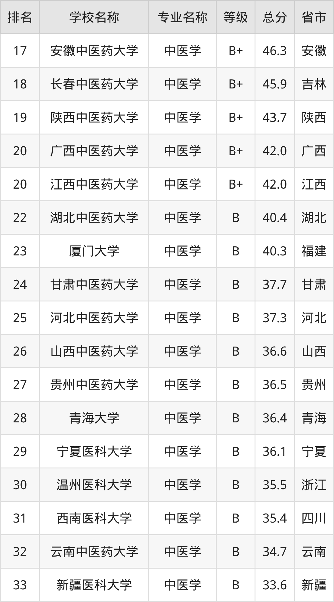 一、2025年中医学专业全国大学排名