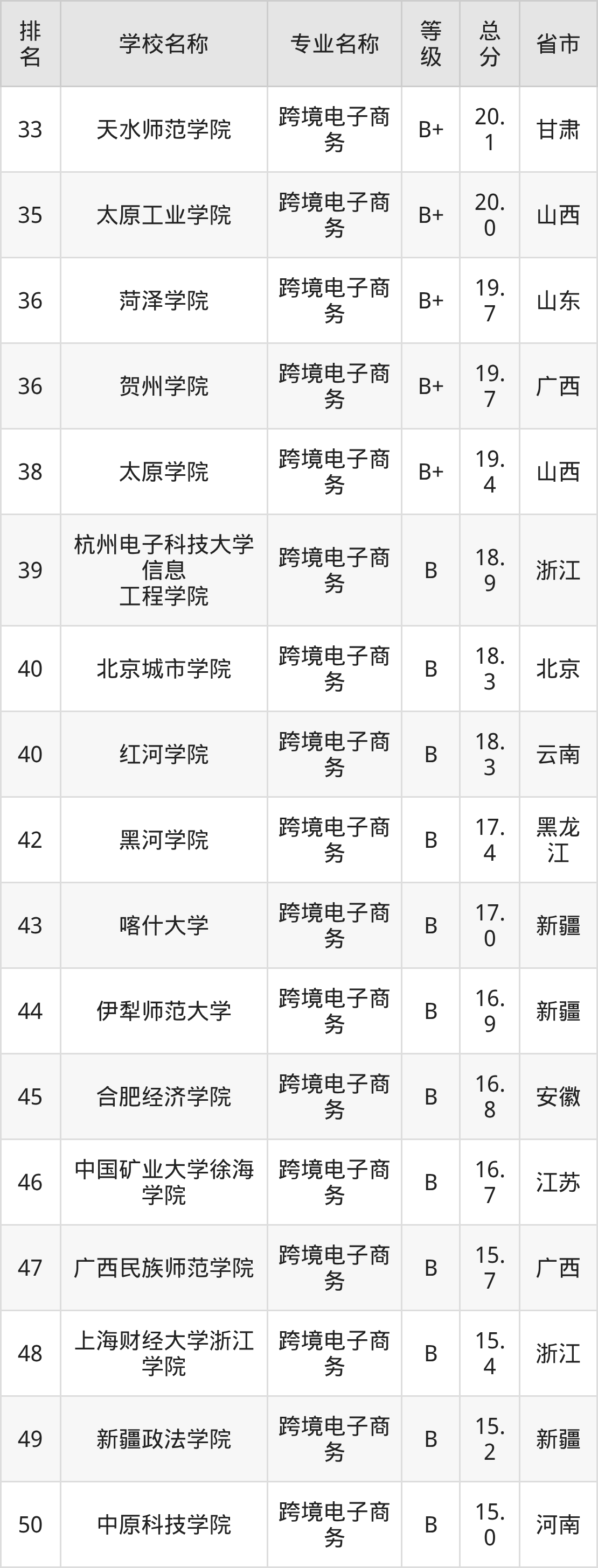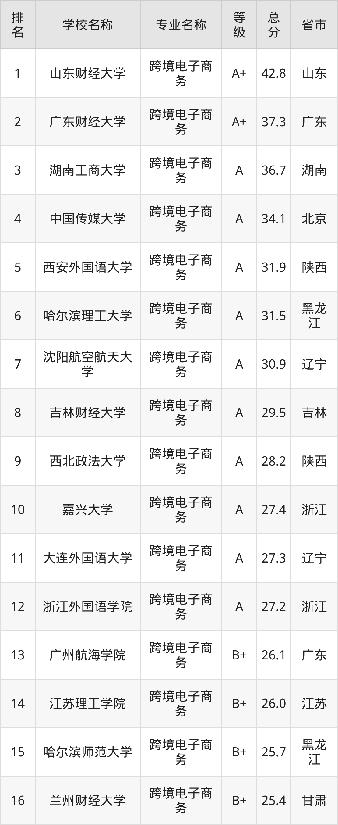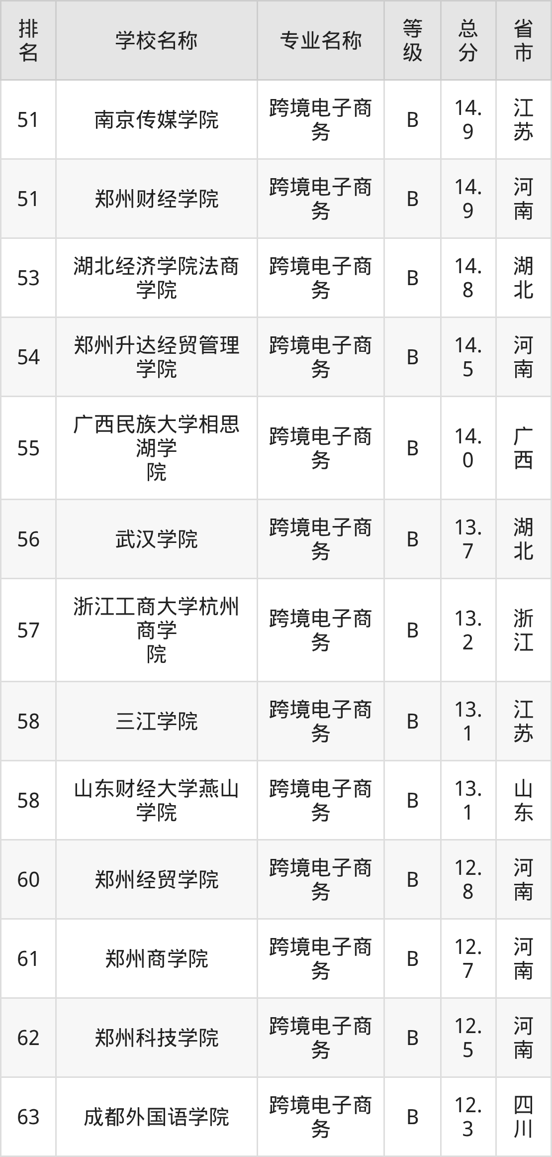附跨境电子商务专业全国63所院校排名榜单一览表!