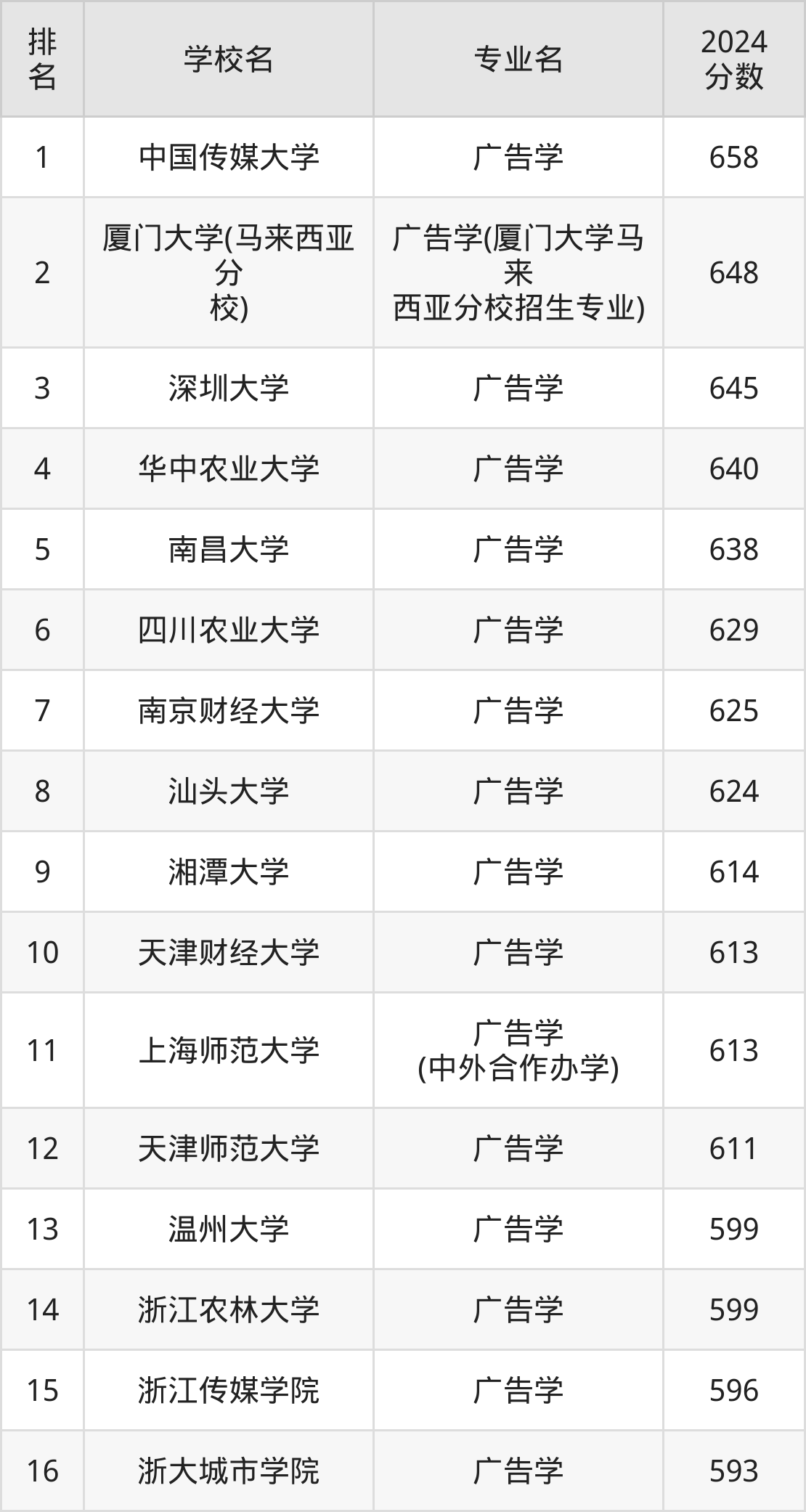 (注:不包含把广告学专业列在大类专业中招生的名校)