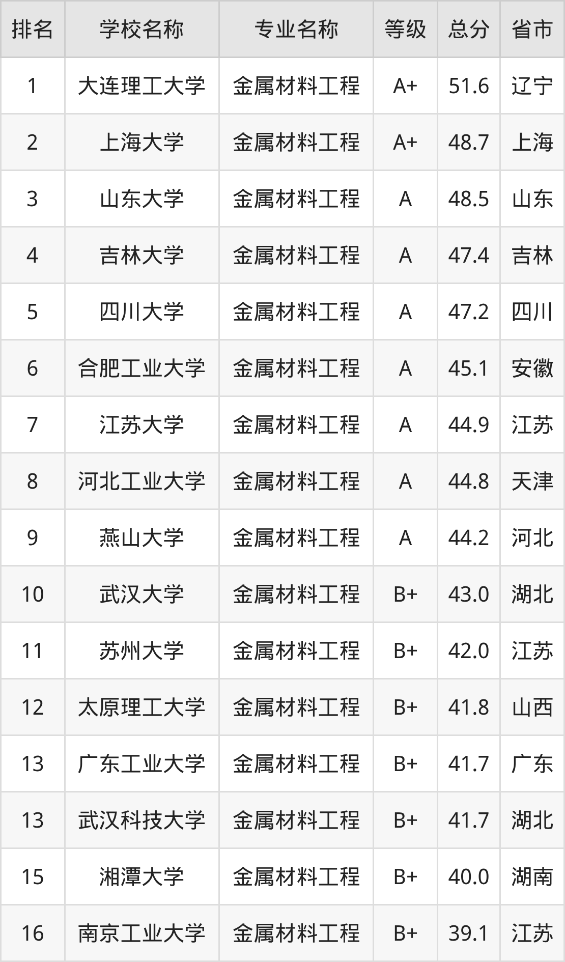 如果你的高考成绩拔尖,可重点考虑以上10所开设了金属材料工程专业的大学。