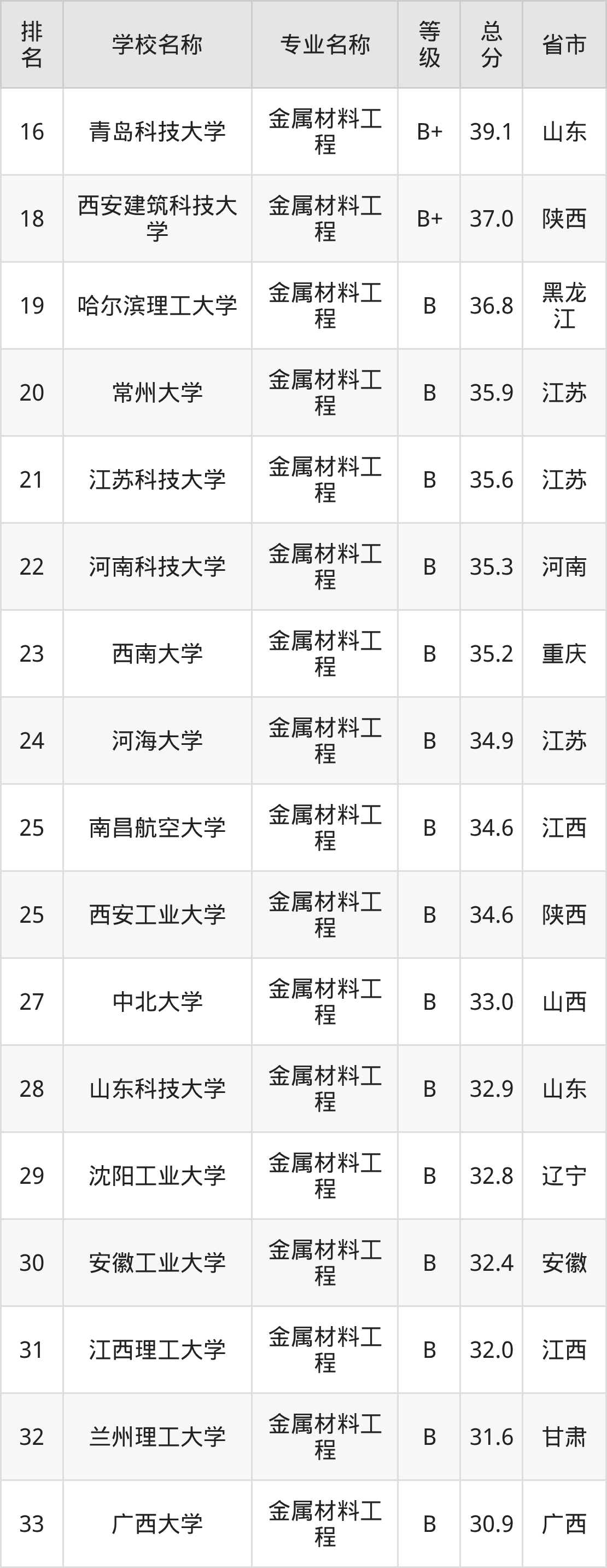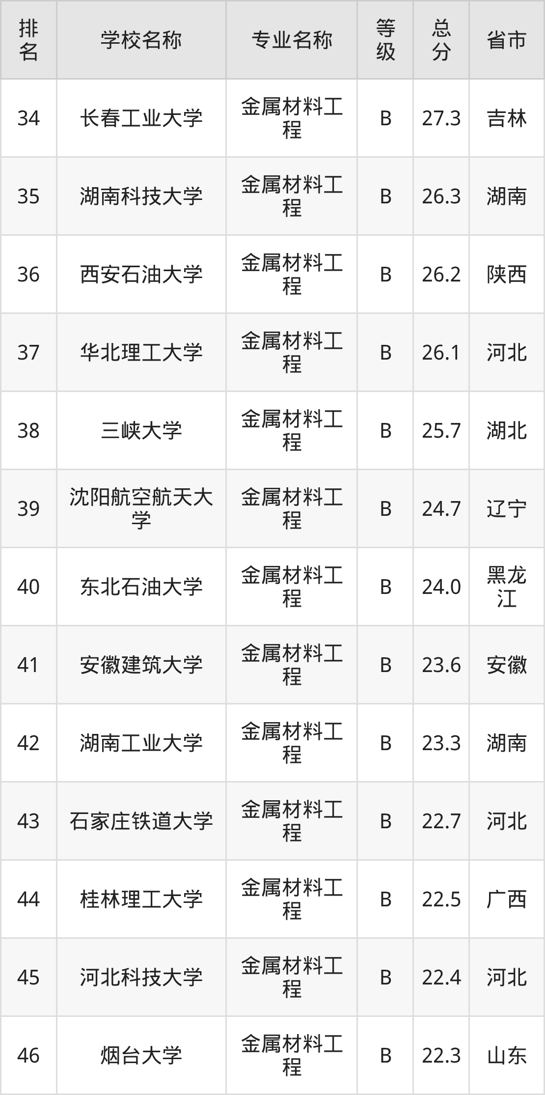 附金属材料工程专业全国46所院校排名榜单一览表!