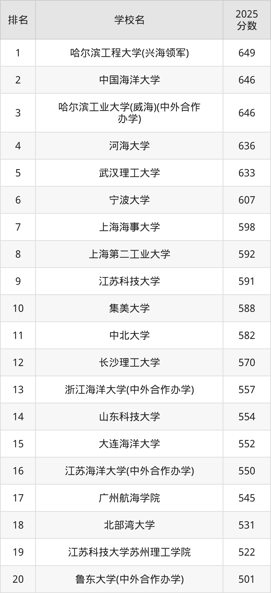 二、船舶与海洋工程专业大学排名及分数线