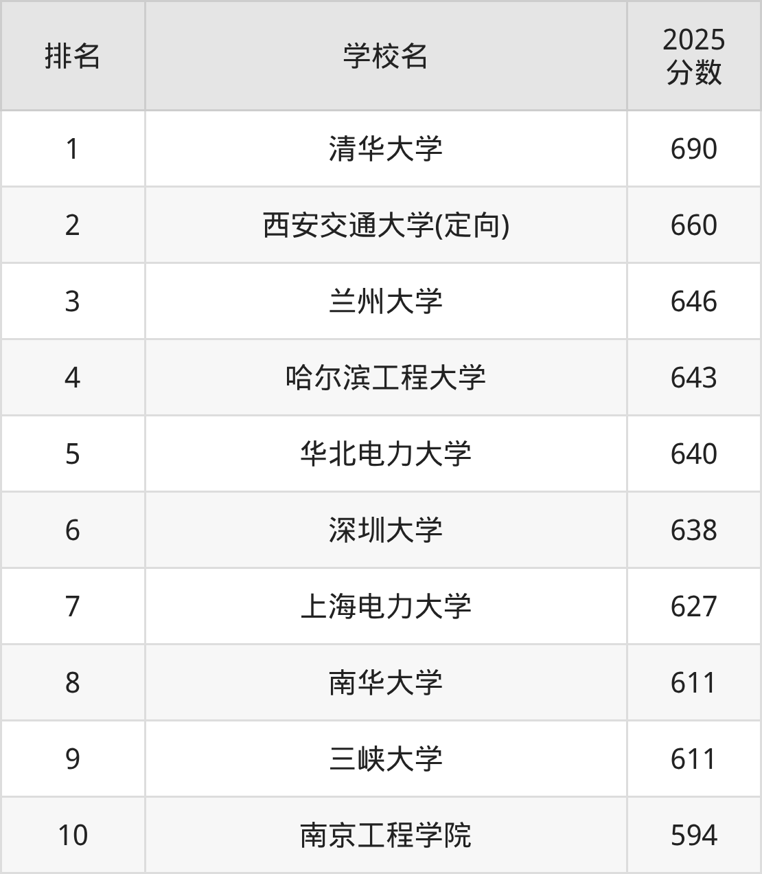 根据软科2025最新排名可知,核工程与核技术专业最好的十所名校名单如下: