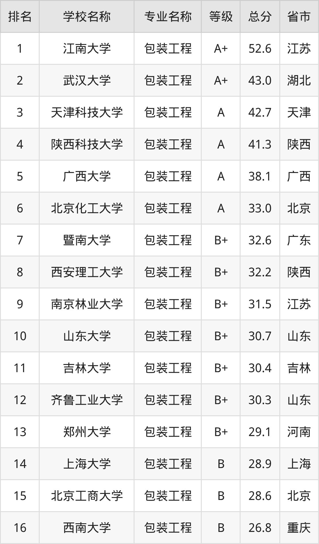 如果你的高考成绩拔尖,可重点考虑以上10所开设了包装工程专业的大学。