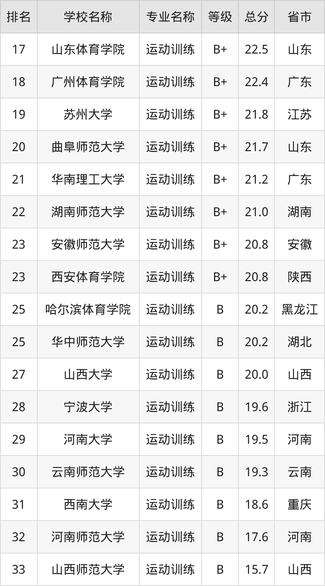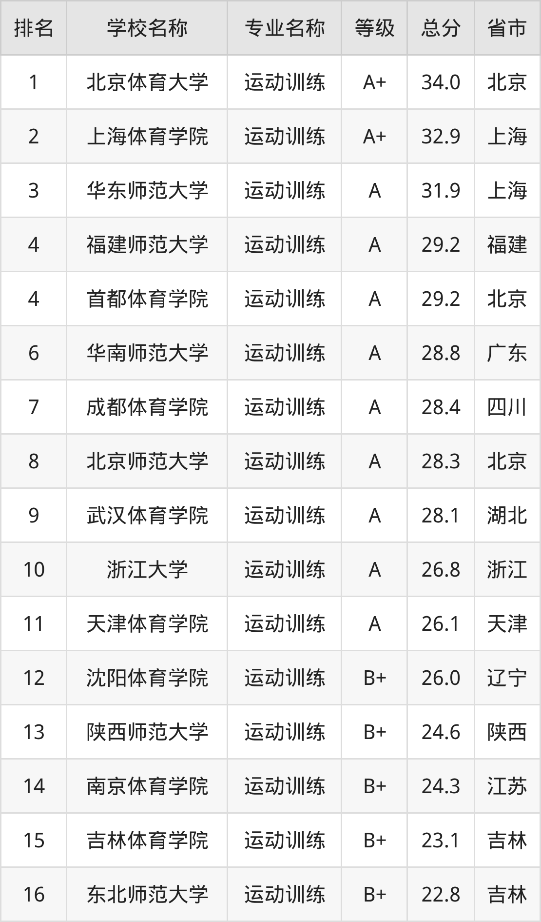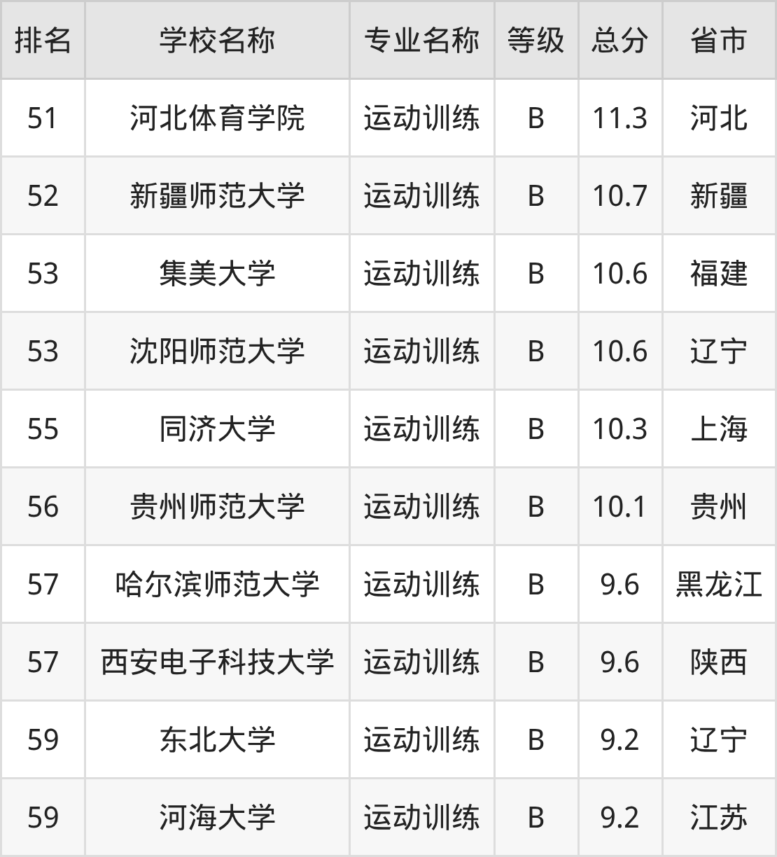 附运动训练专业全国60所院校排名榜单一览表!