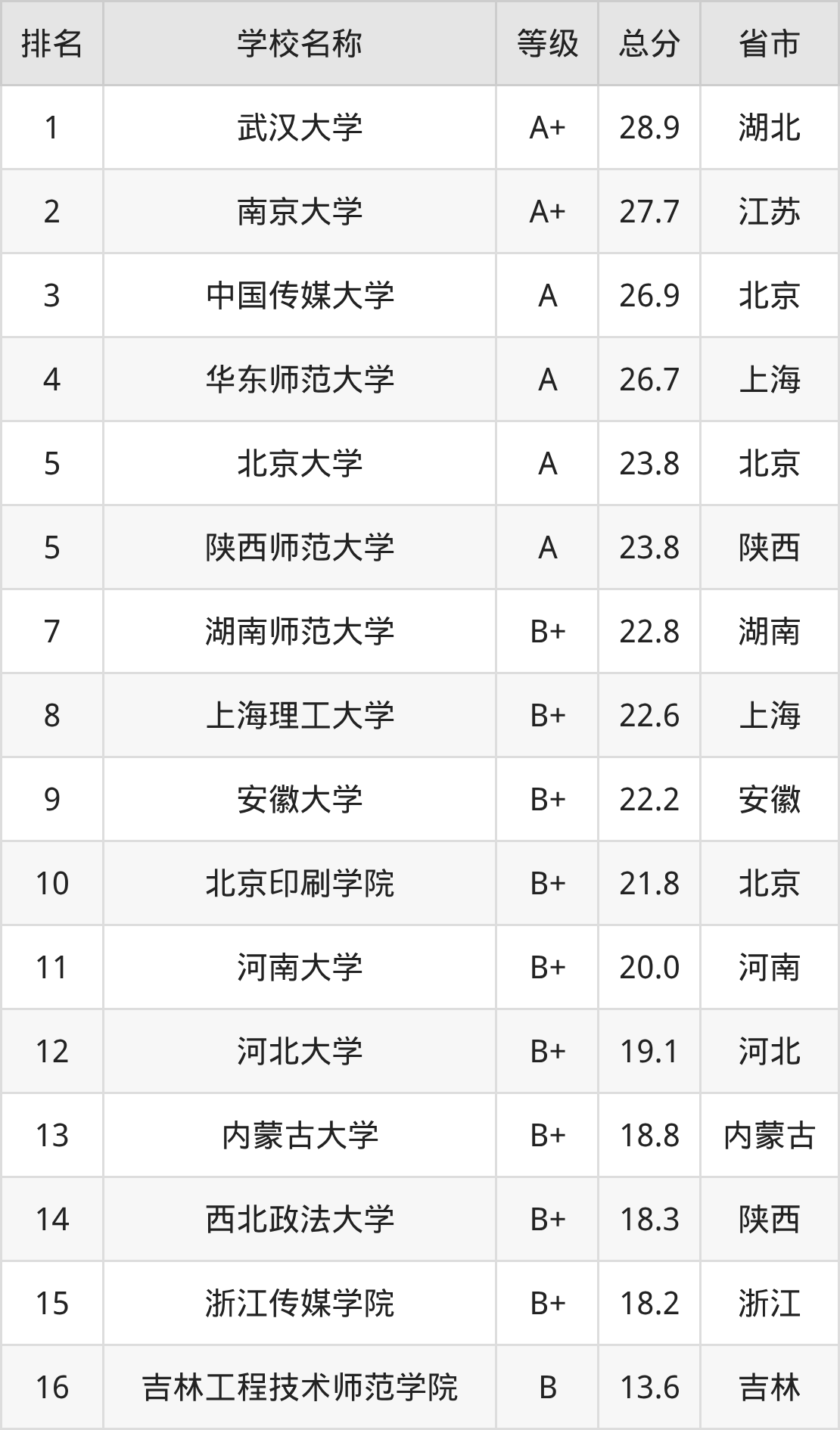 附编辑出版学专业全国25所院校排名榜单一览表!
