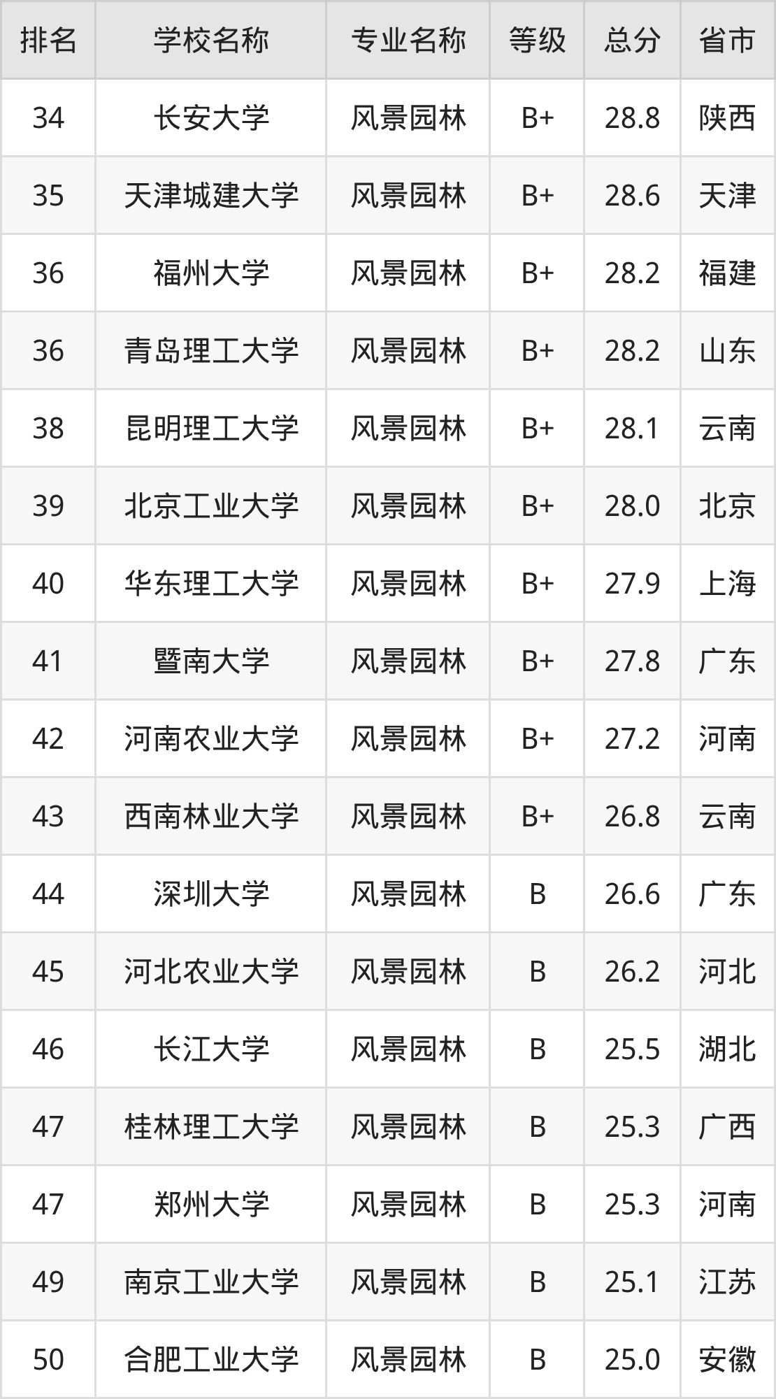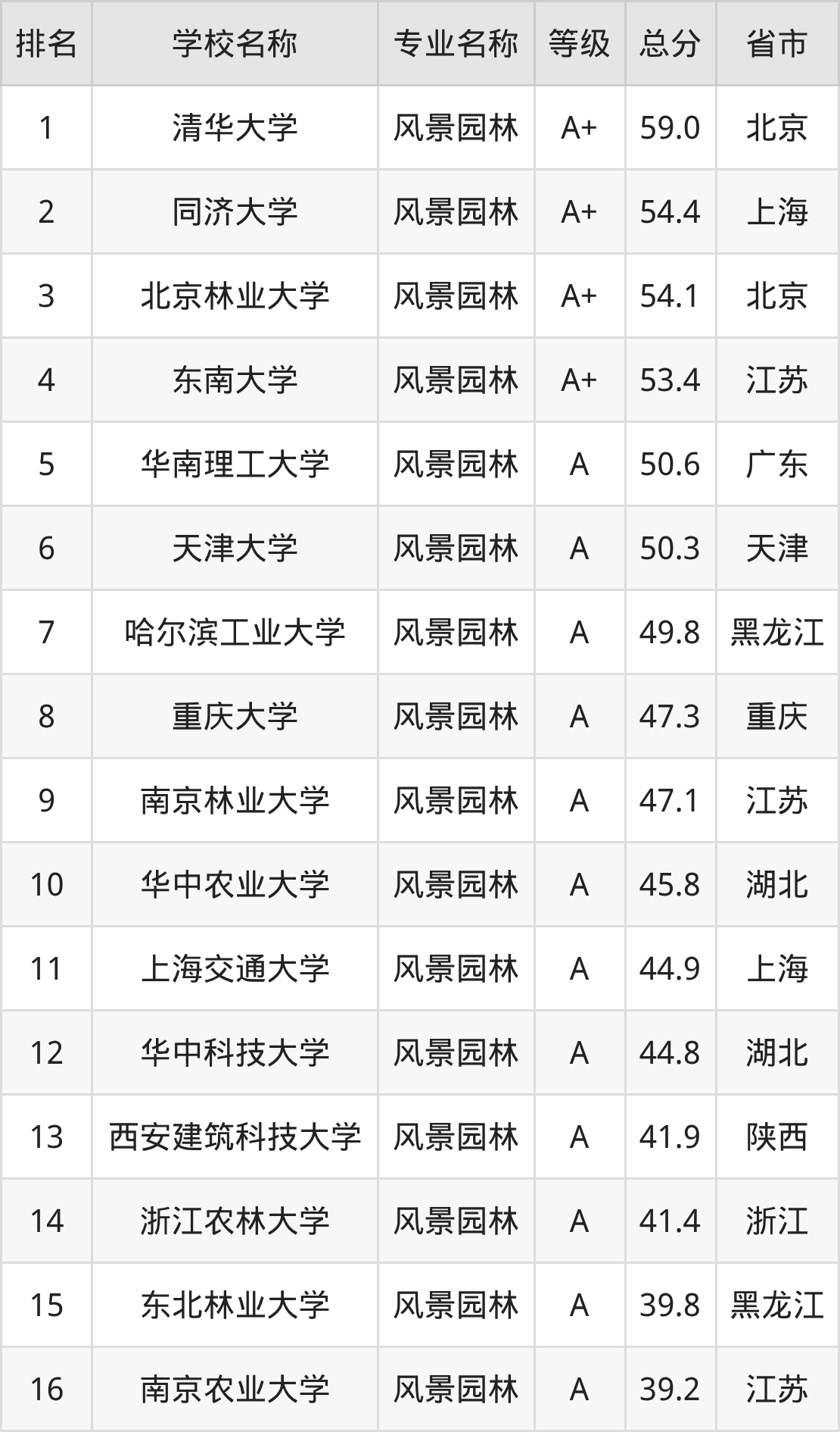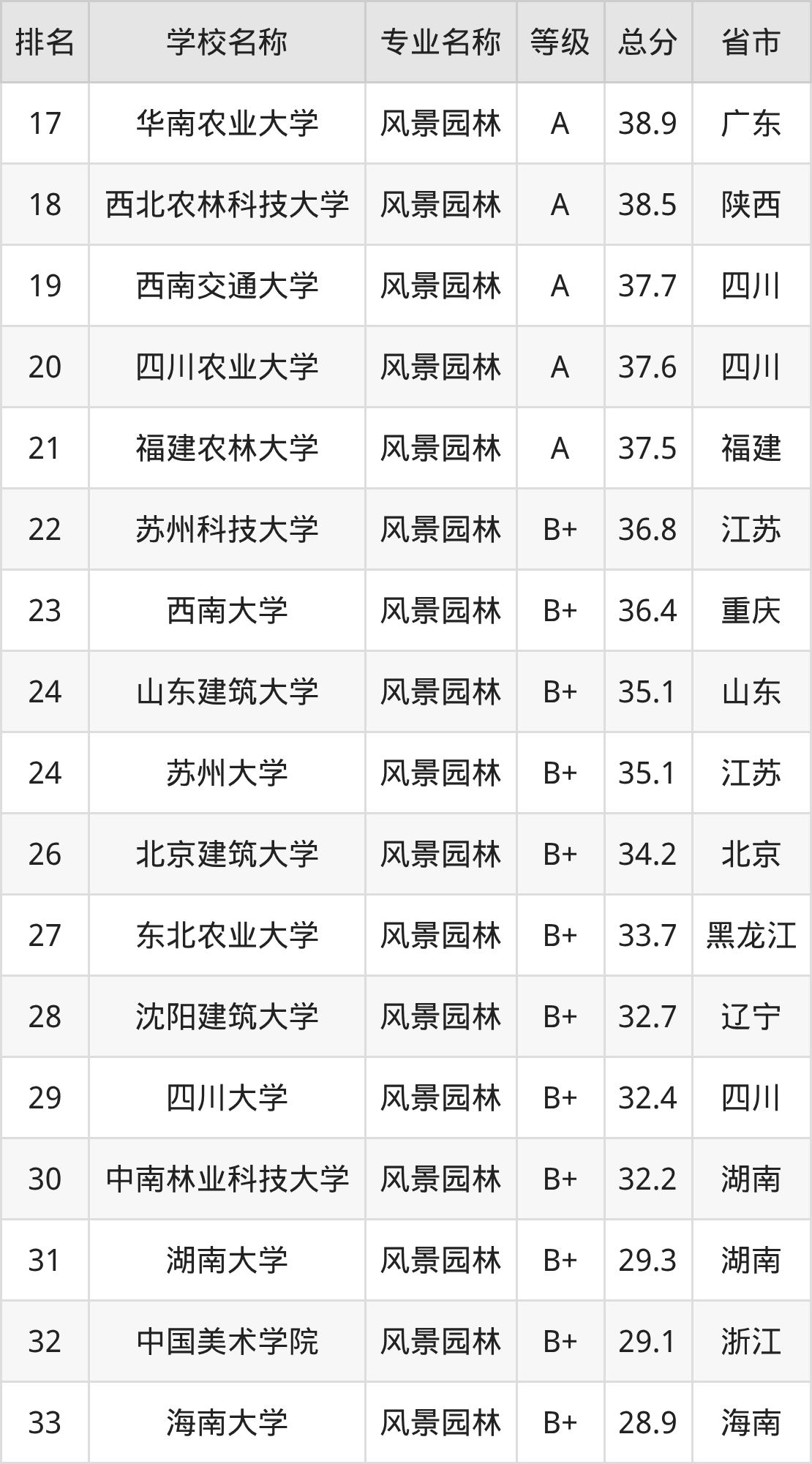根据软科榜单可知,风景园林专业全国排名前十的大学分别是: