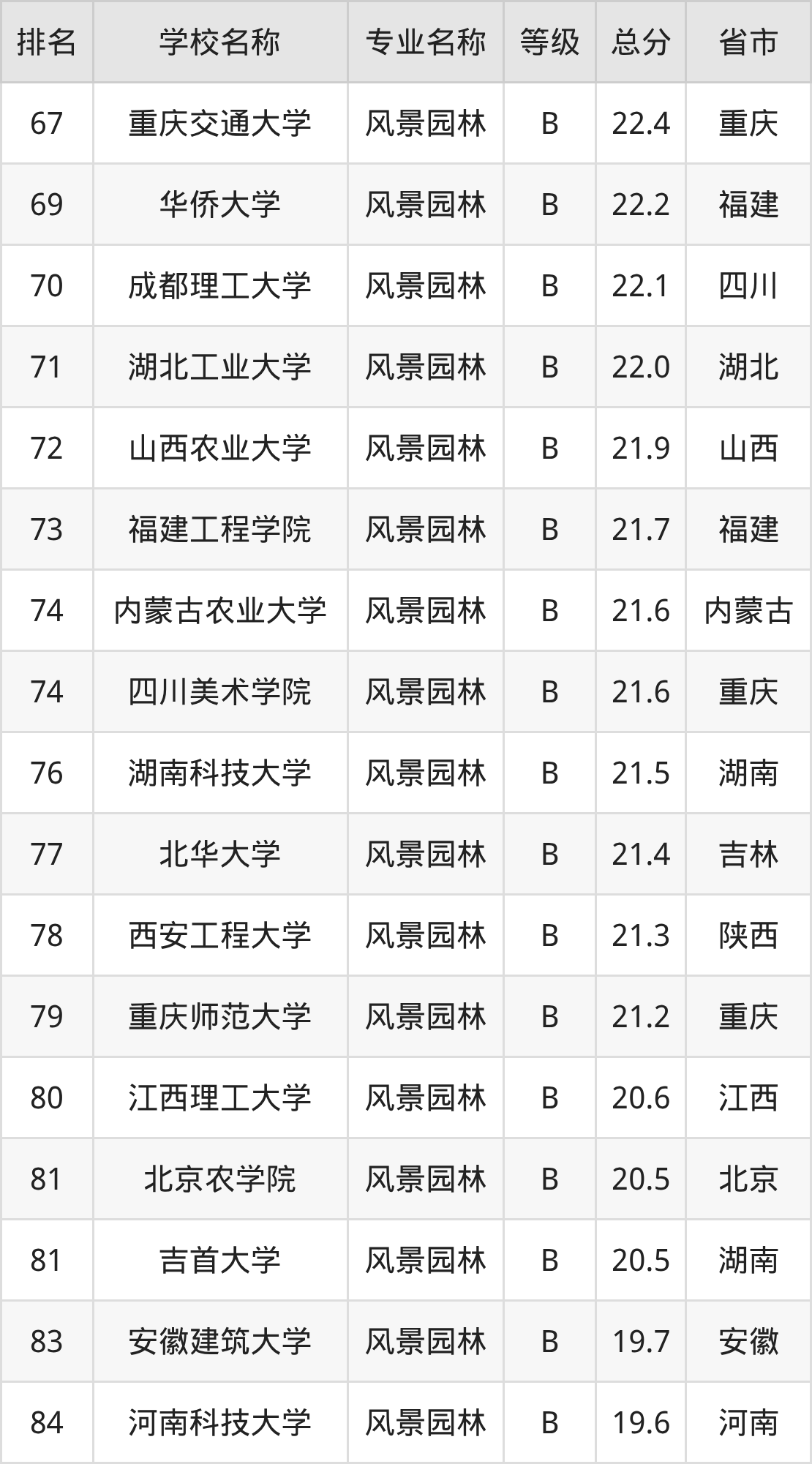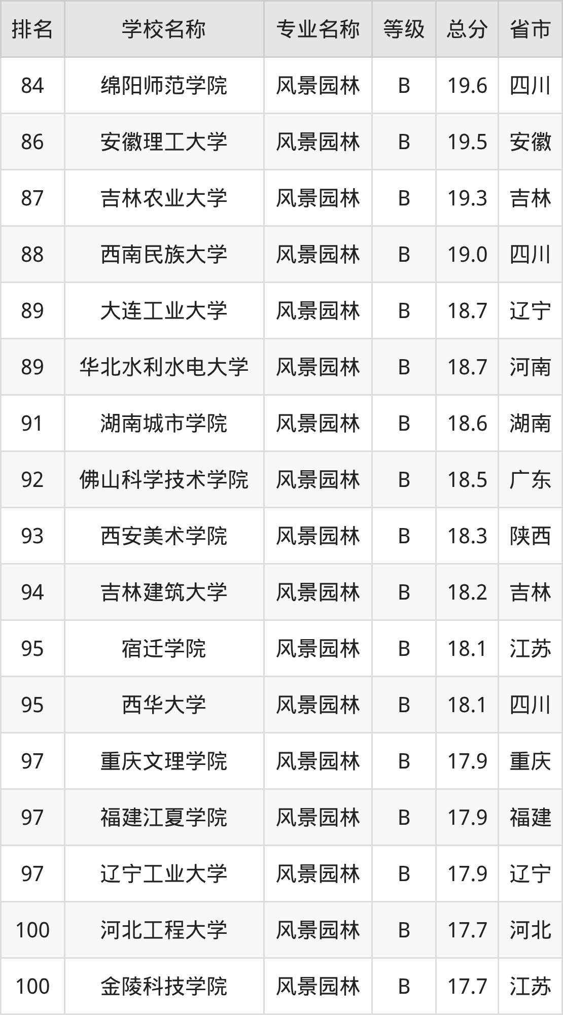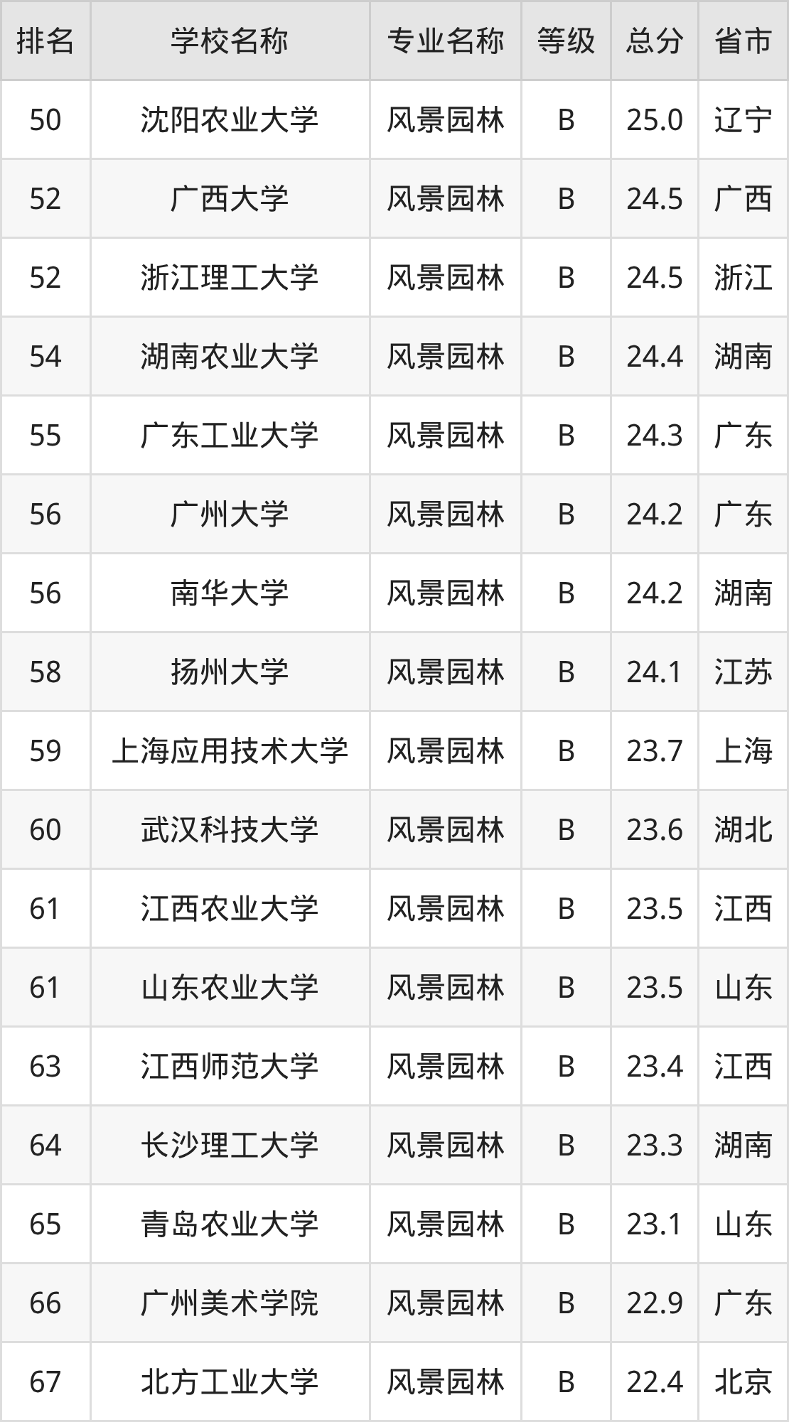 根据软科榜单可知,风景园林专业全国排名前十的大学分别是: