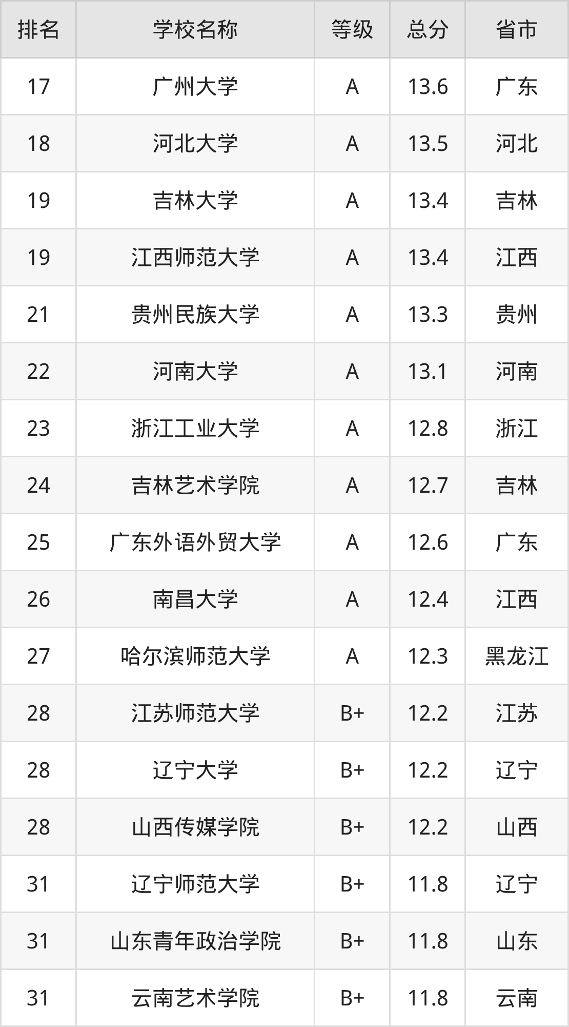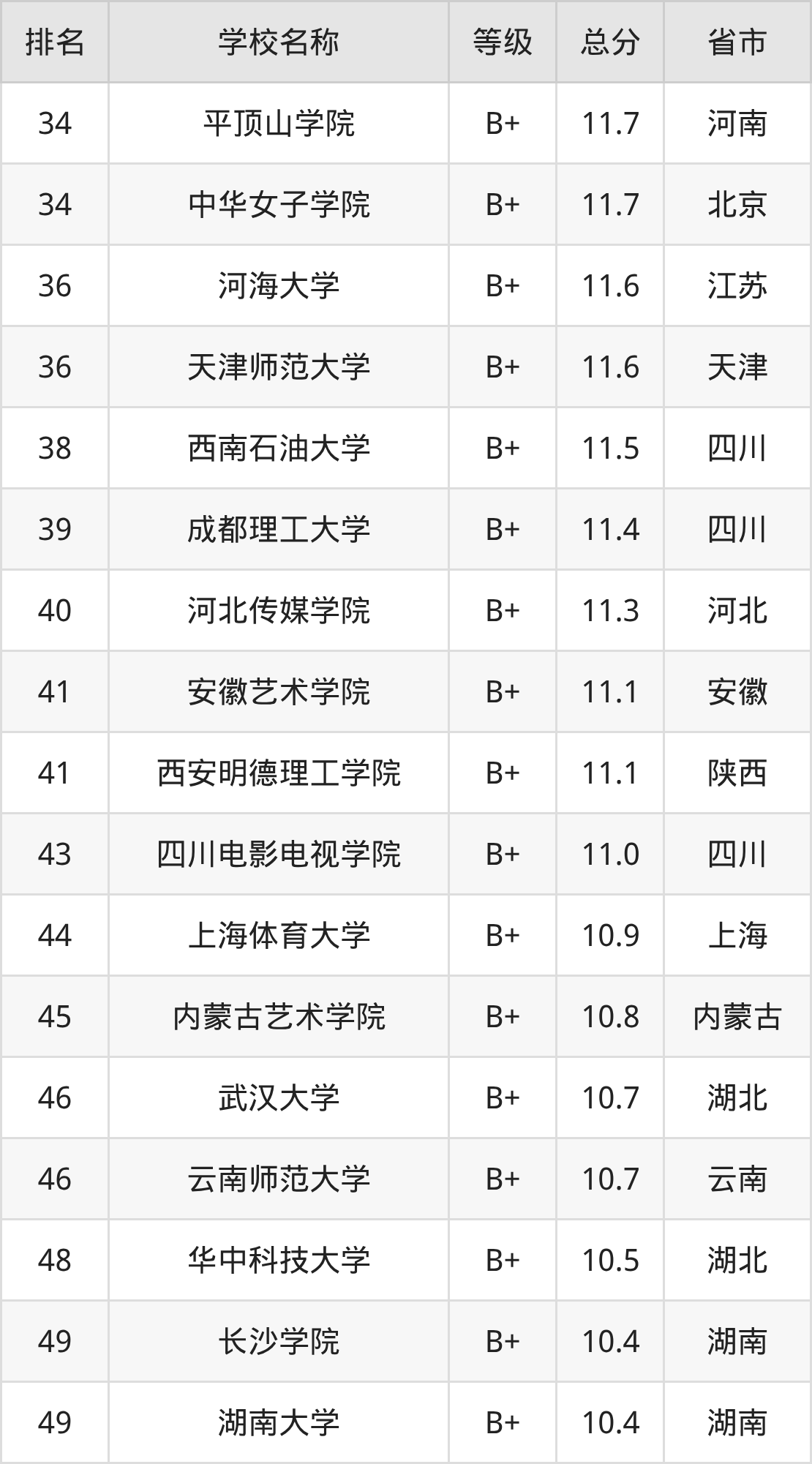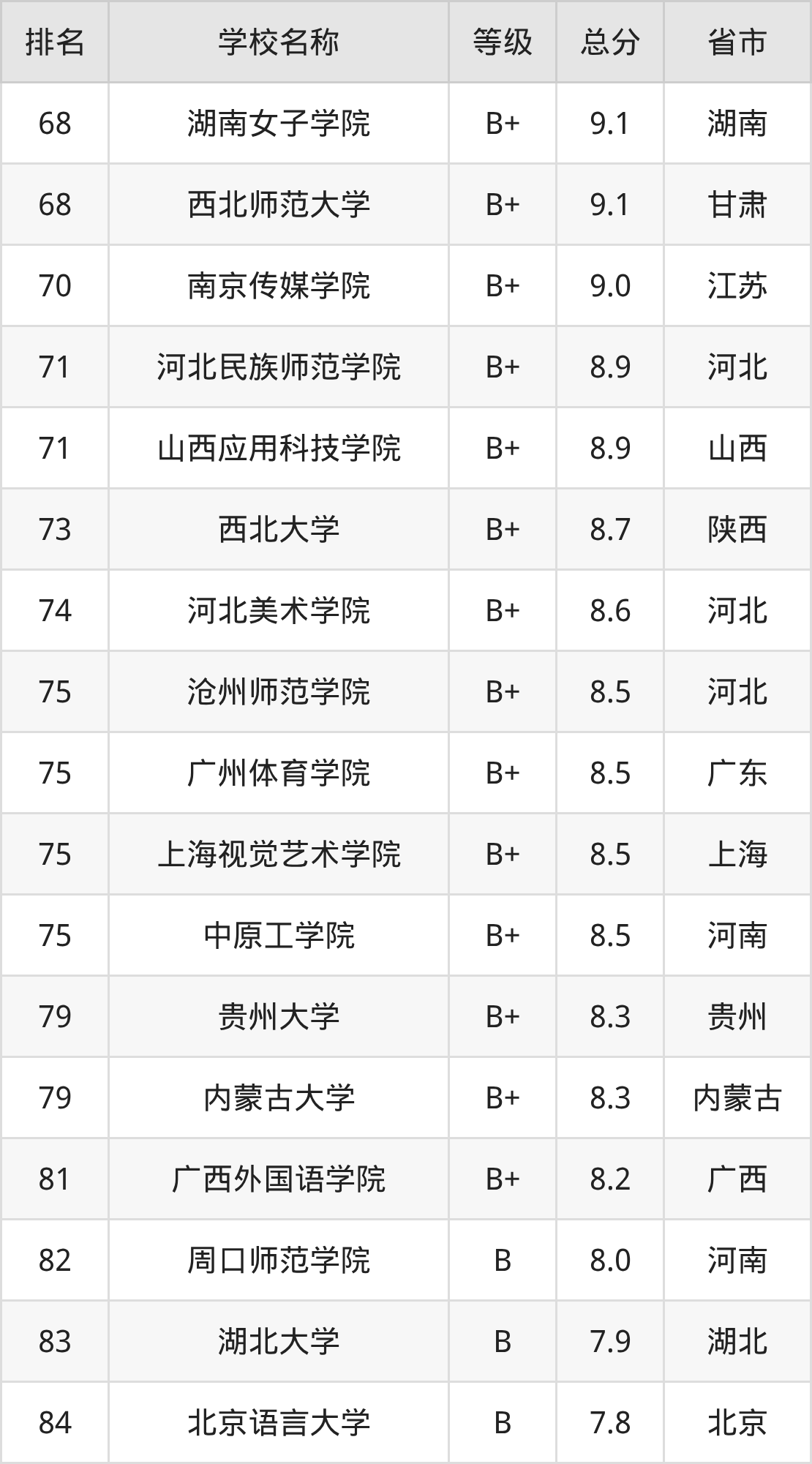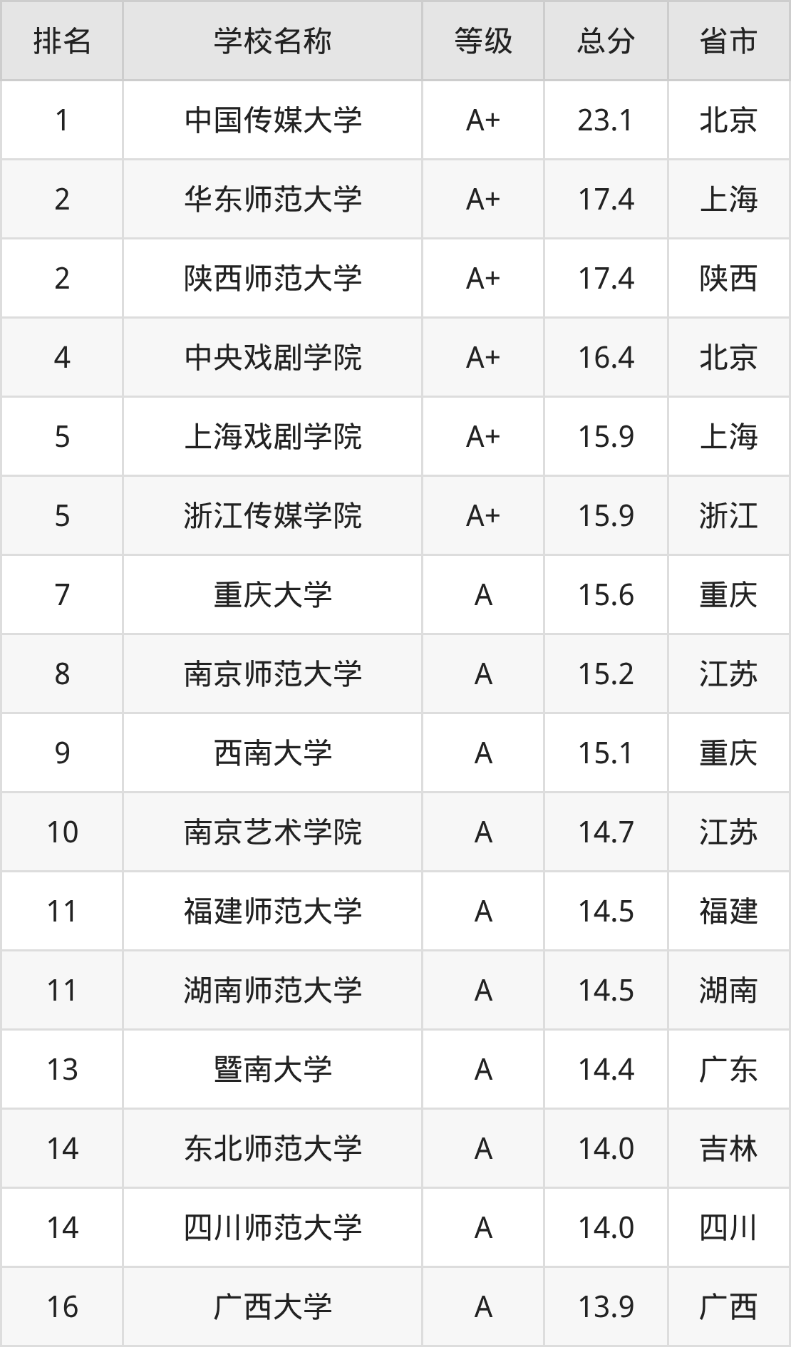 中国传媒大学:第1名,评分为23.1