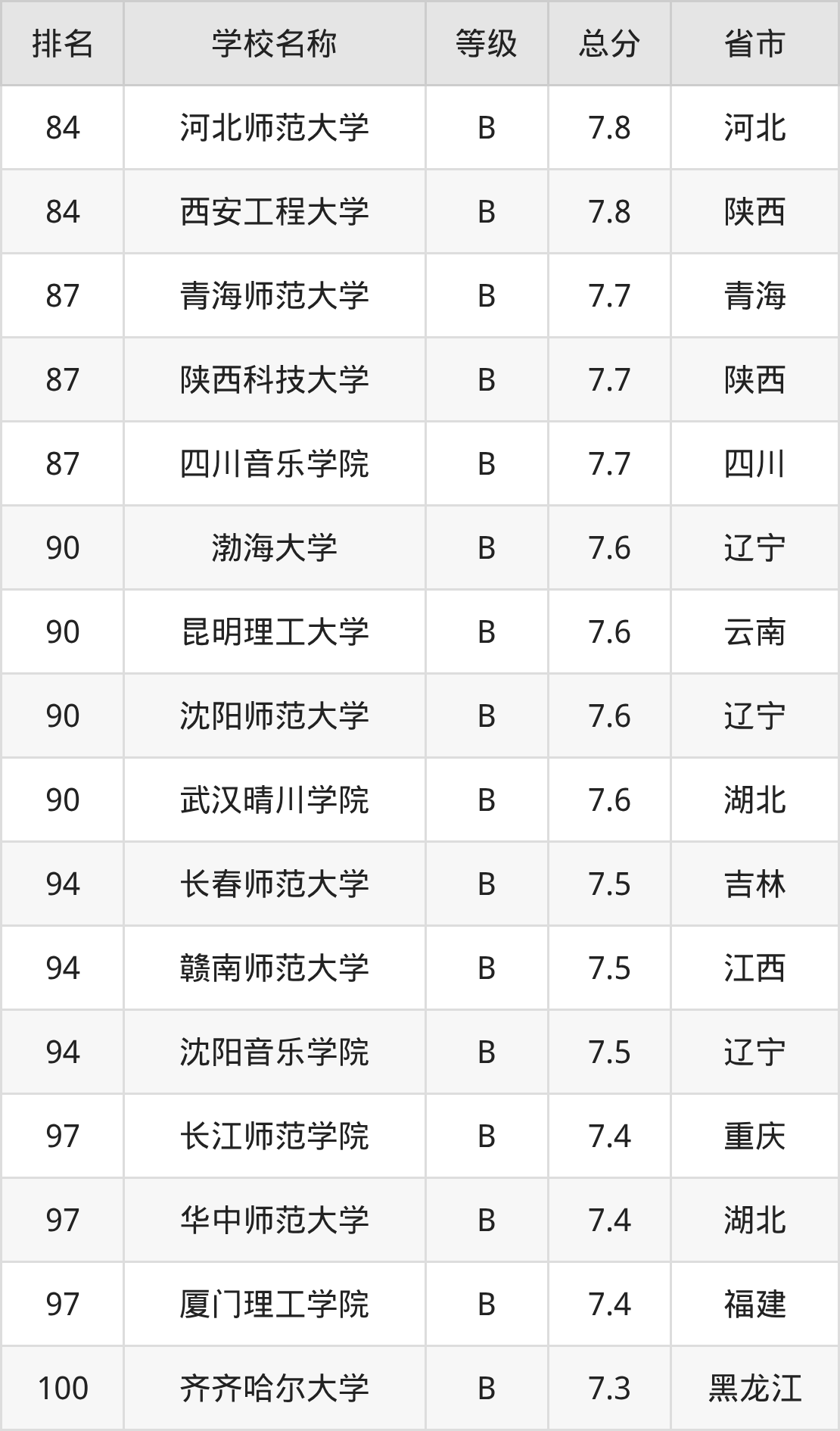 陕西师范大学:第2名,评分为17.4