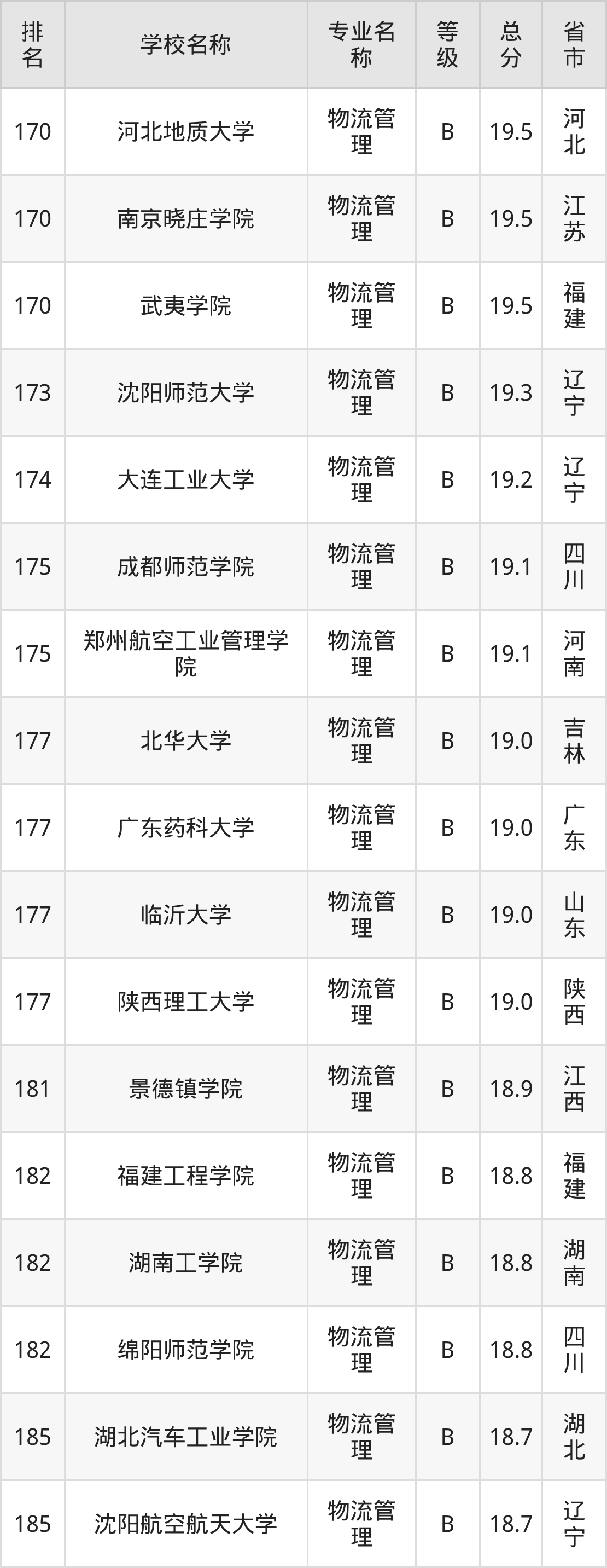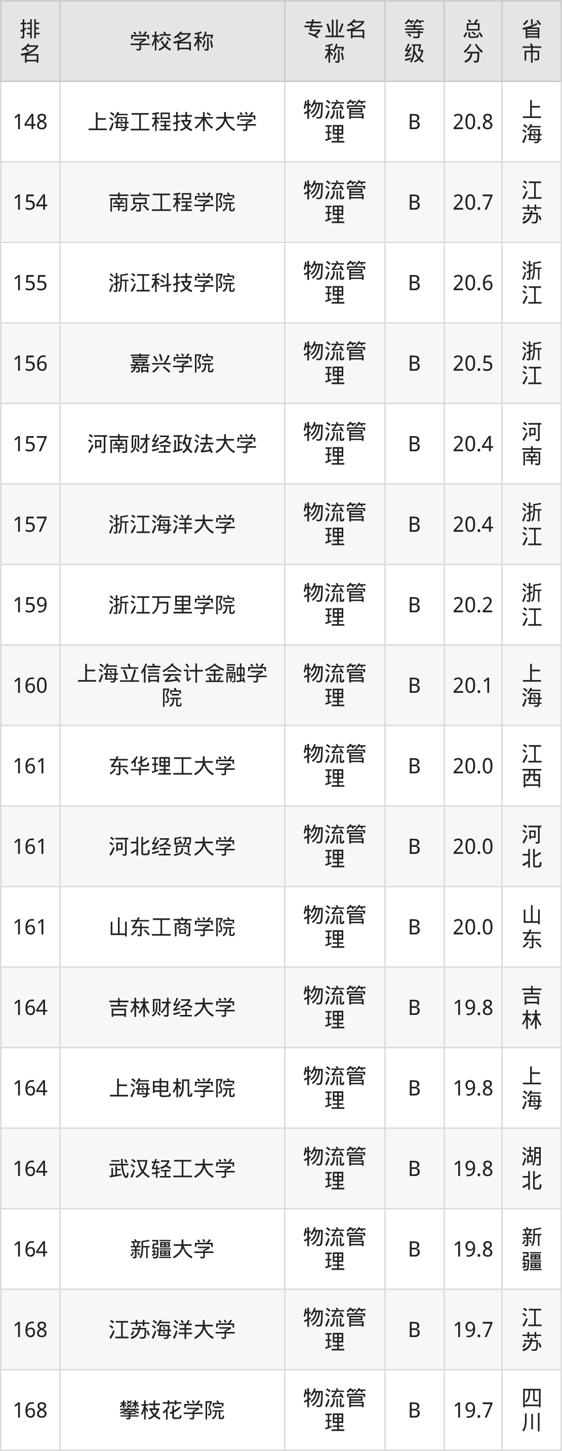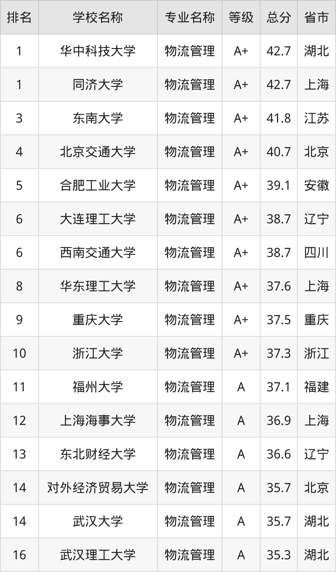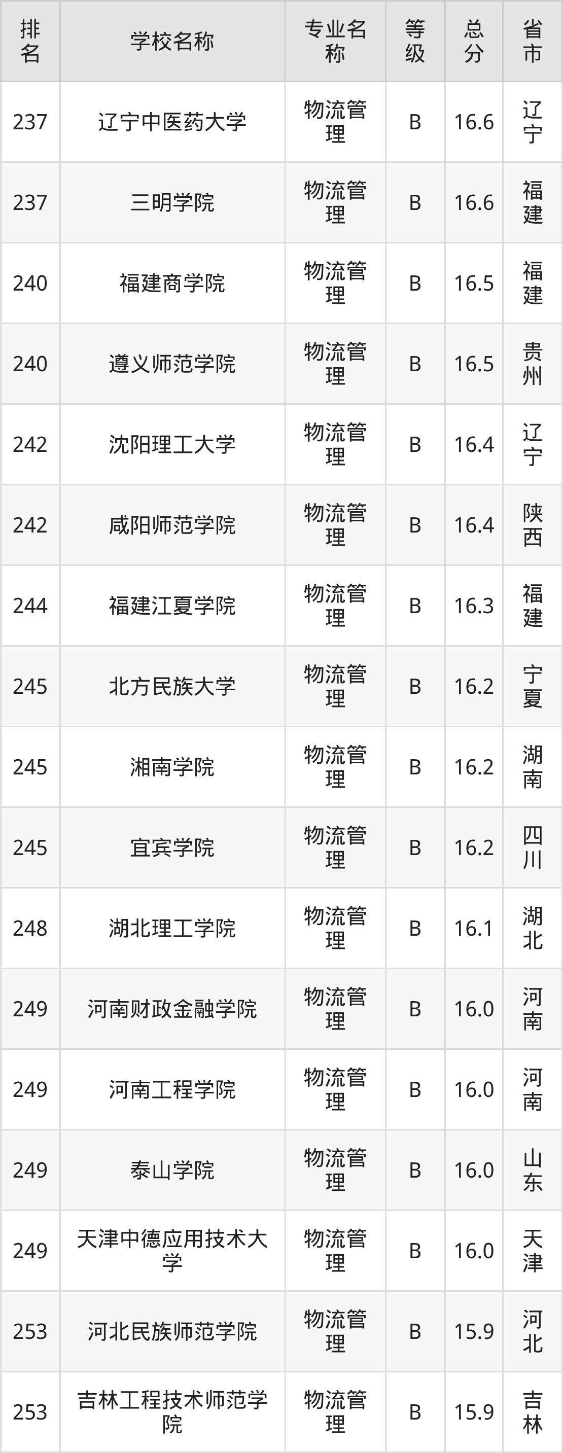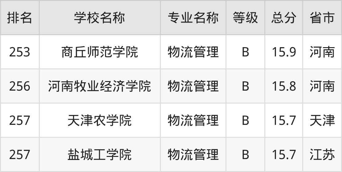 附物流管理专业全国258所院校排名榜单一览表!