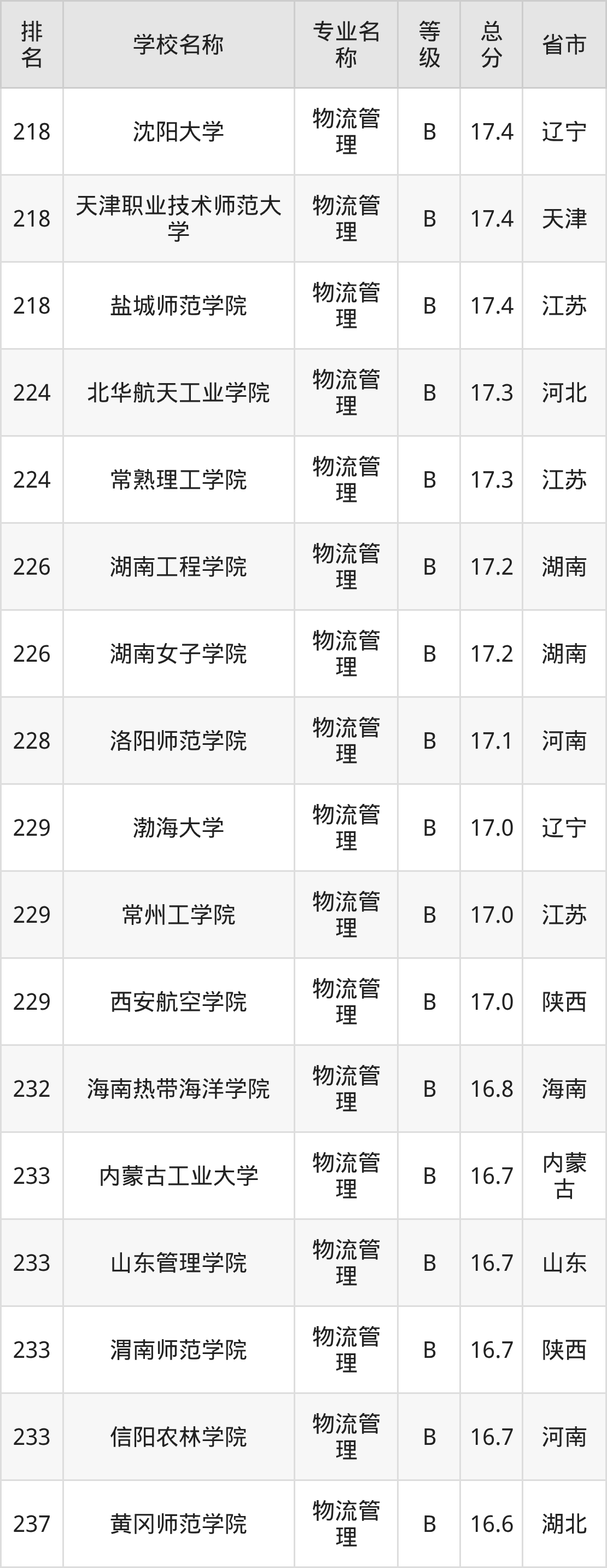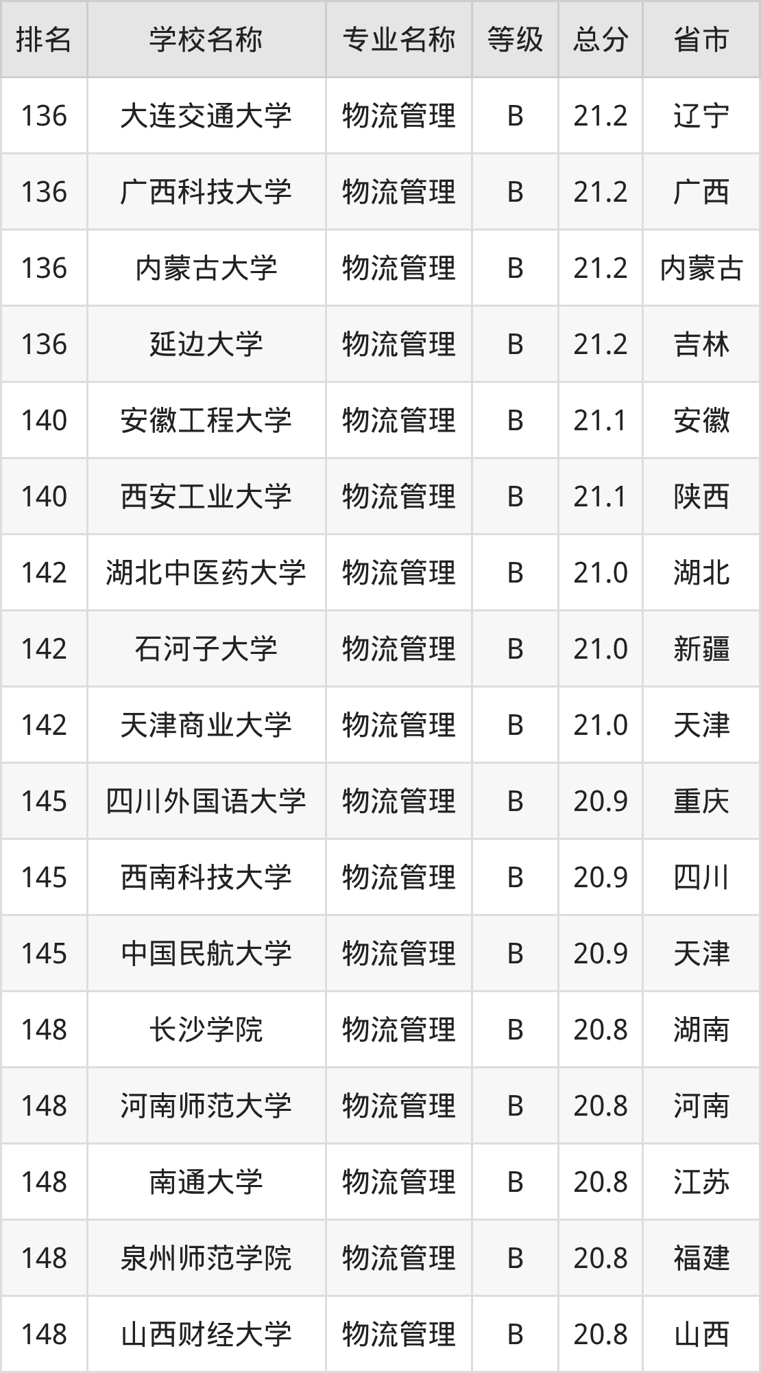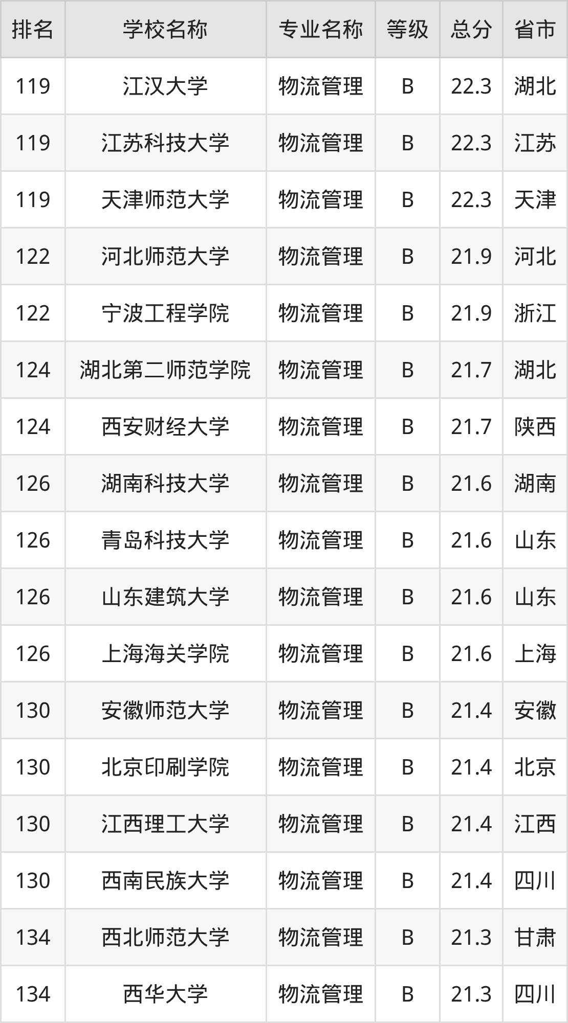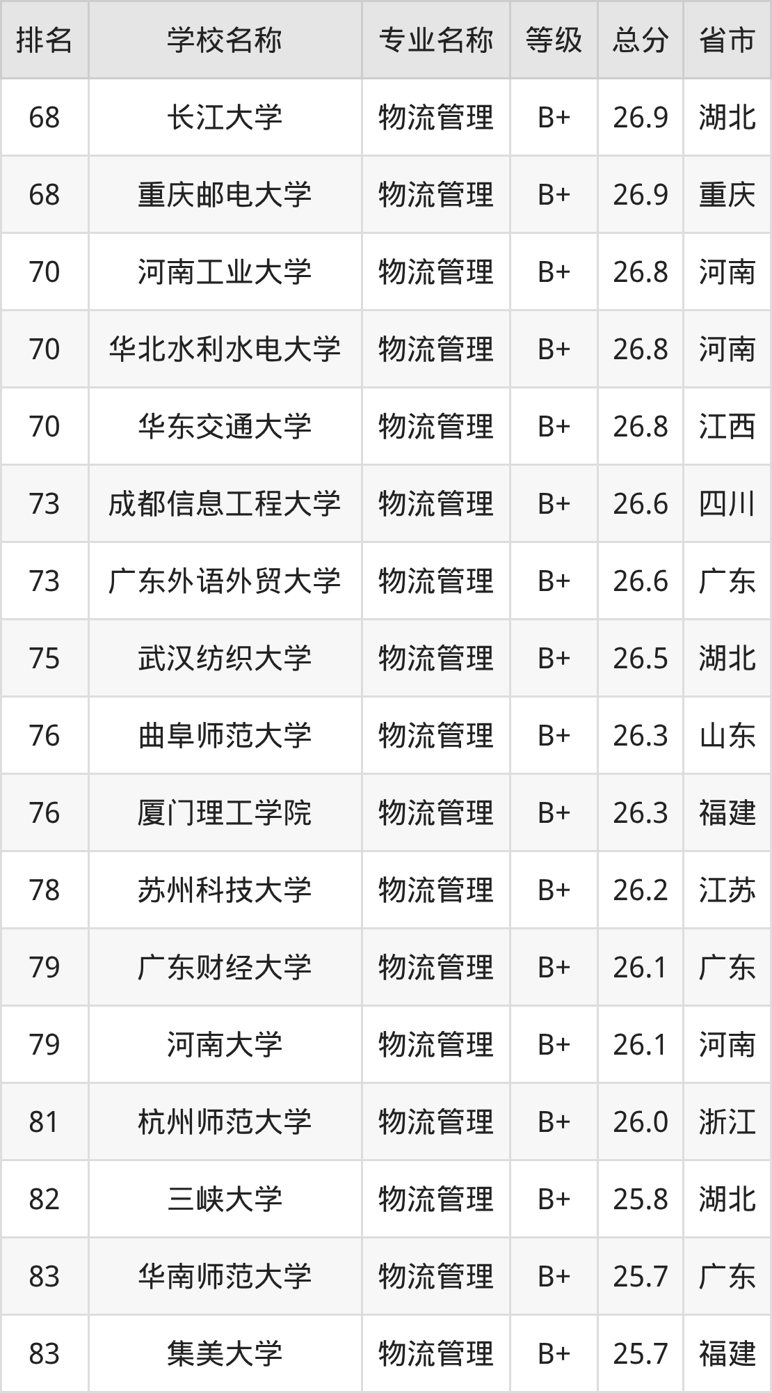 附物流管理专业全国258所院校排名榜单一览表!