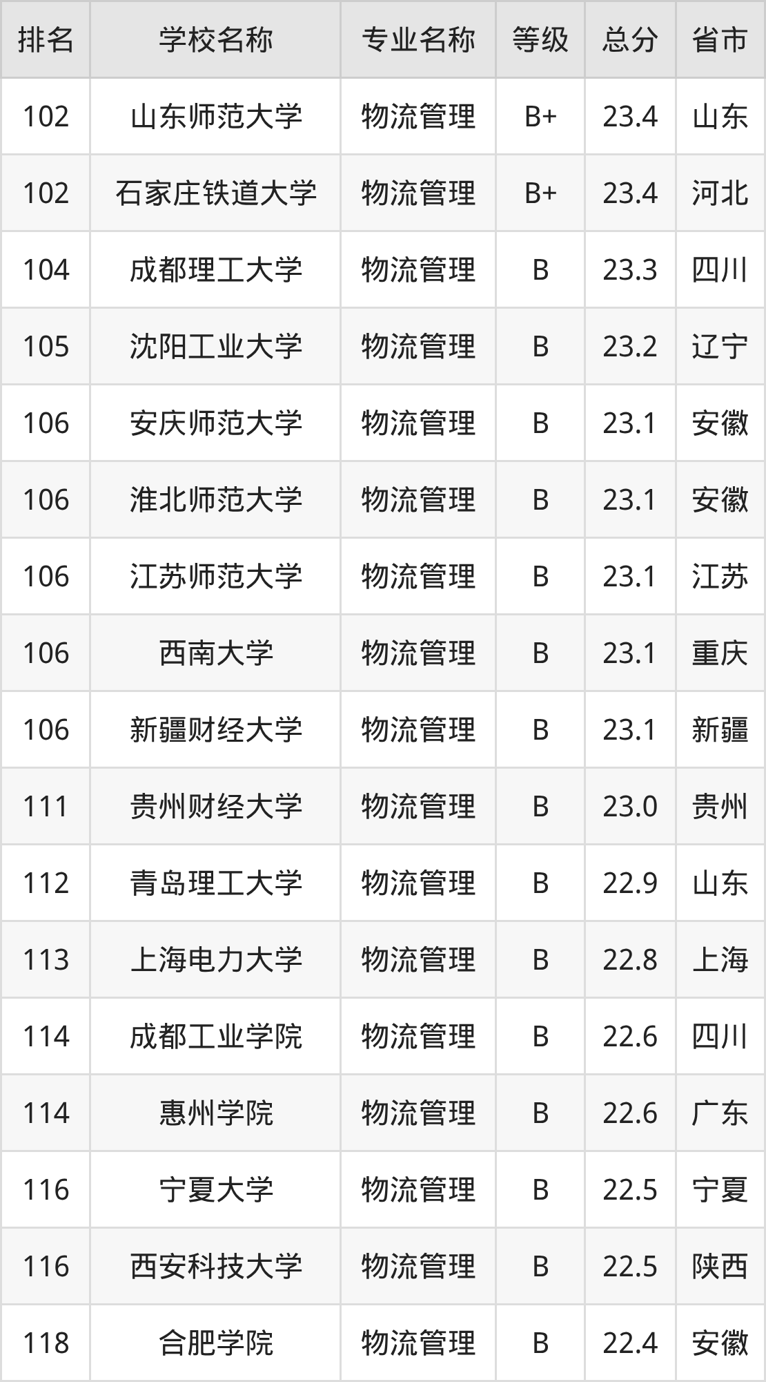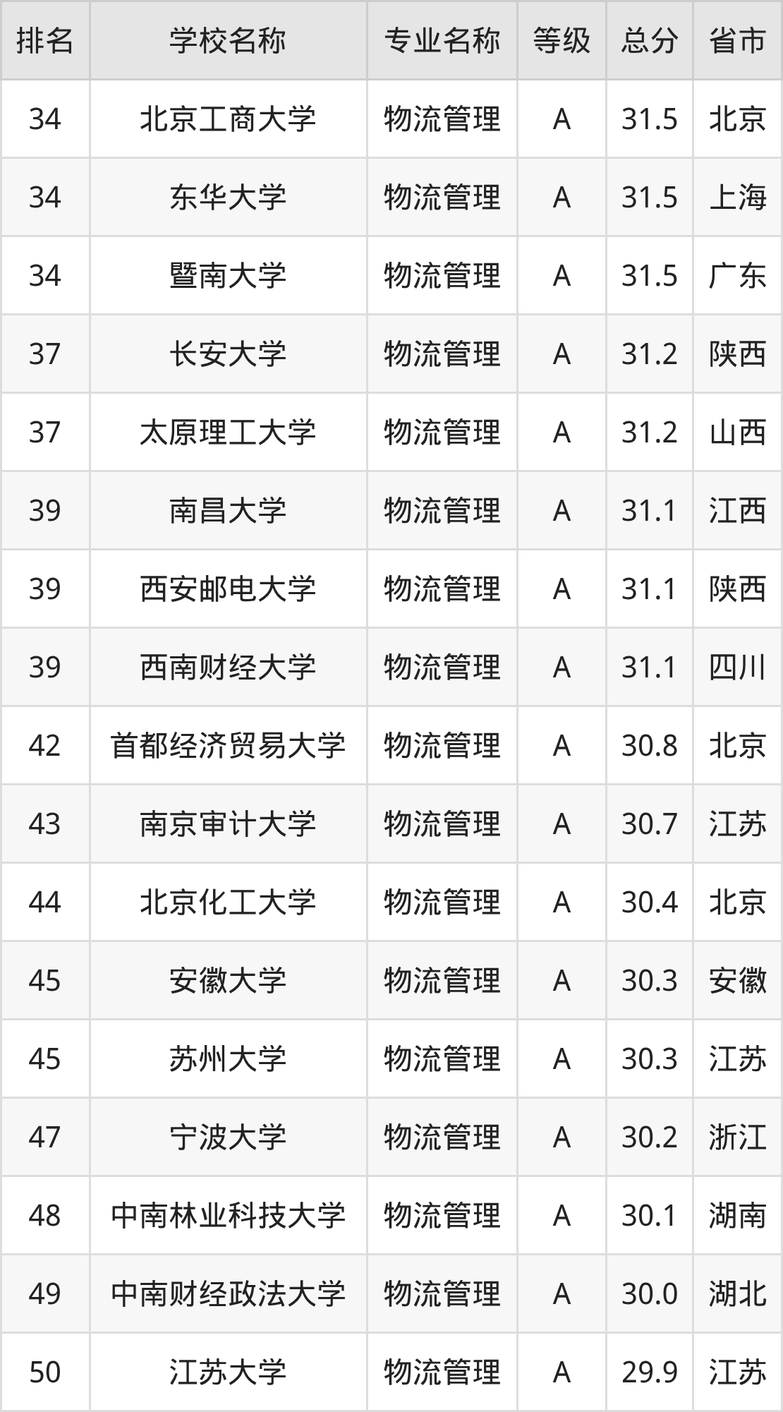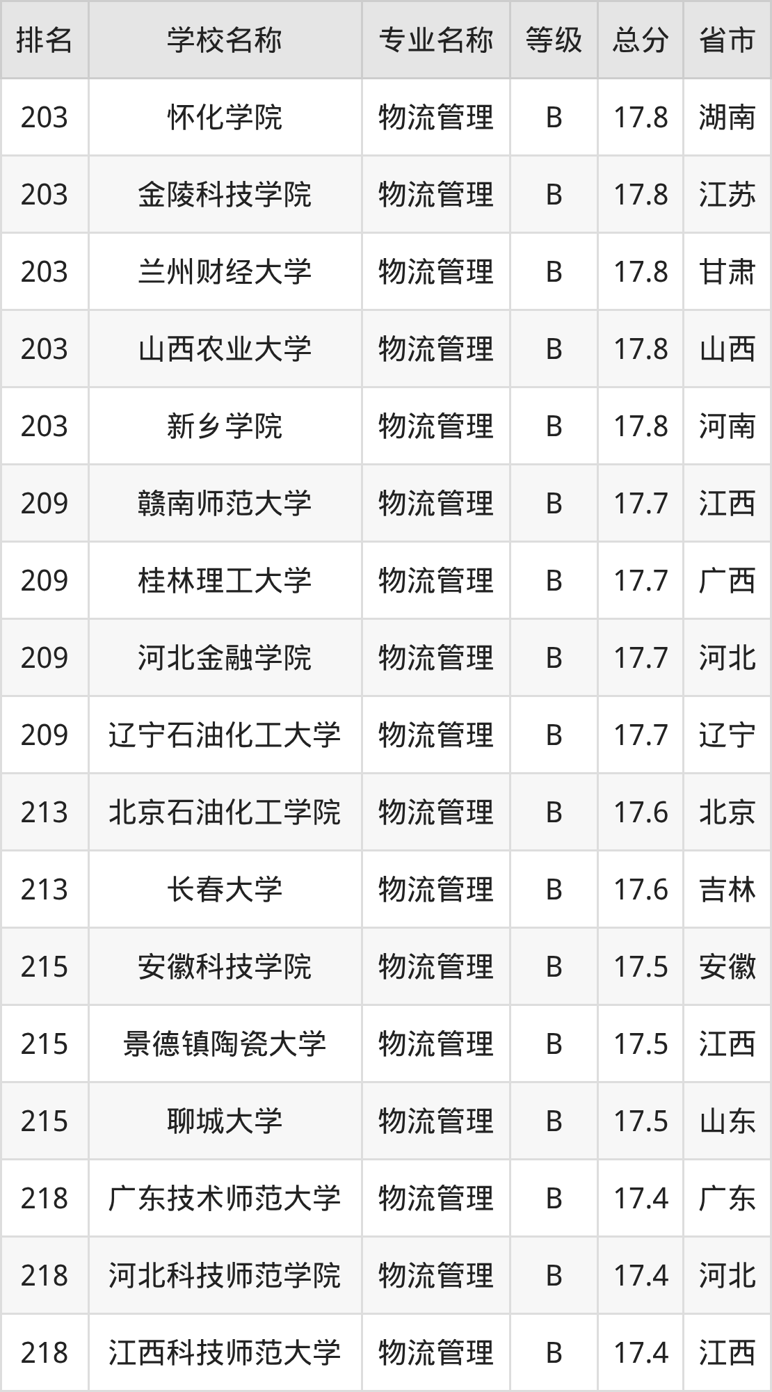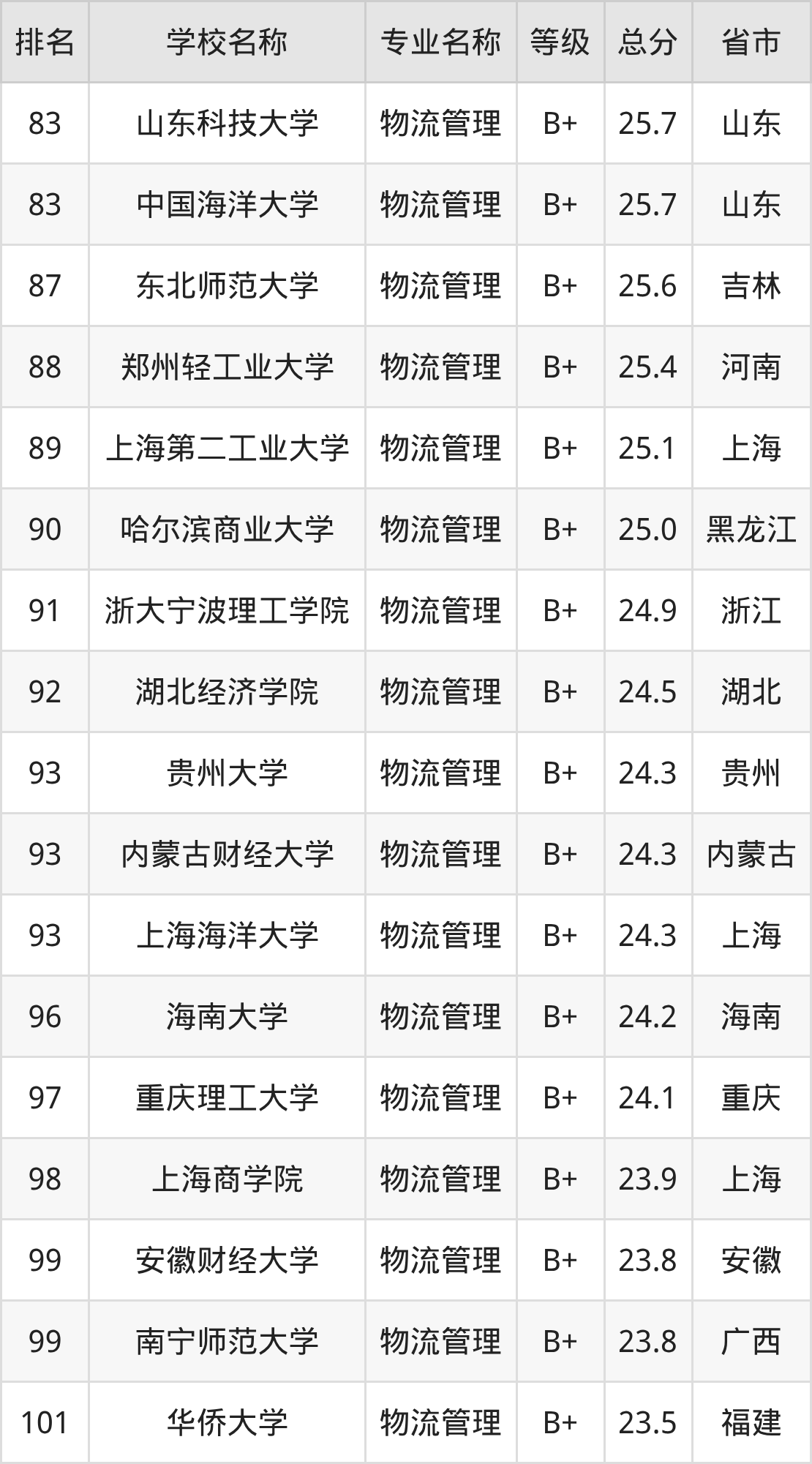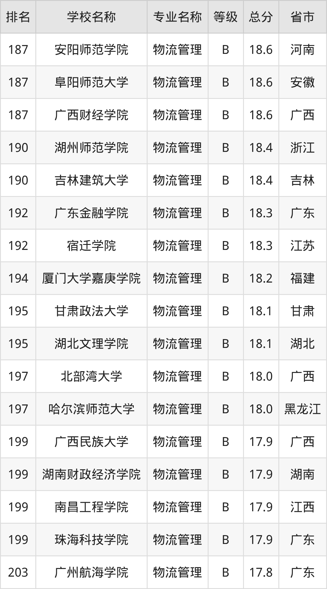 附物流管理专业全国258所院校排名榜单一览表!