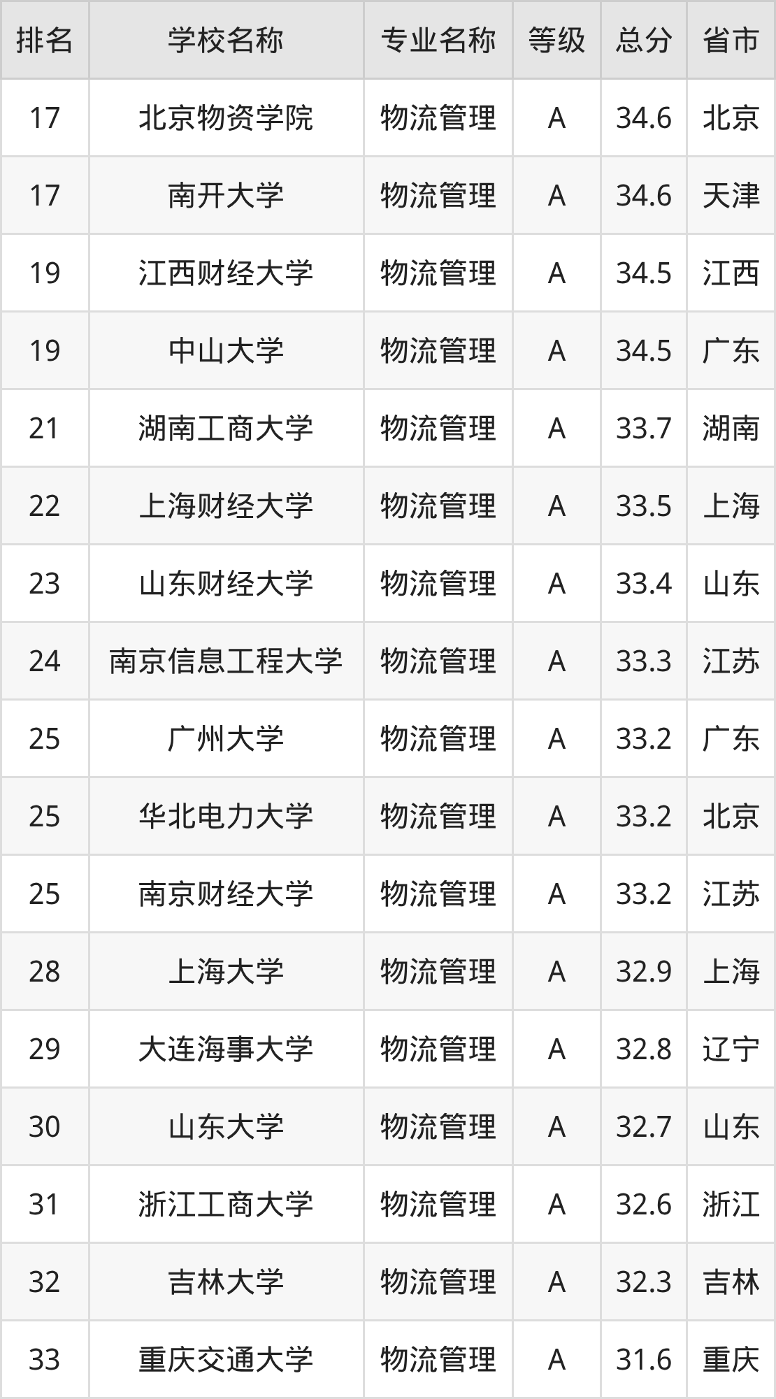 一、2025年物流管理专业全国大学排名