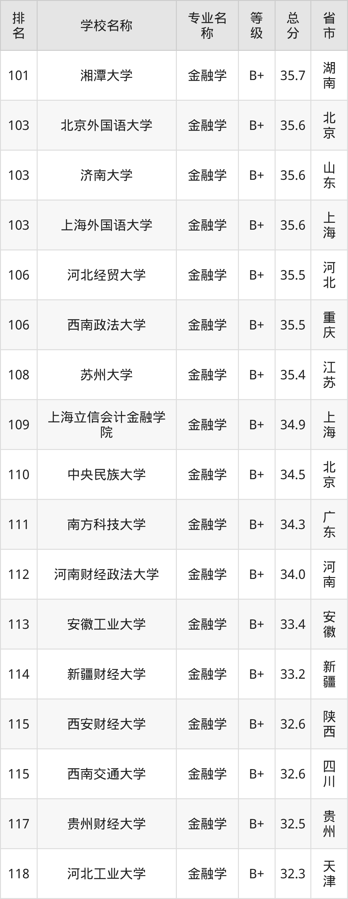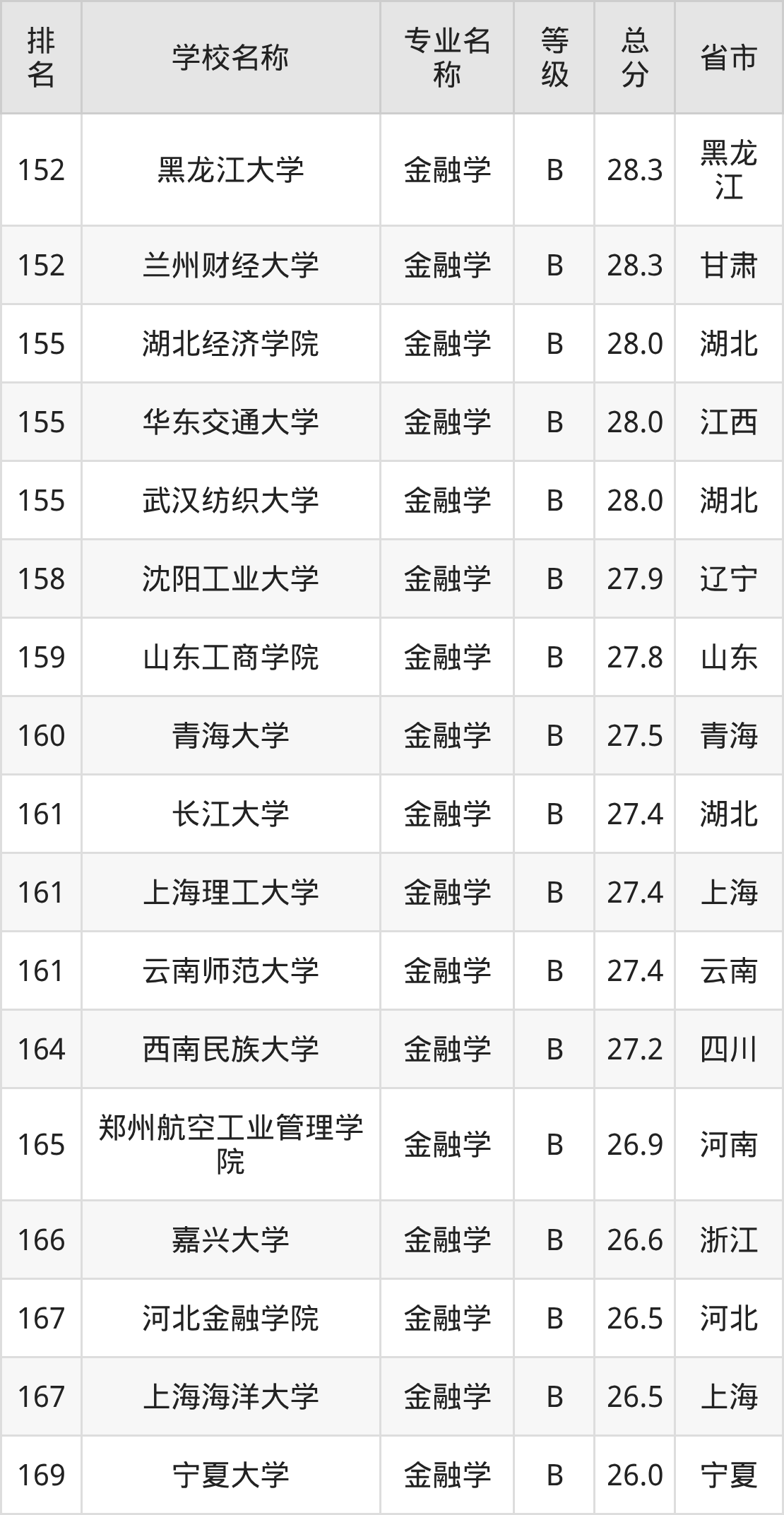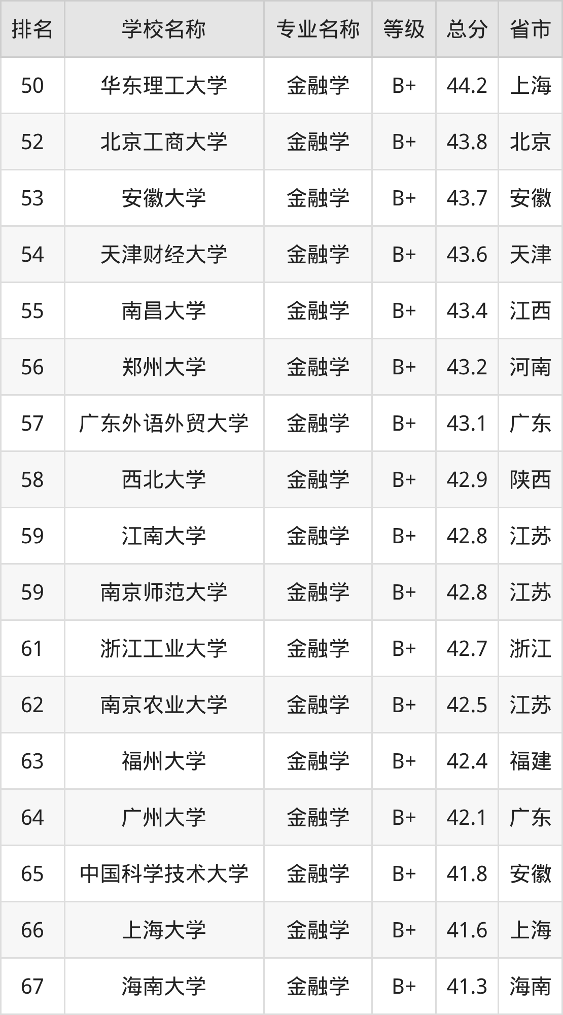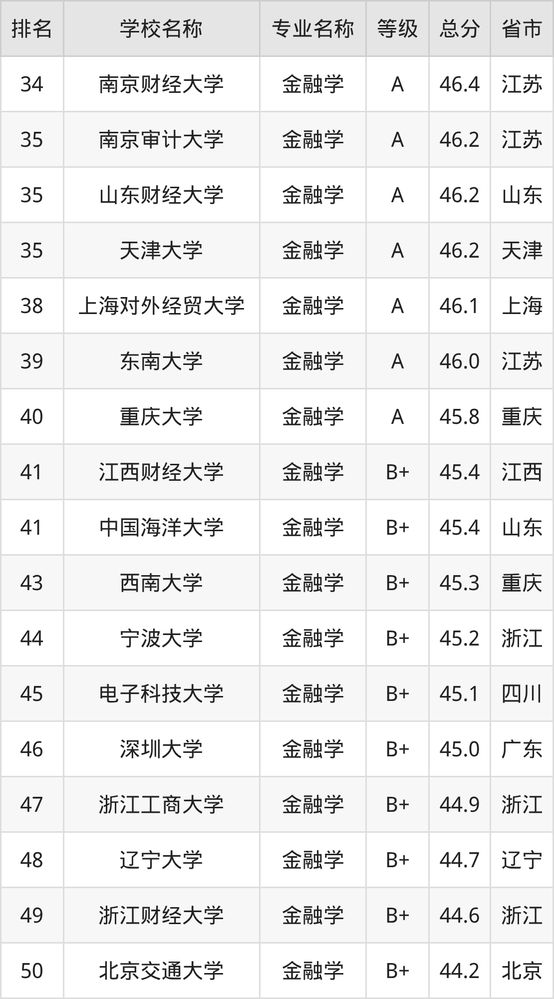 根据软科榜单可知,金融学专业全国排名前十的大学分别是: