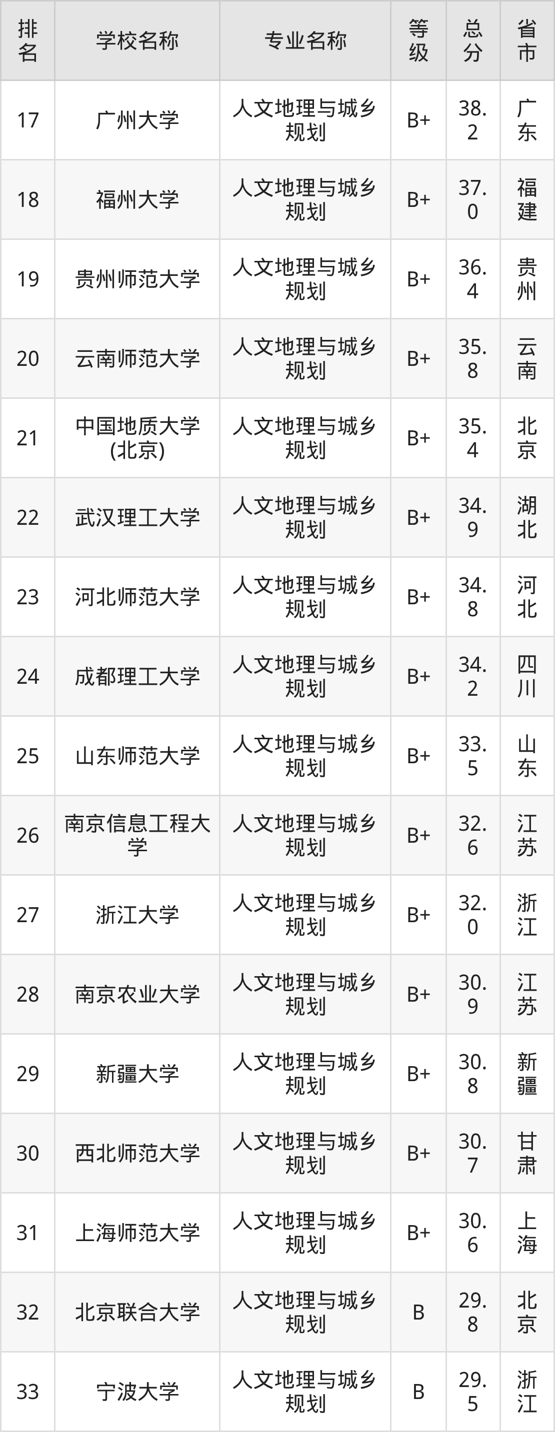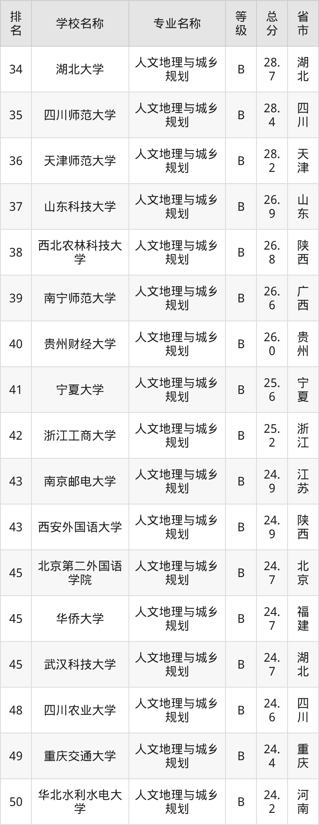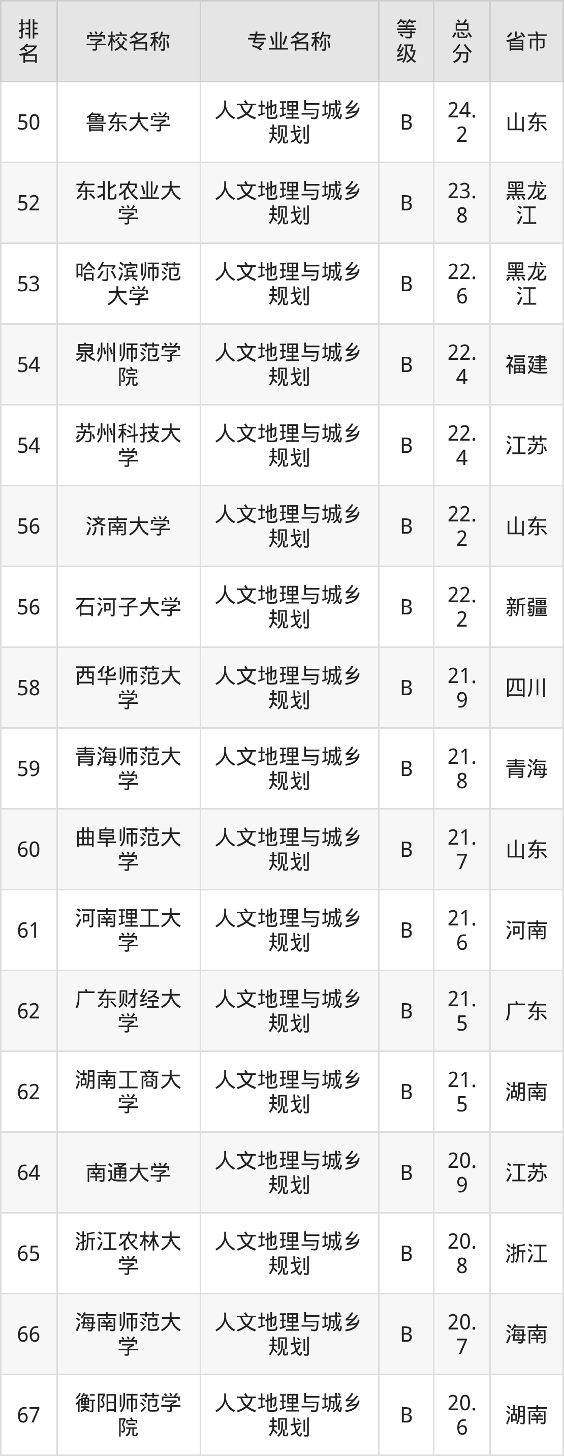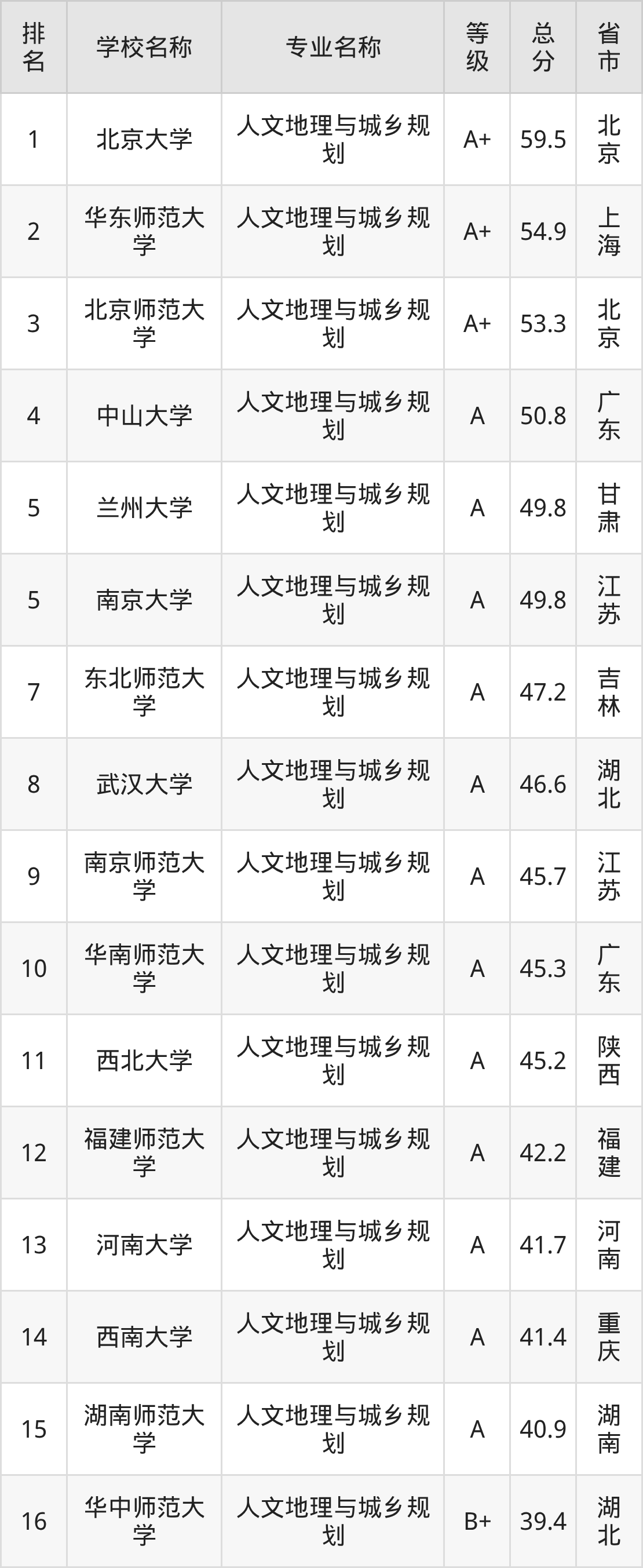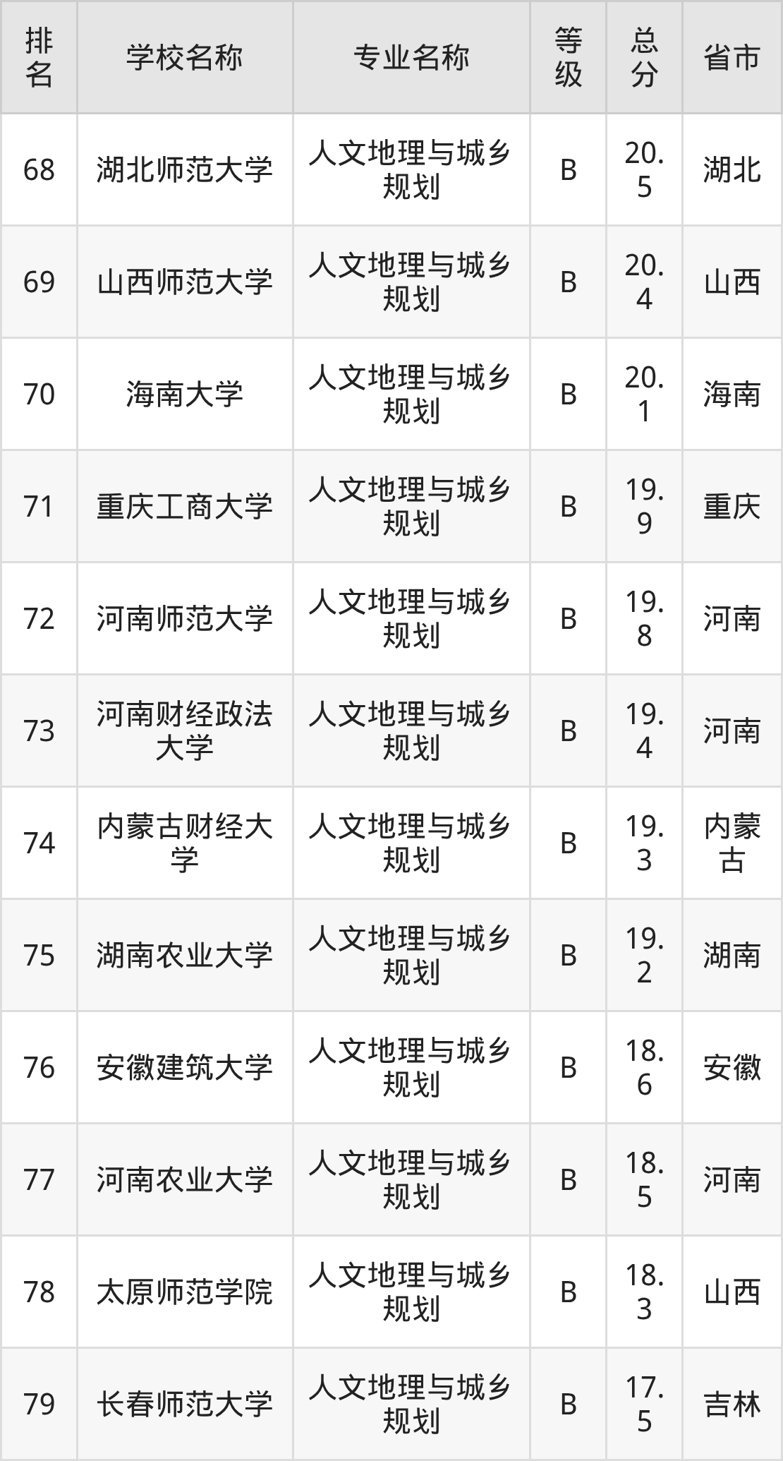 附人文地理与城乡规划专业全国79所院校排名榜单一览表!