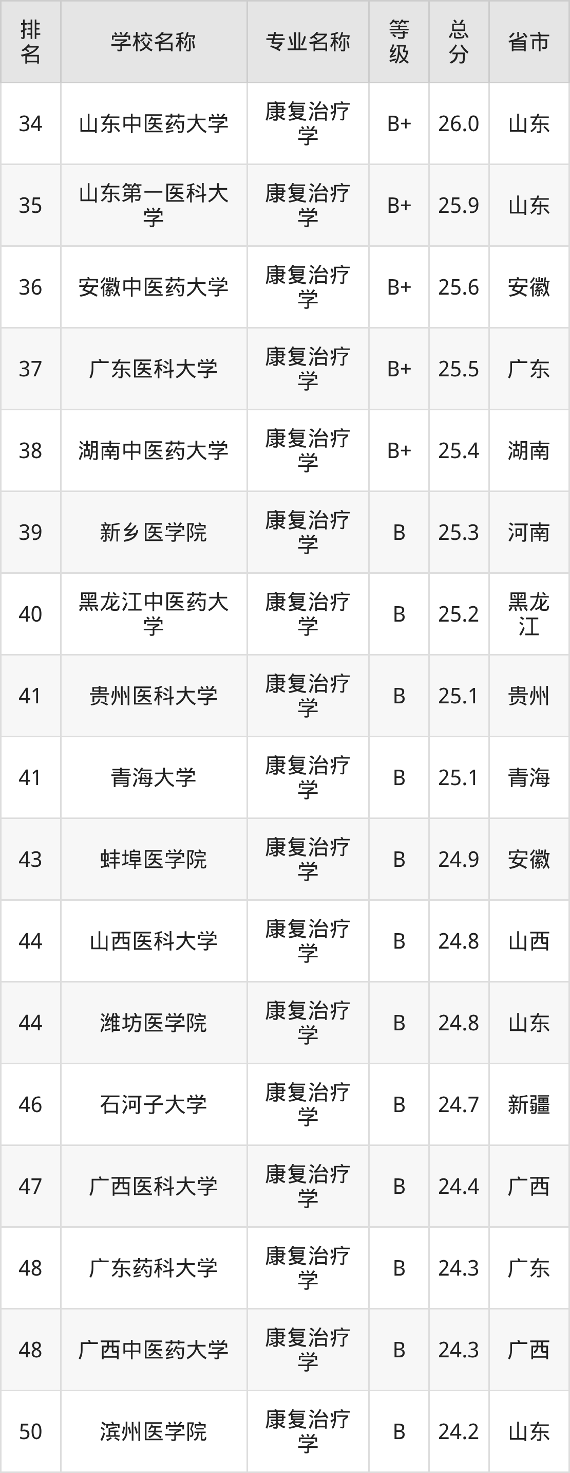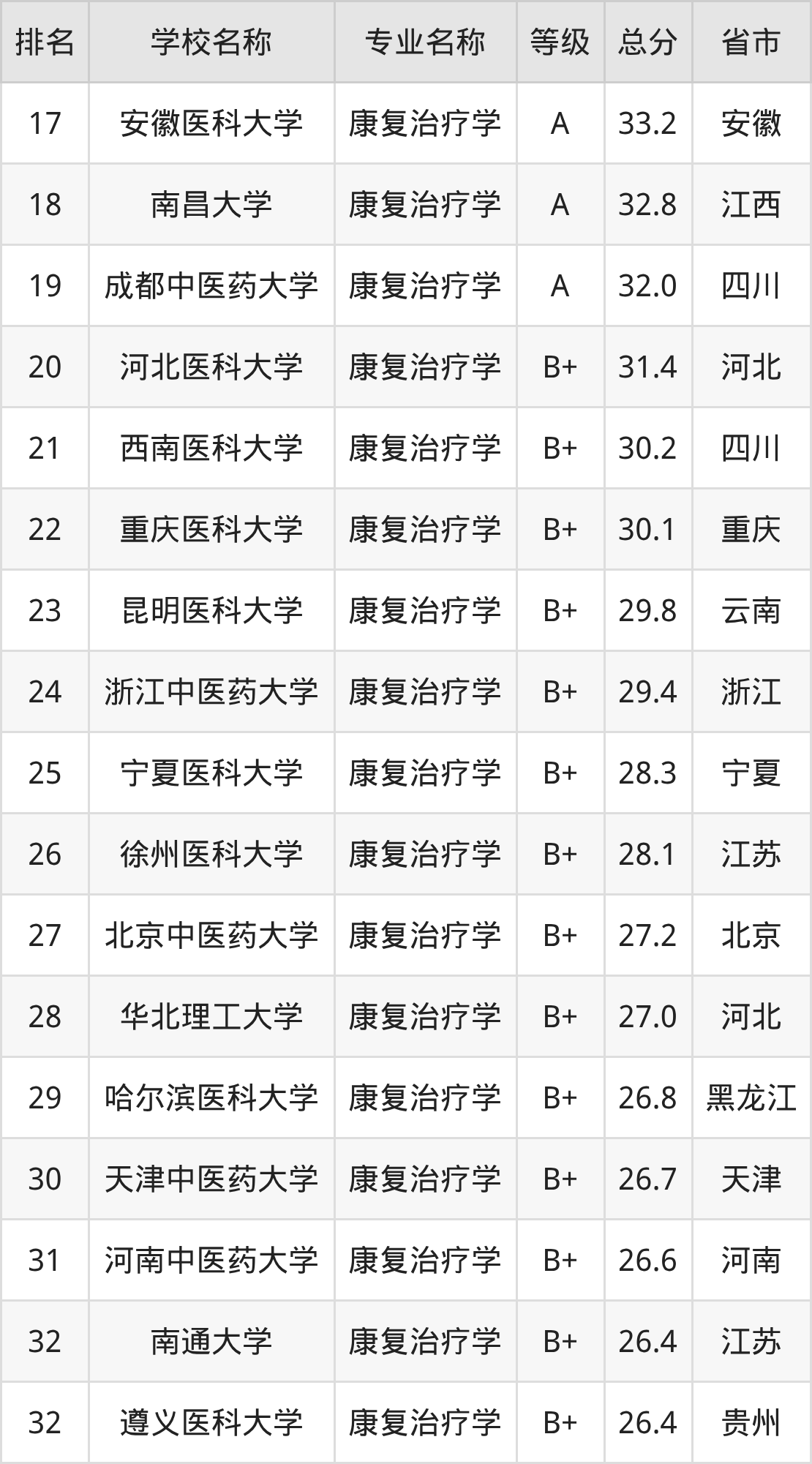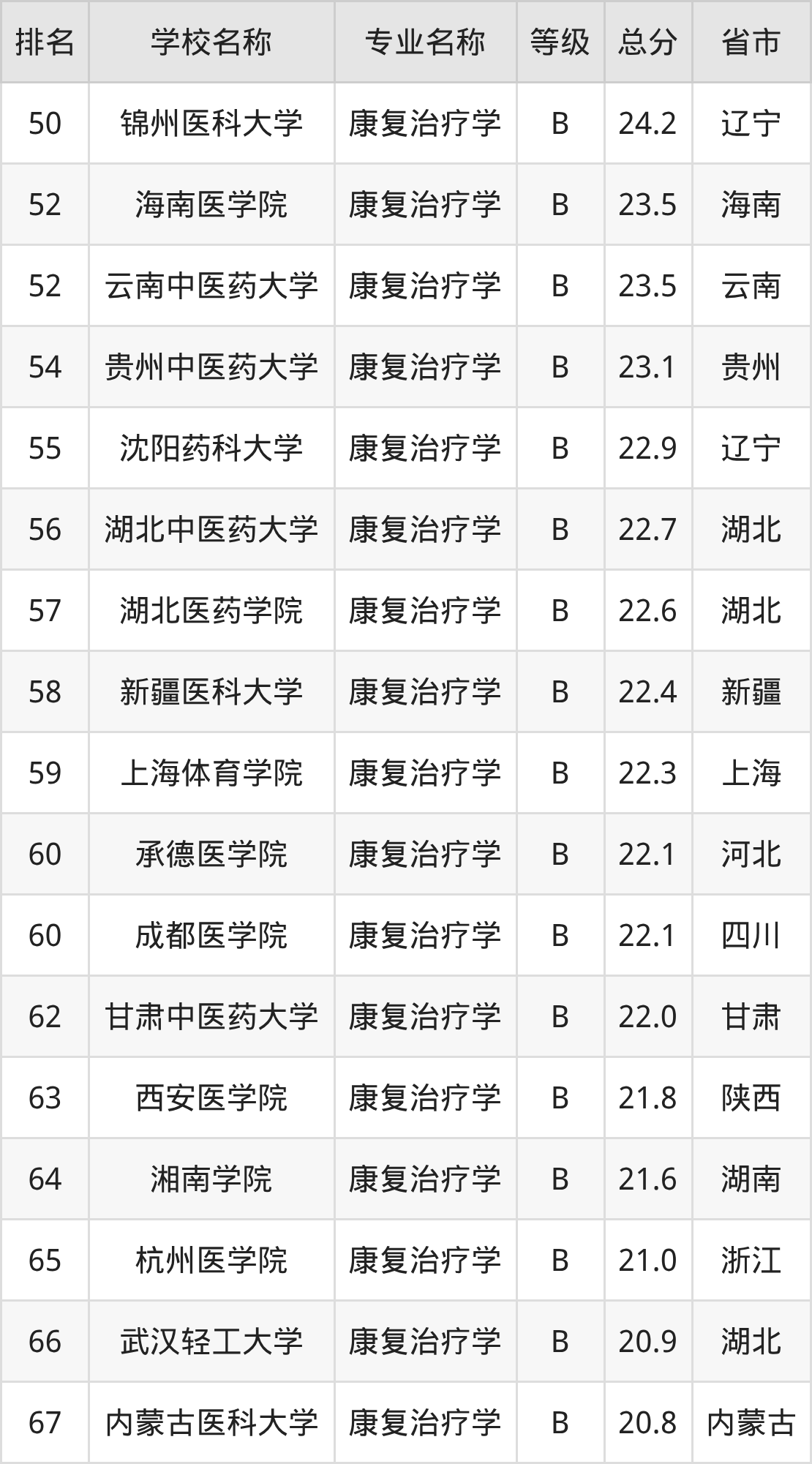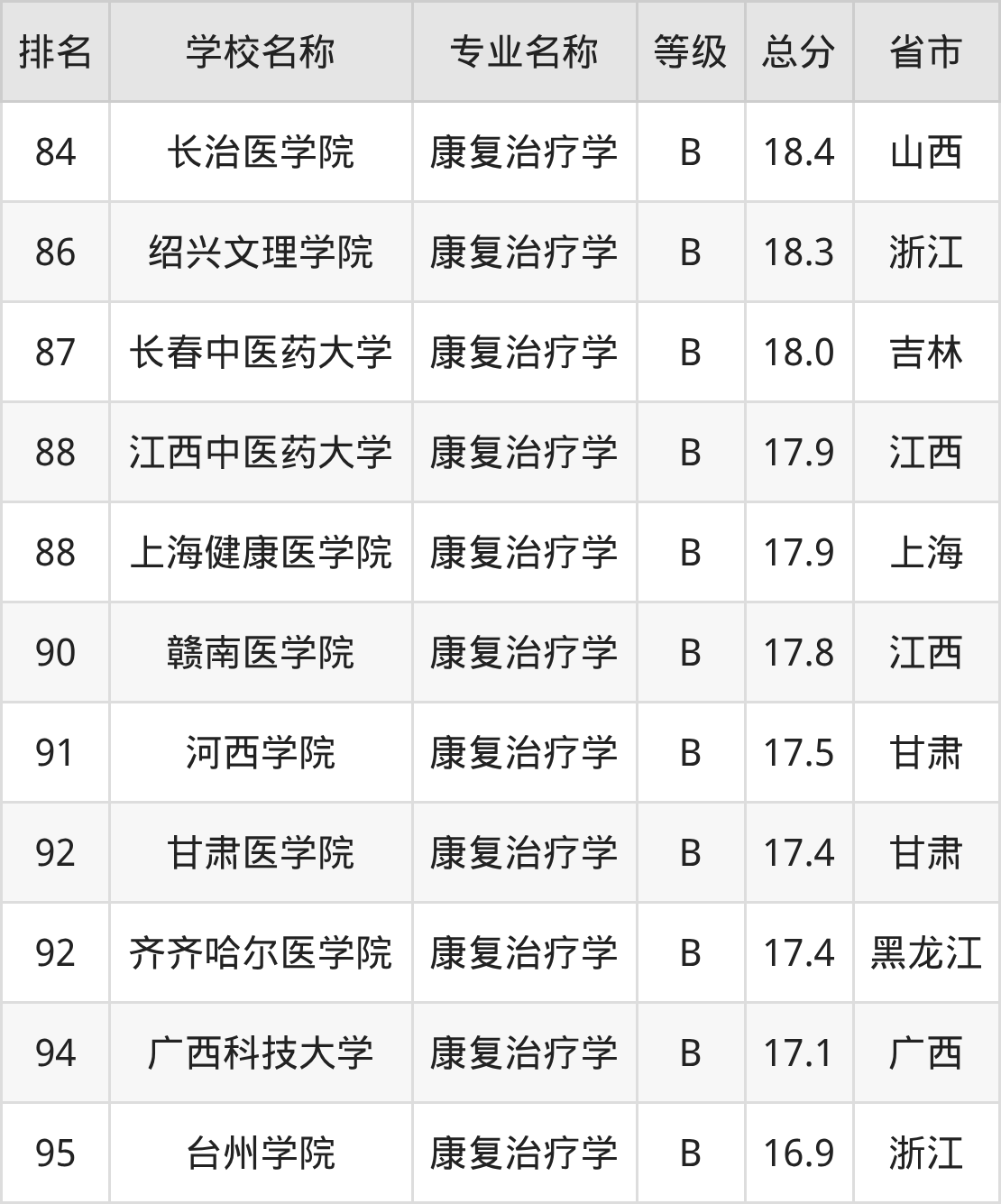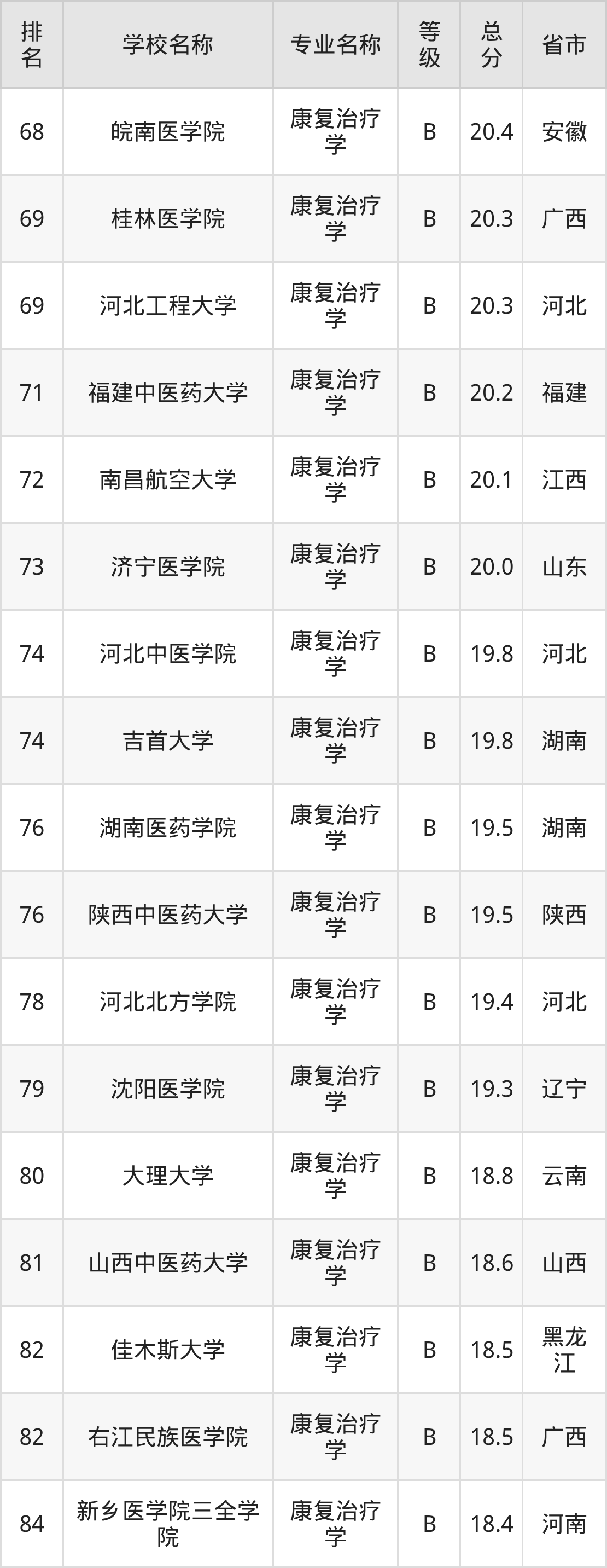 附康复治疗学专业全国95所院校排名榜单一览表!