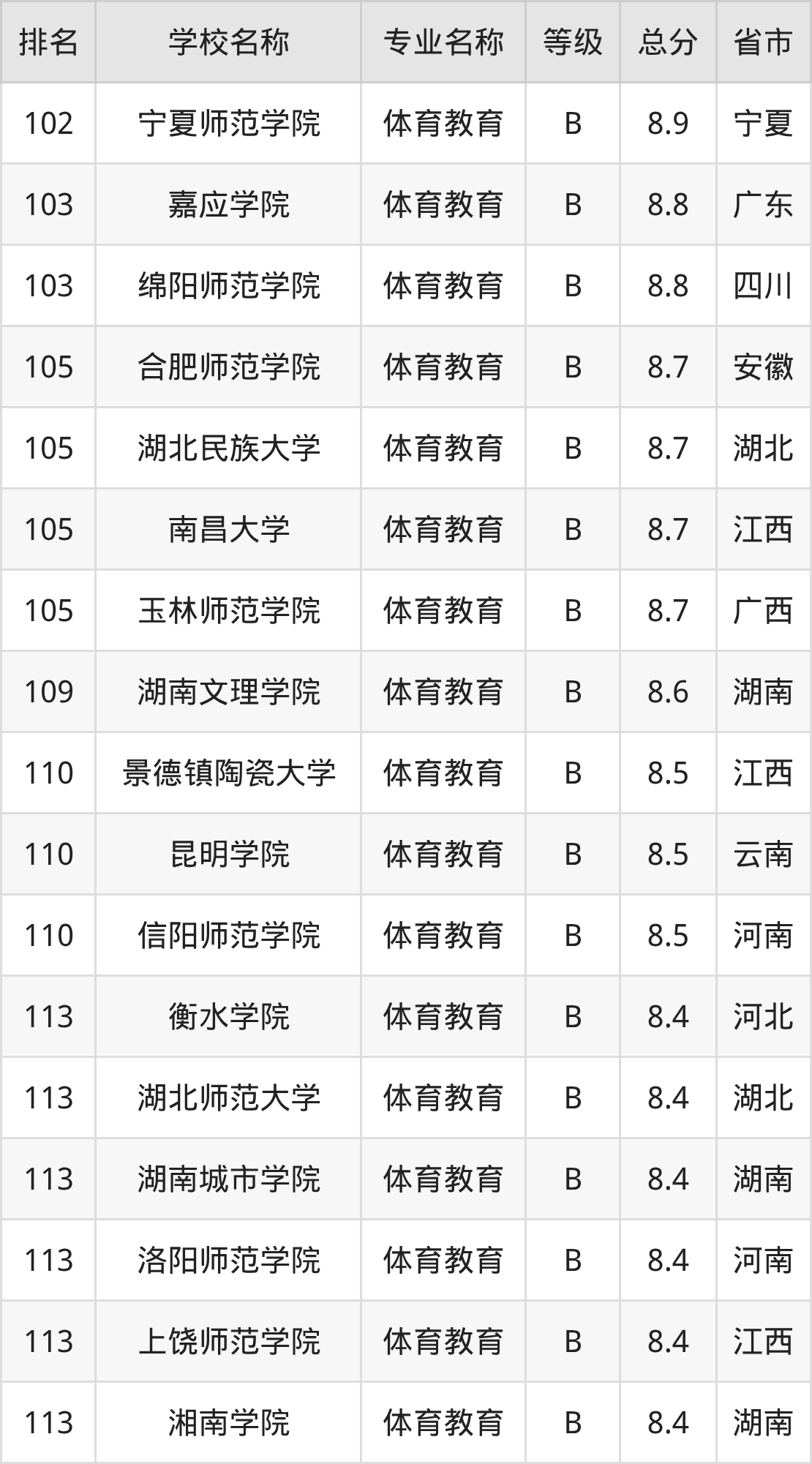 * 上海体育学院在体育教育领域具有较高的声誉,其体育教育专业注重培养学生的实践能力和创新精神。