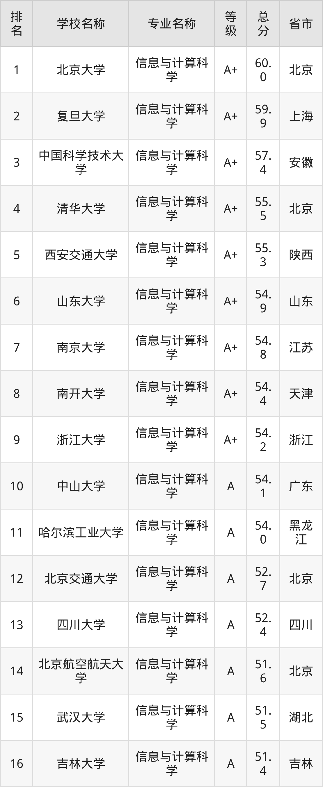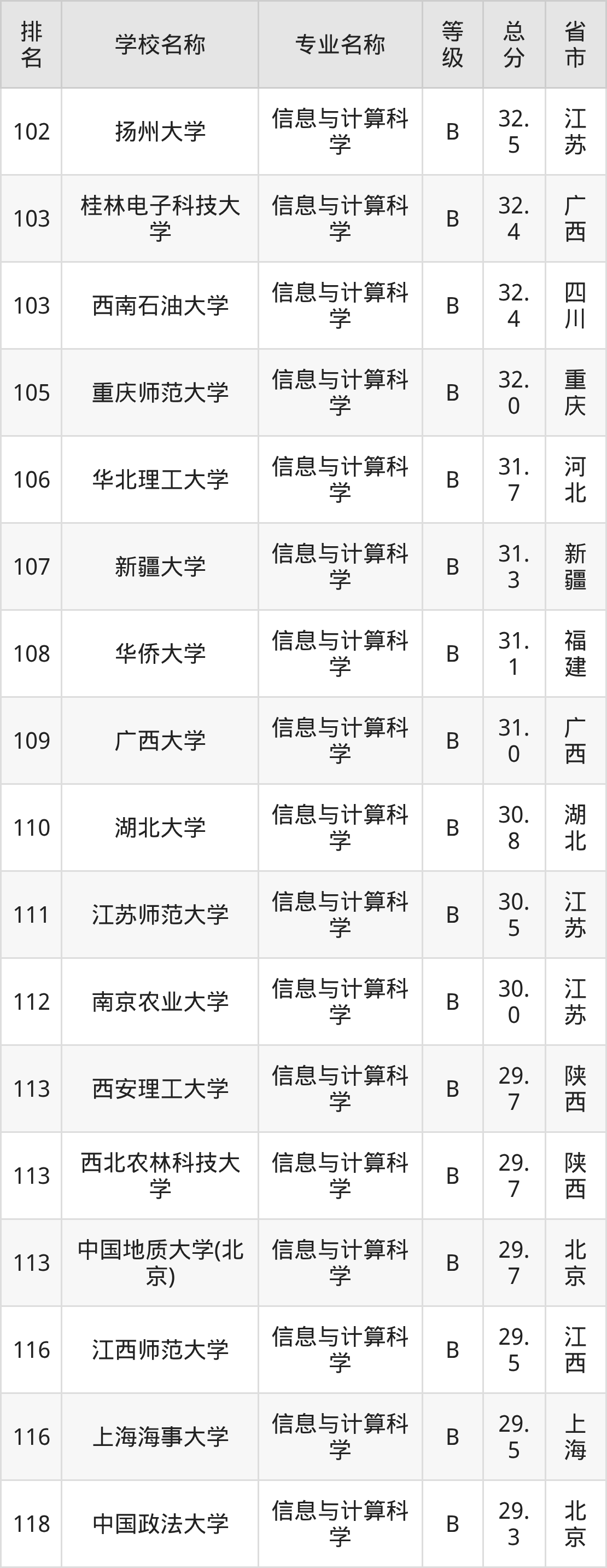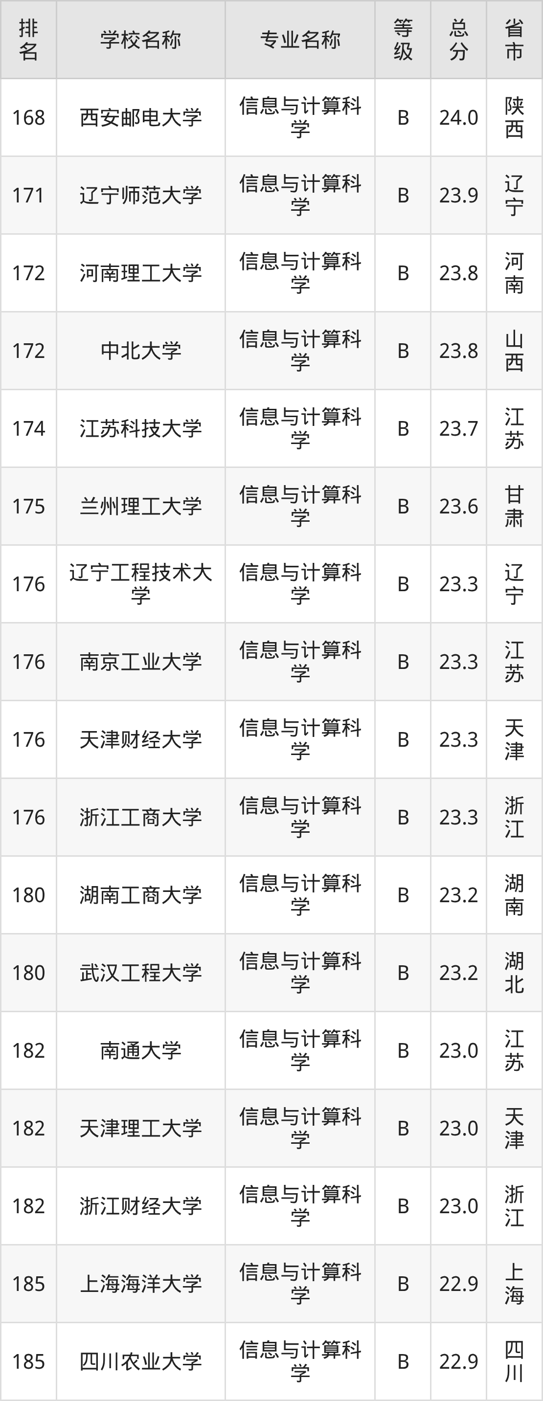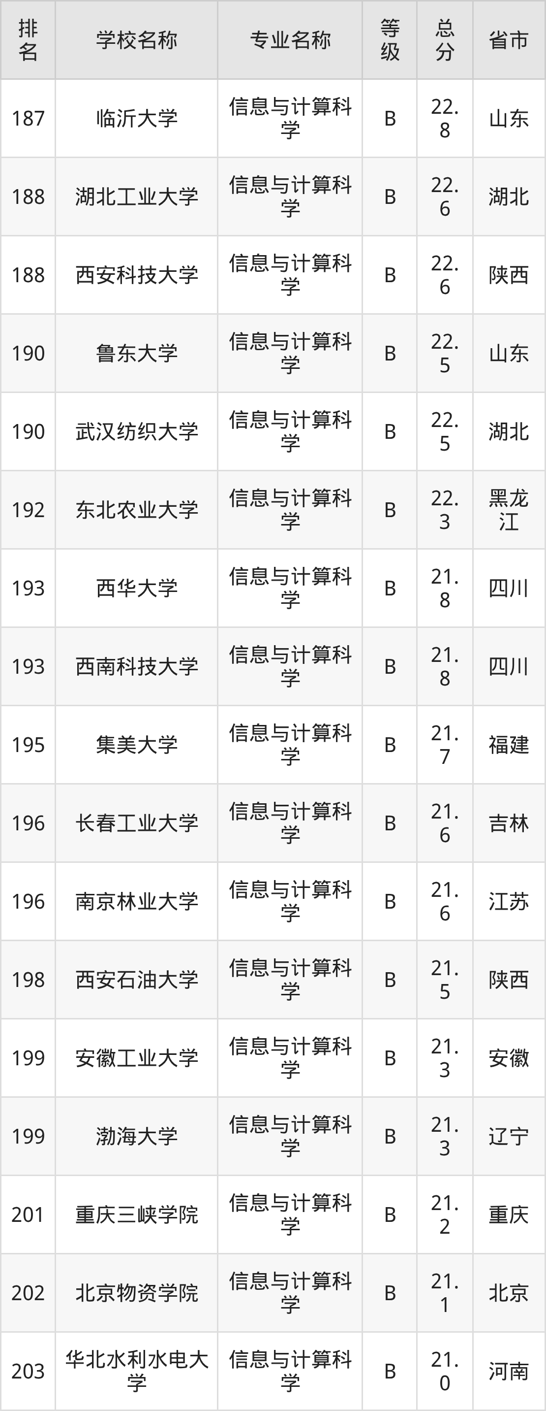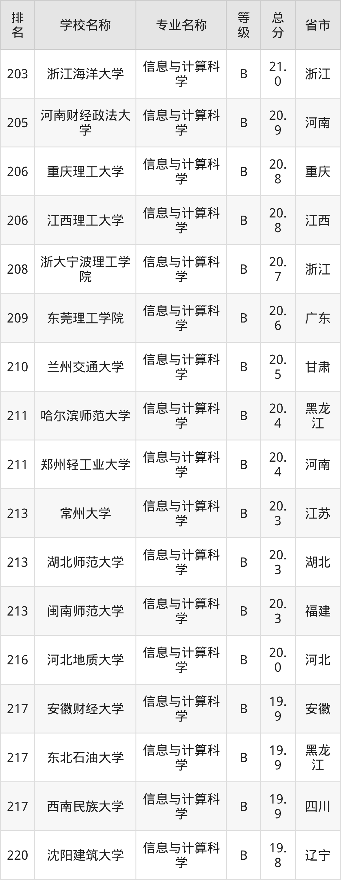 附信息与计算科学专业全国226所院校排名榜单一览表!