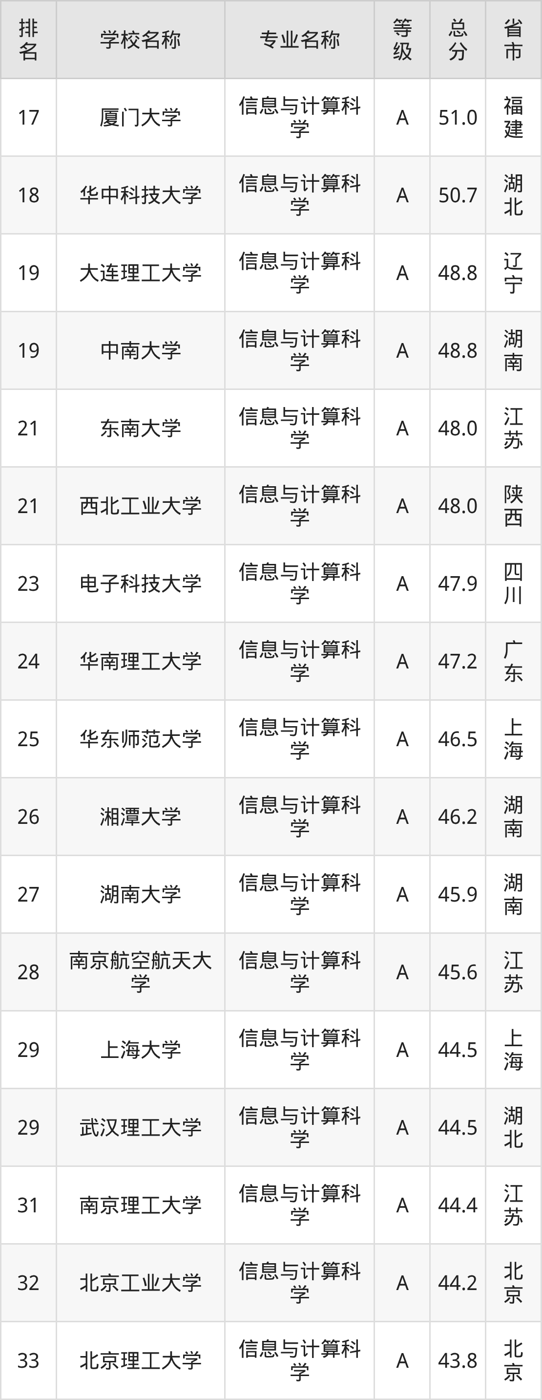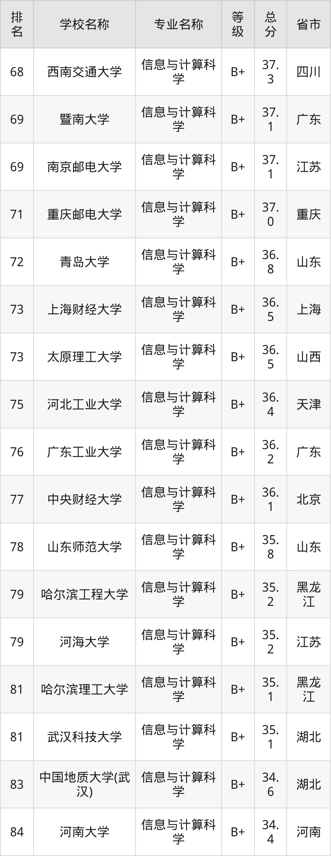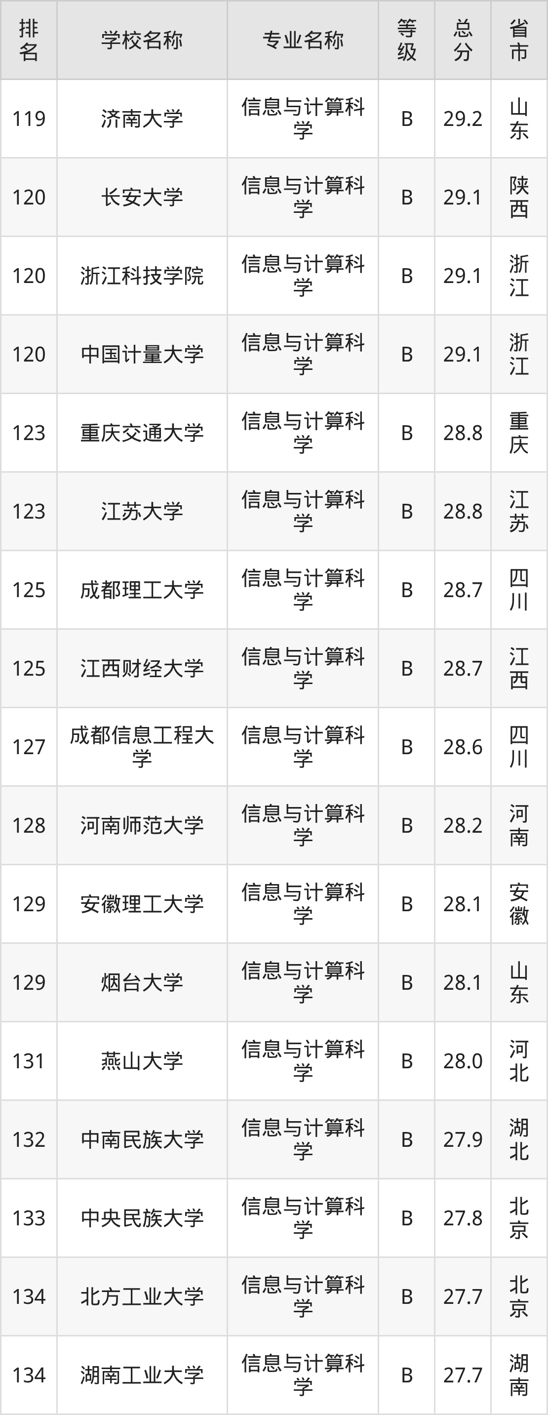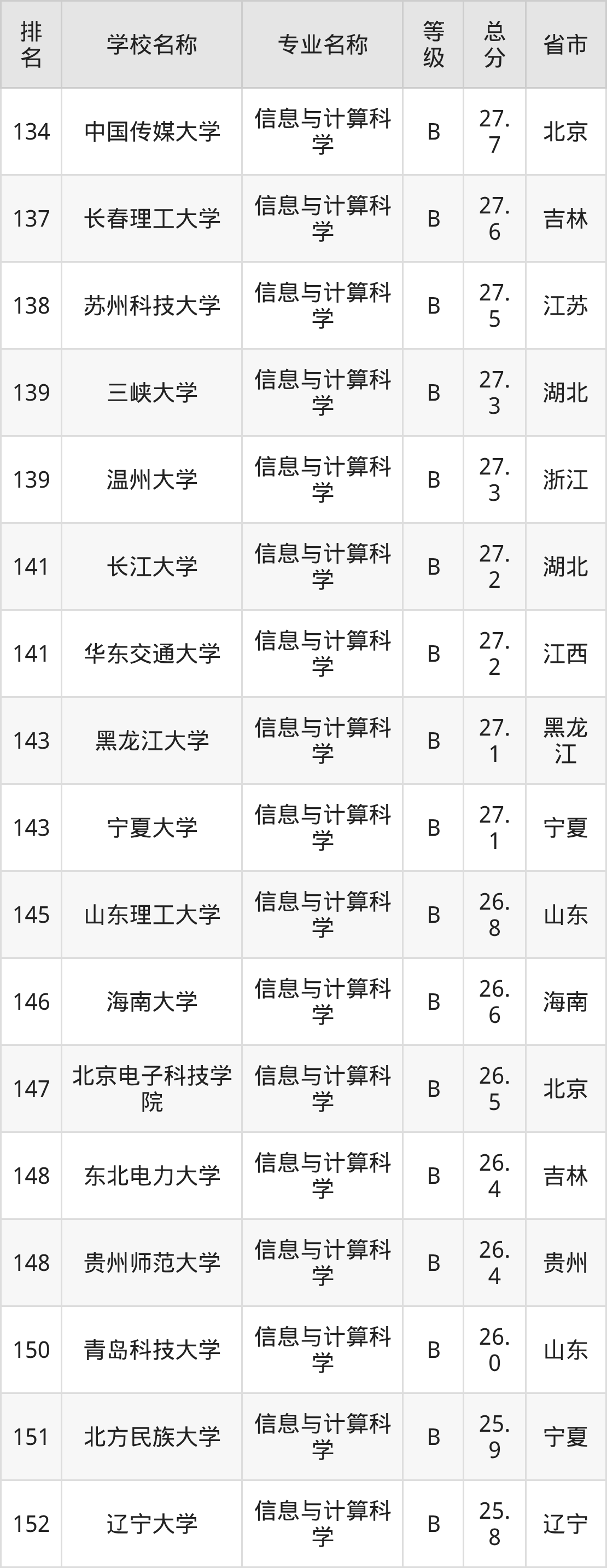 附信息与计算科学专业全国226所院校排名榜单一览表!